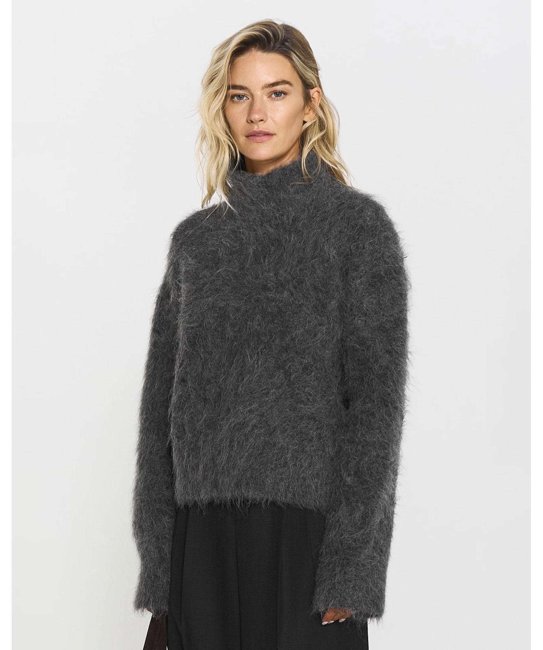 Stickad tröja från Twist & Tango. Stickad i en exklusiv alpackablandning med en mjuk, borstad textur som känns behaglig mot huden och håller dig varm under kyligare dagar. Den avslappnade polokragen och de subtila ribbade detaljerna ger struktur åt den lediga silhuetten. Perfekt att bära lager på lager eller som ett elegant statement i sig.