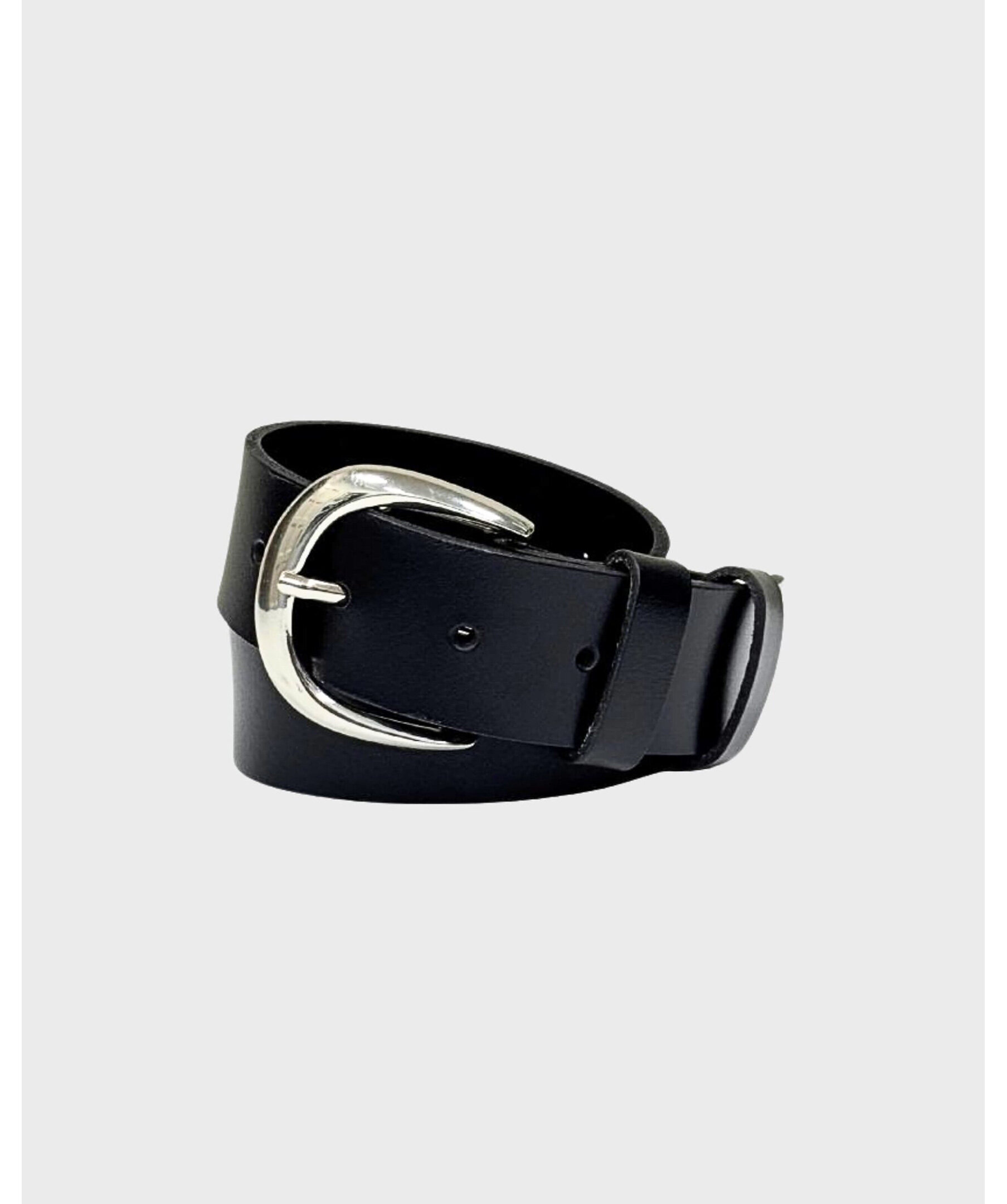 Svart läderbälte från Twist & Tango med elegant design och en silverfärgad spänne – ett tidlöst accessoarval som förhöjer både vardags- och festoutfits med subtil elegans.
