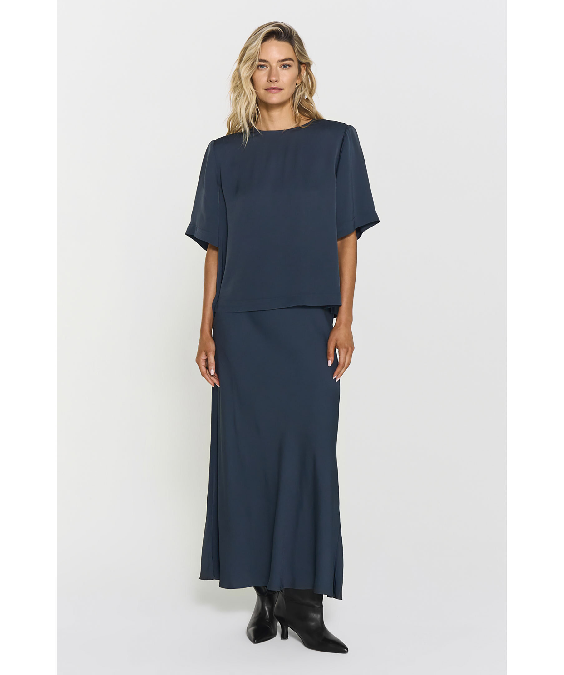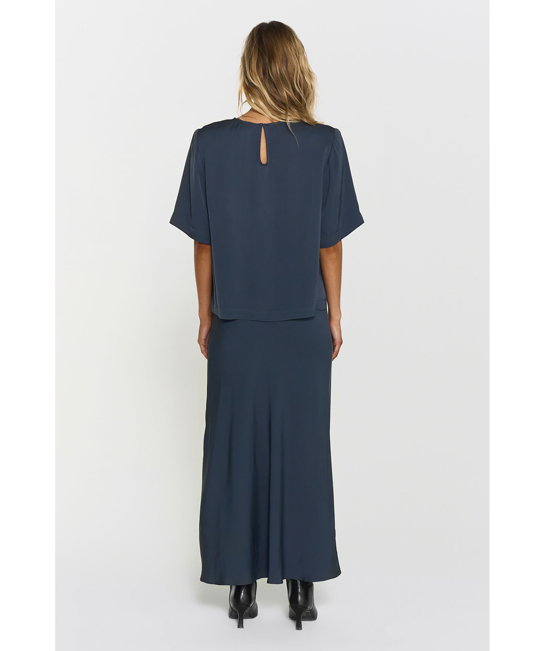 Mörkblå midikjol från Twist&Tango. Kjolen har en elastisk midja och är tillverkad i viskos.