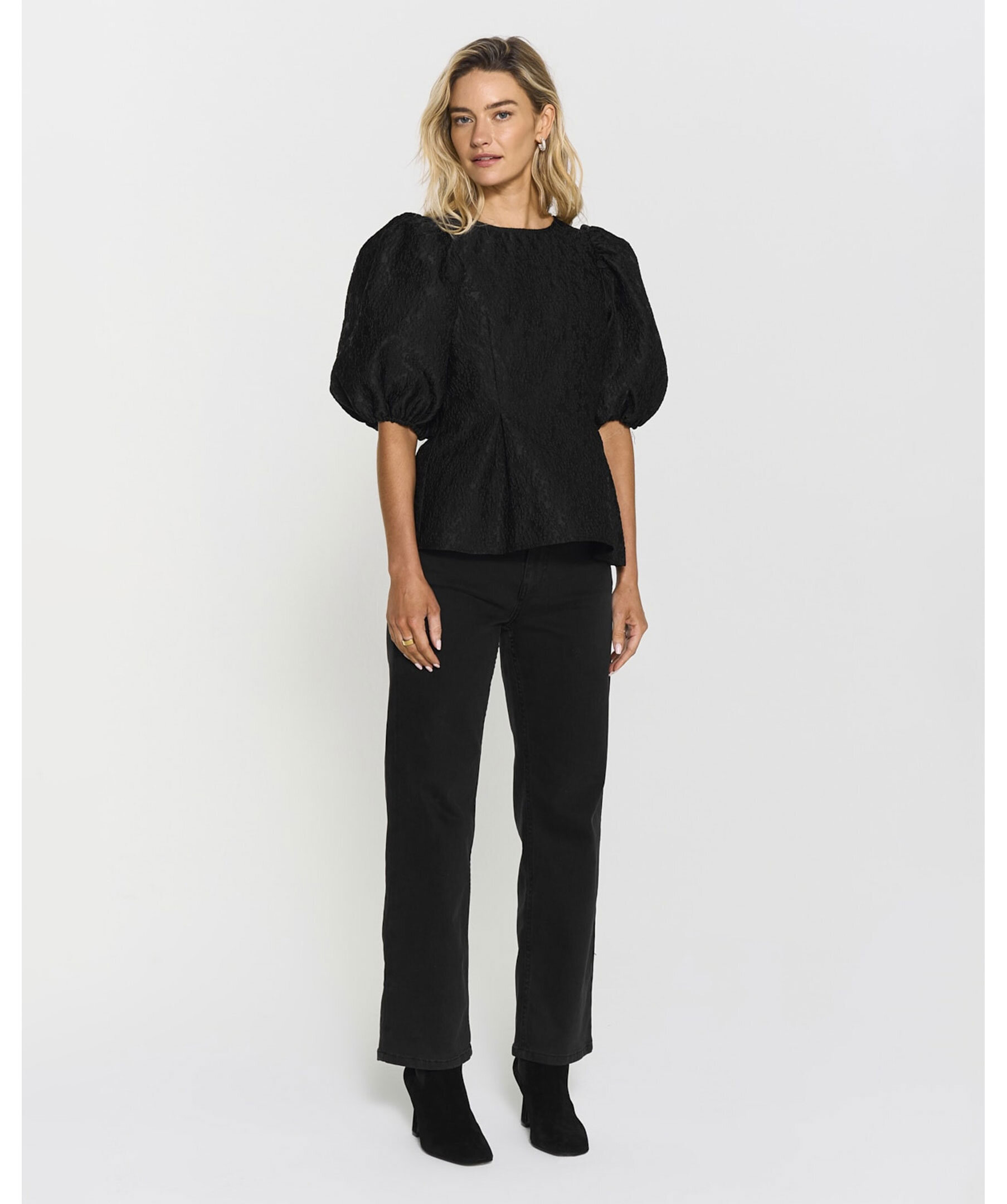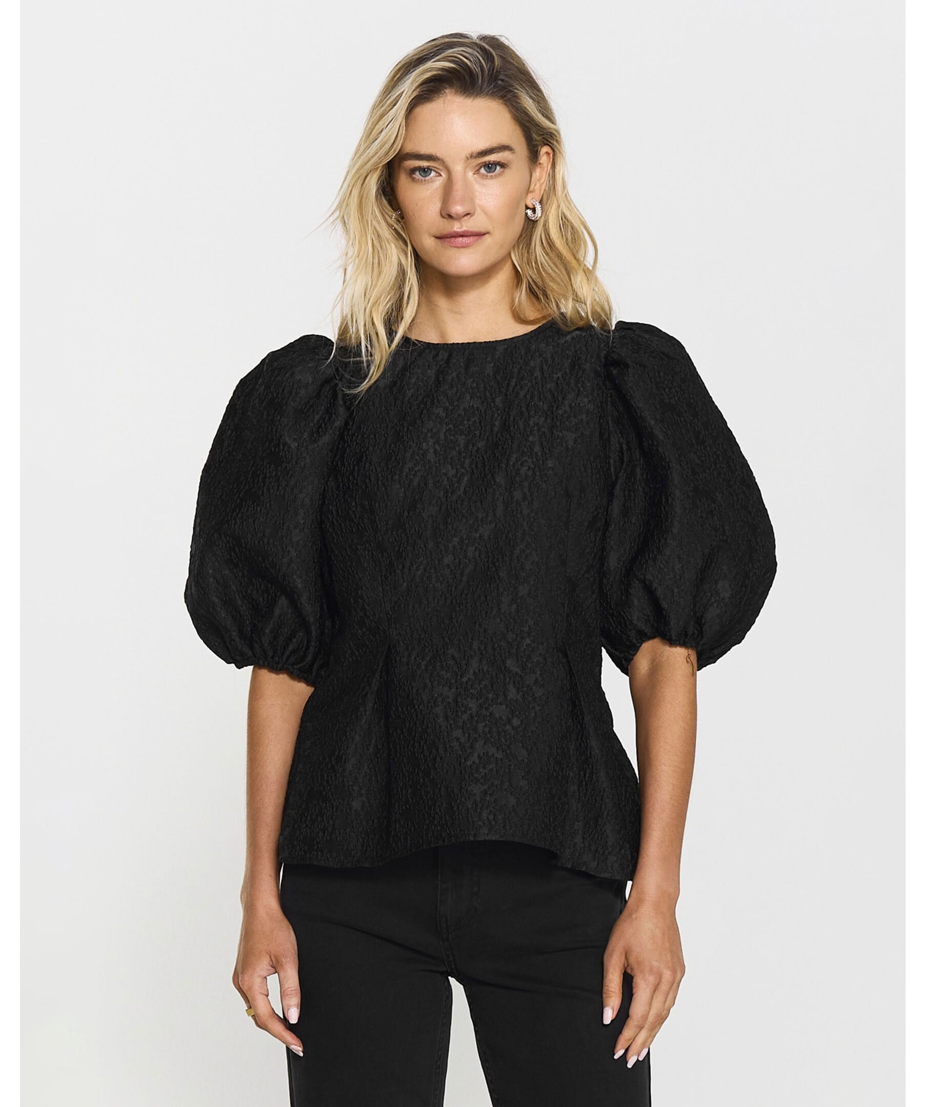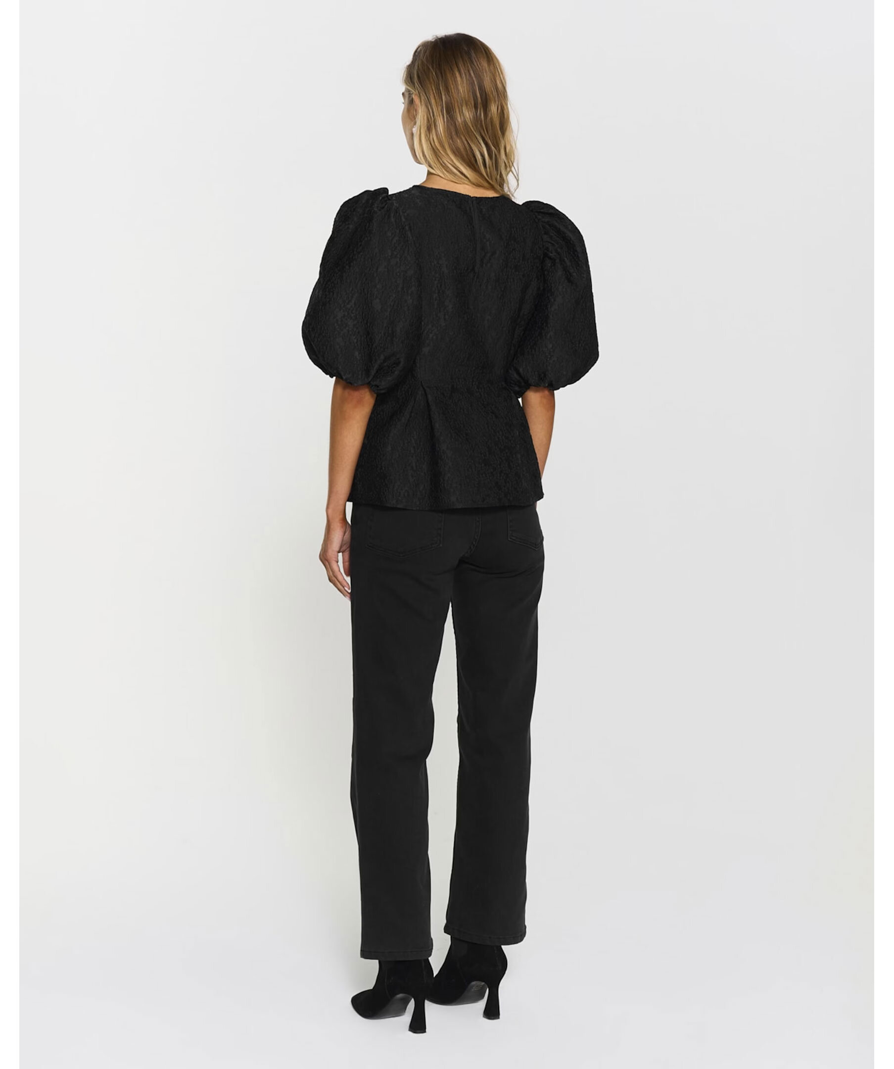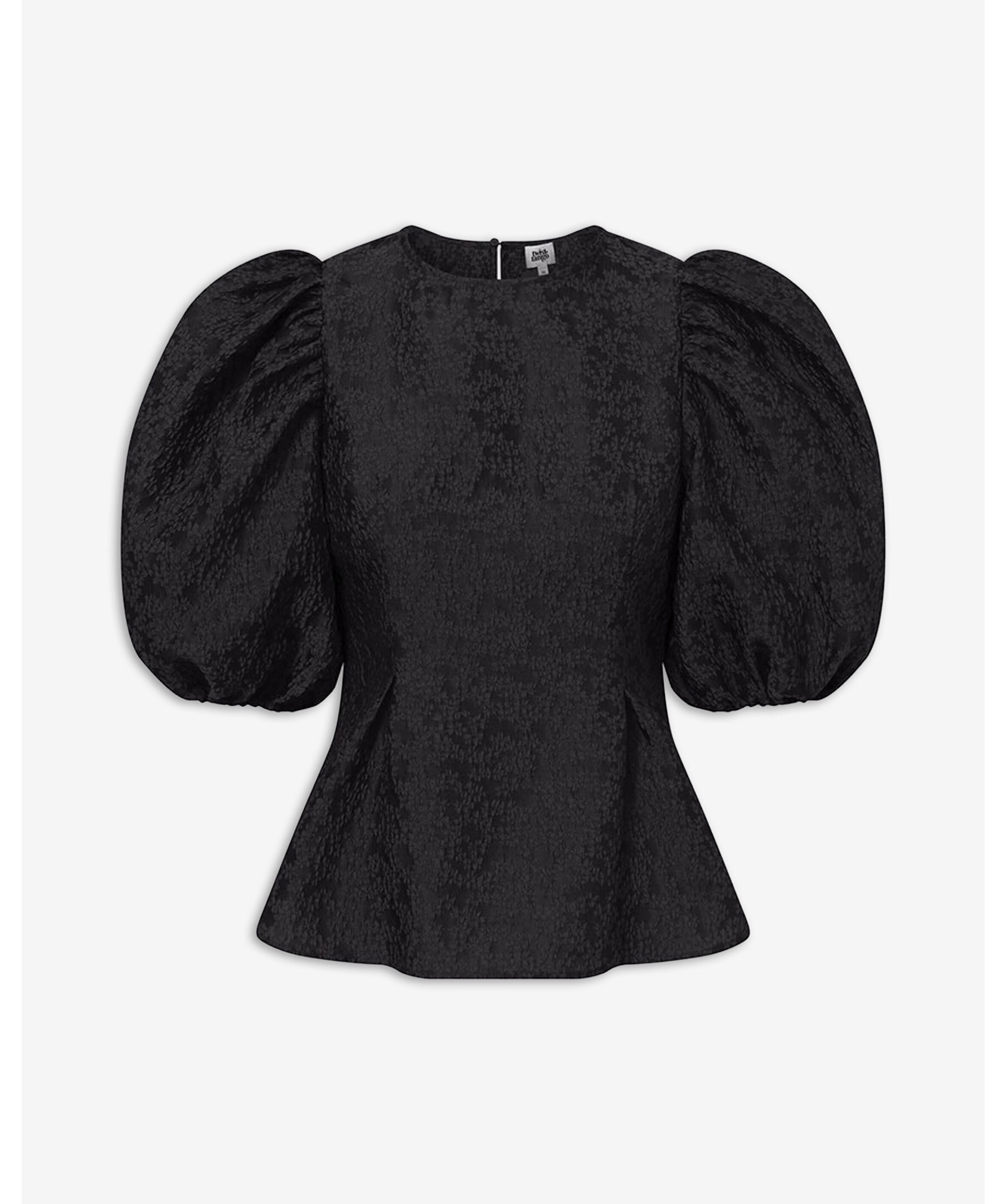 Blus från Twist & Tango med puffärmar och en figurnära passform som framhäver en smickrande, feminin silhuett. Den mönstrade strukturen ger designen ett sofistikerat uttryck och visuellt djup.
