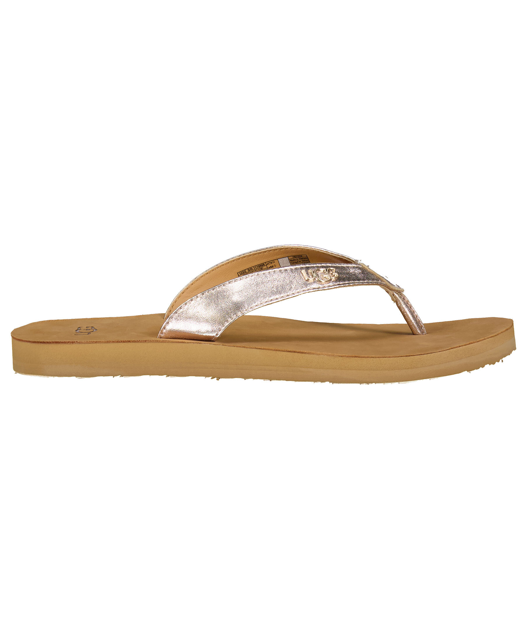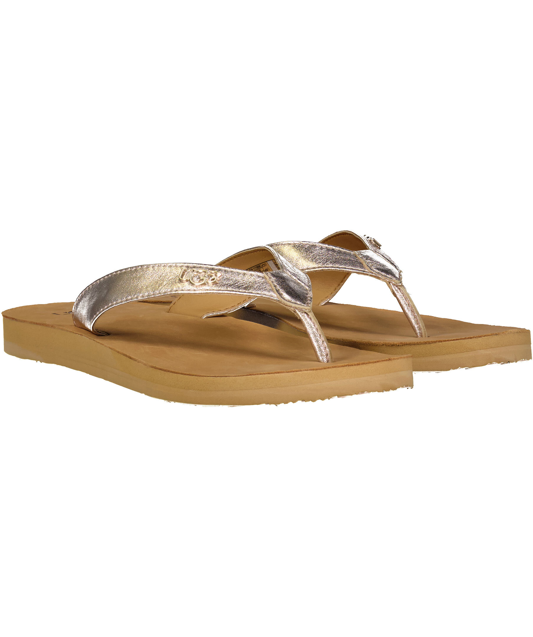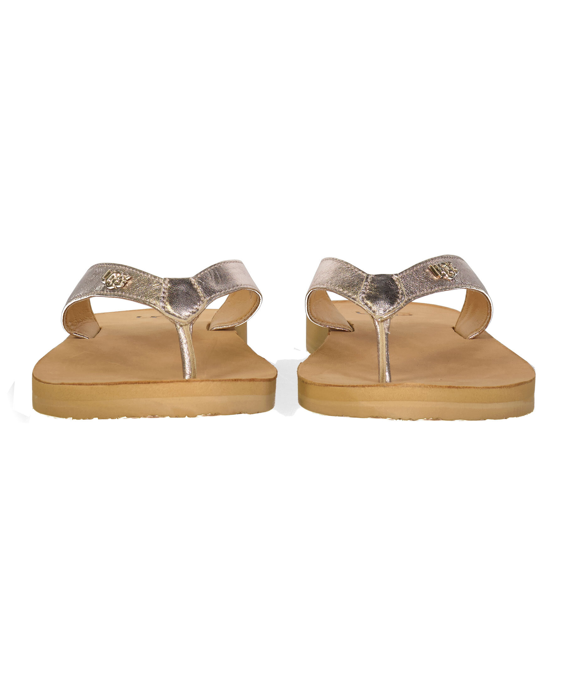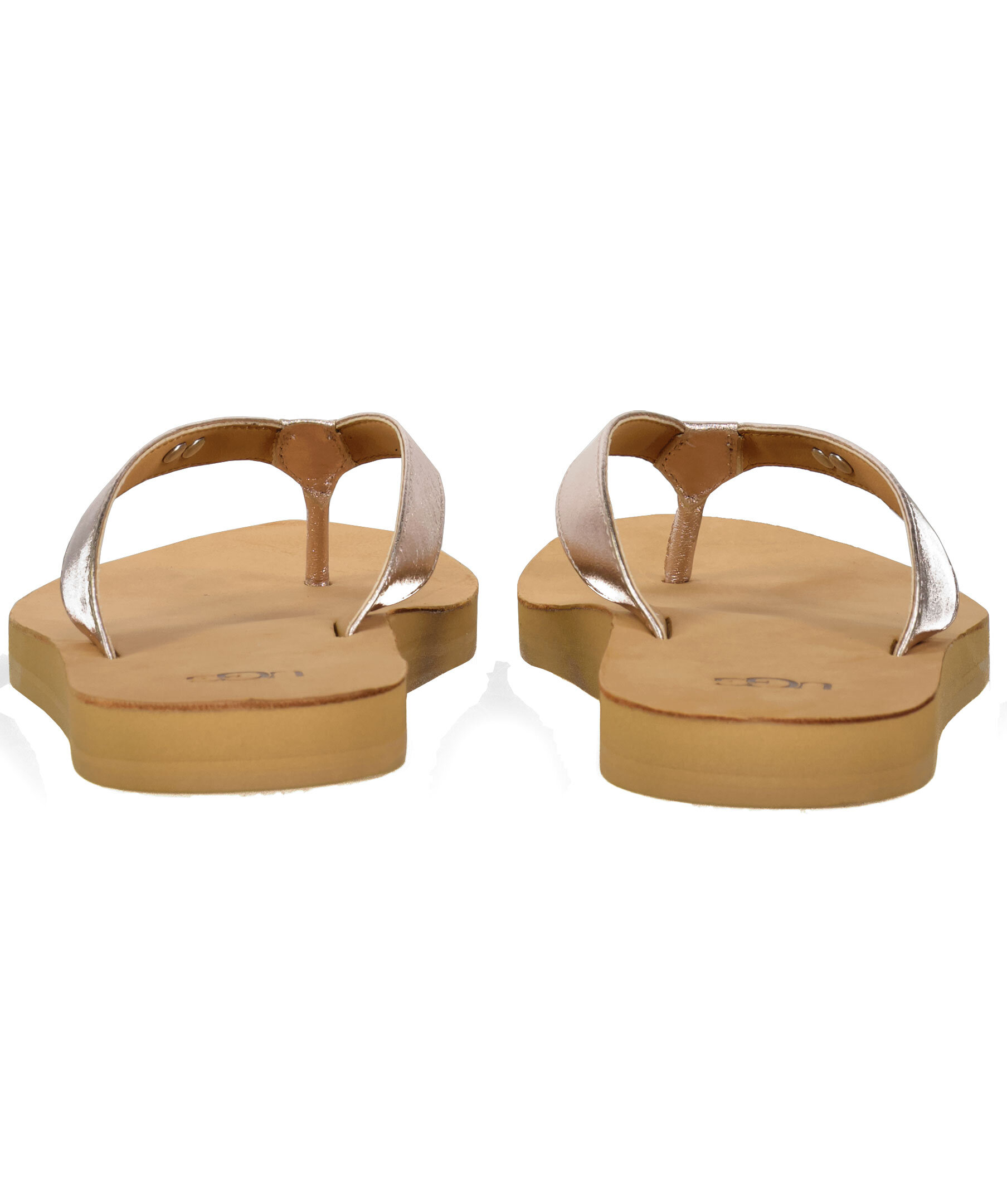 Strandsandaler från UGG. Sandalerna har ett simpelt läderband med en metallisk yta och en EVA sula. Liten logotyp på läderbandet i metall.
