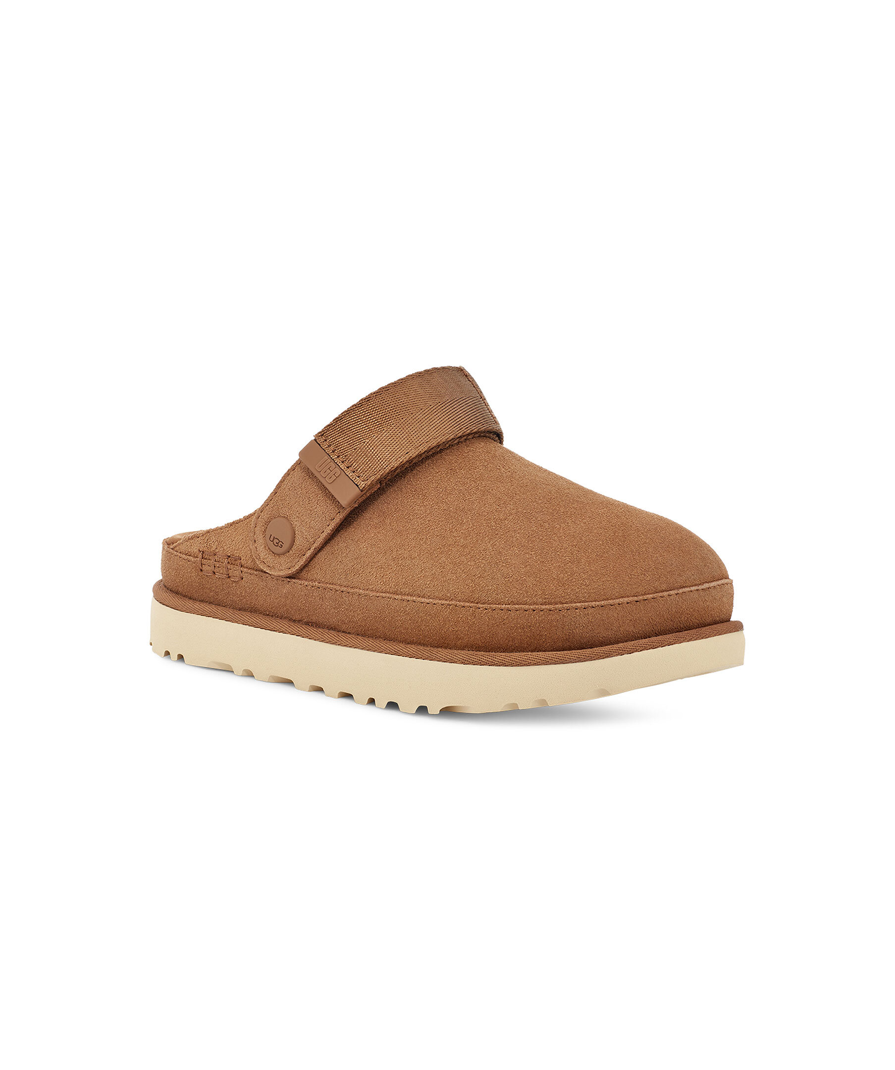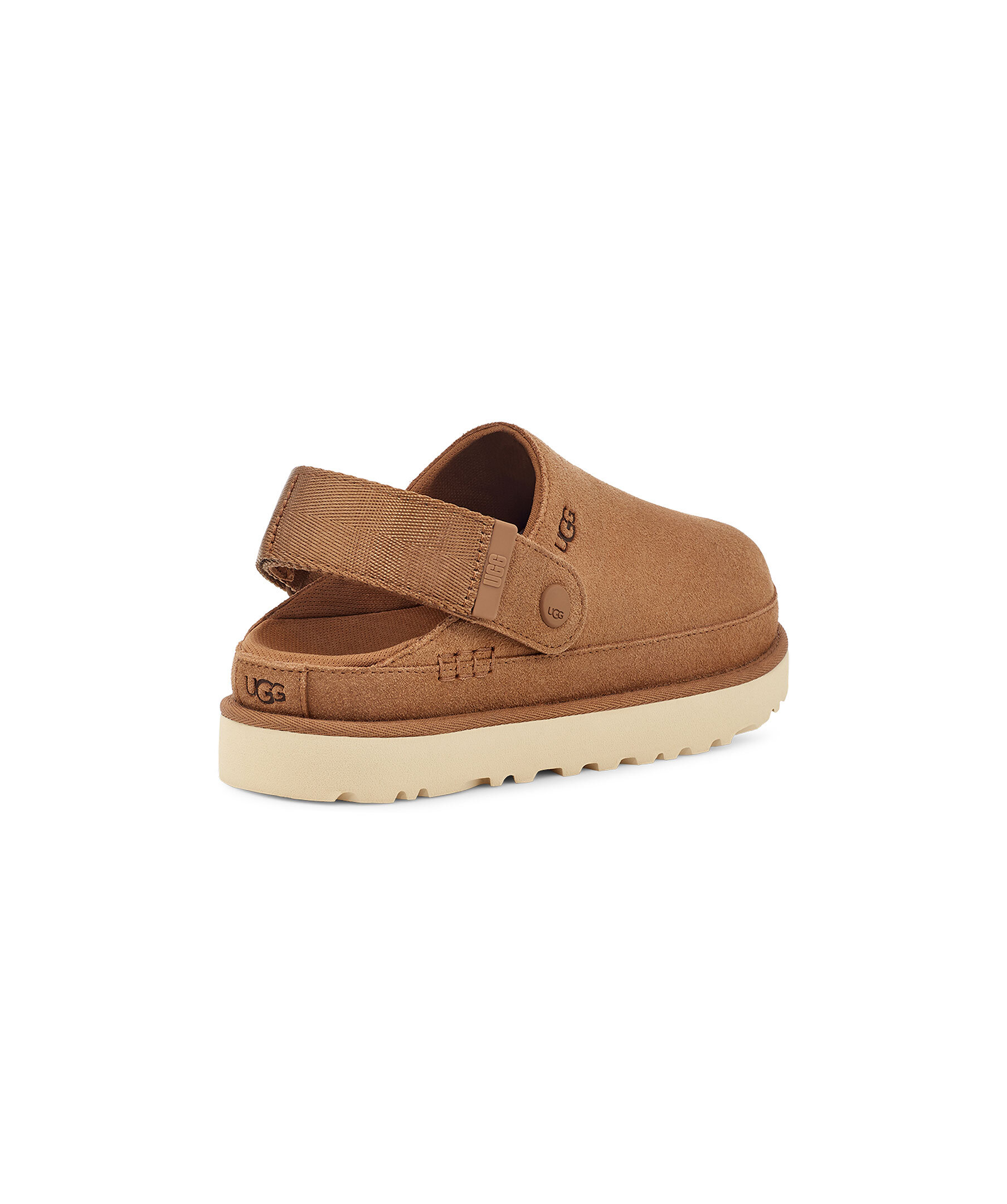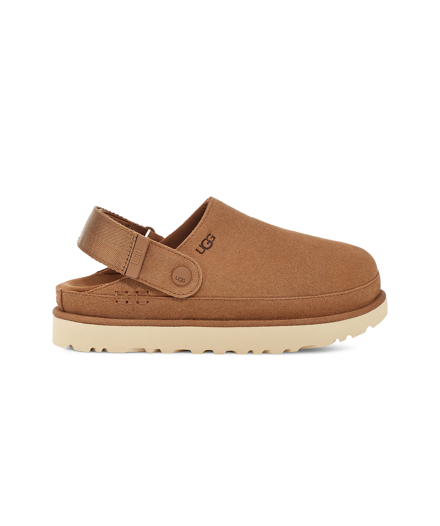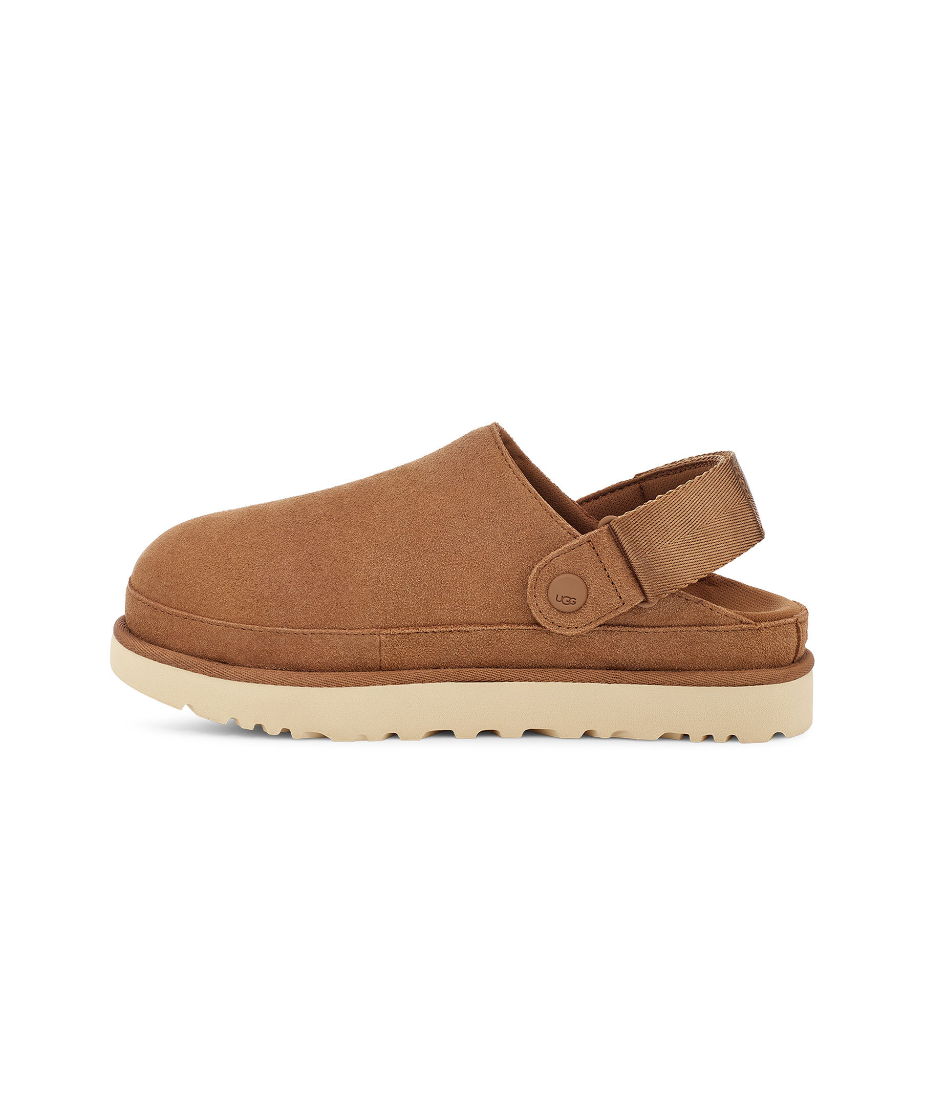 Bruna slip in skor från UGG med hälrem. Tillverkad av sammetslen mocka, erbjuder denna mångsidiga plattformsträsko en stil som kan användas med allt. Hälremmen har en vridbar design för ett 2-i-1 bäralternativ - bär den som en hälrem eller staplad ovanpå för ett enkelt på/av, öppet baktillval. En ultralätt yttersula ger dämpning och stöd hela dagen. Justerbar hälrem, kardborre stängning. Logotyp på både utsida, insida, häl och hälrem. Textilfoder tillverkat av 100 % återvunna polyesterfibrer.