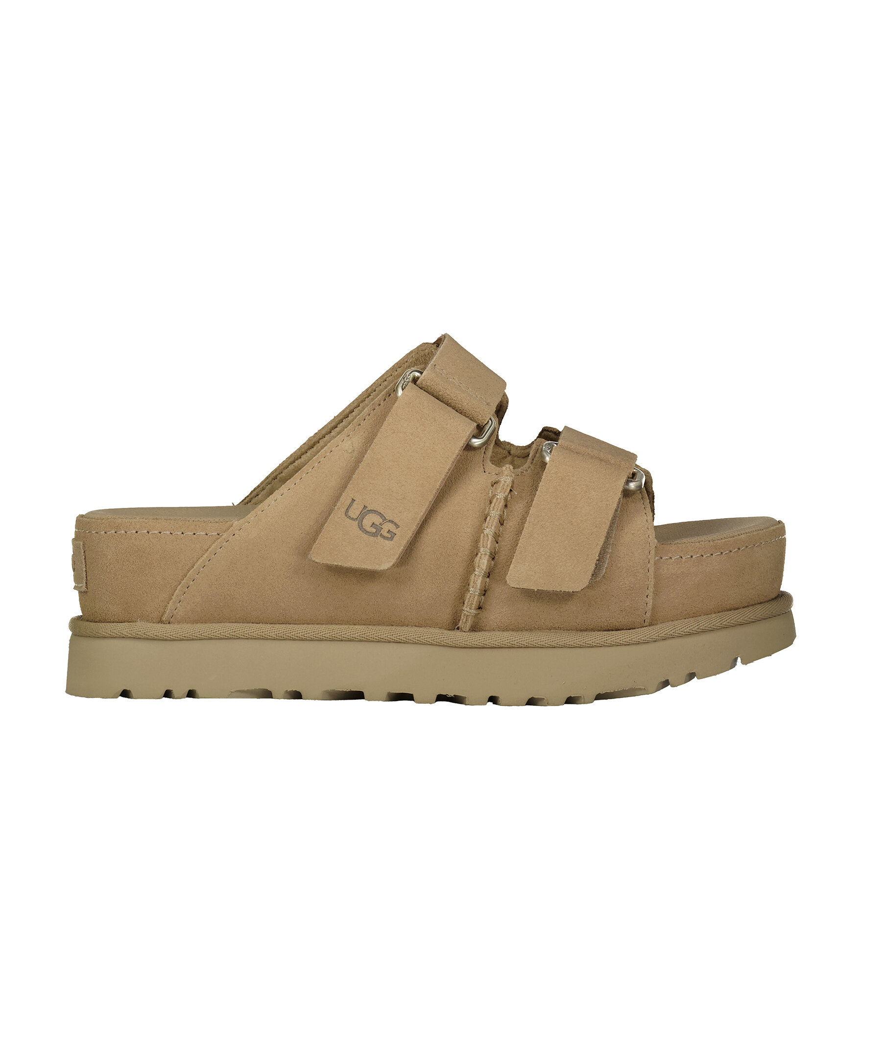 Beigea sandaler från UGG. Justerbara remmar med kardborre. Embossad logotyp på översta remmen. plattformssula gjord av SugarSole,™ sulans höjd: 6cm. Foder tillverkat av 100% återvunnet polyester.