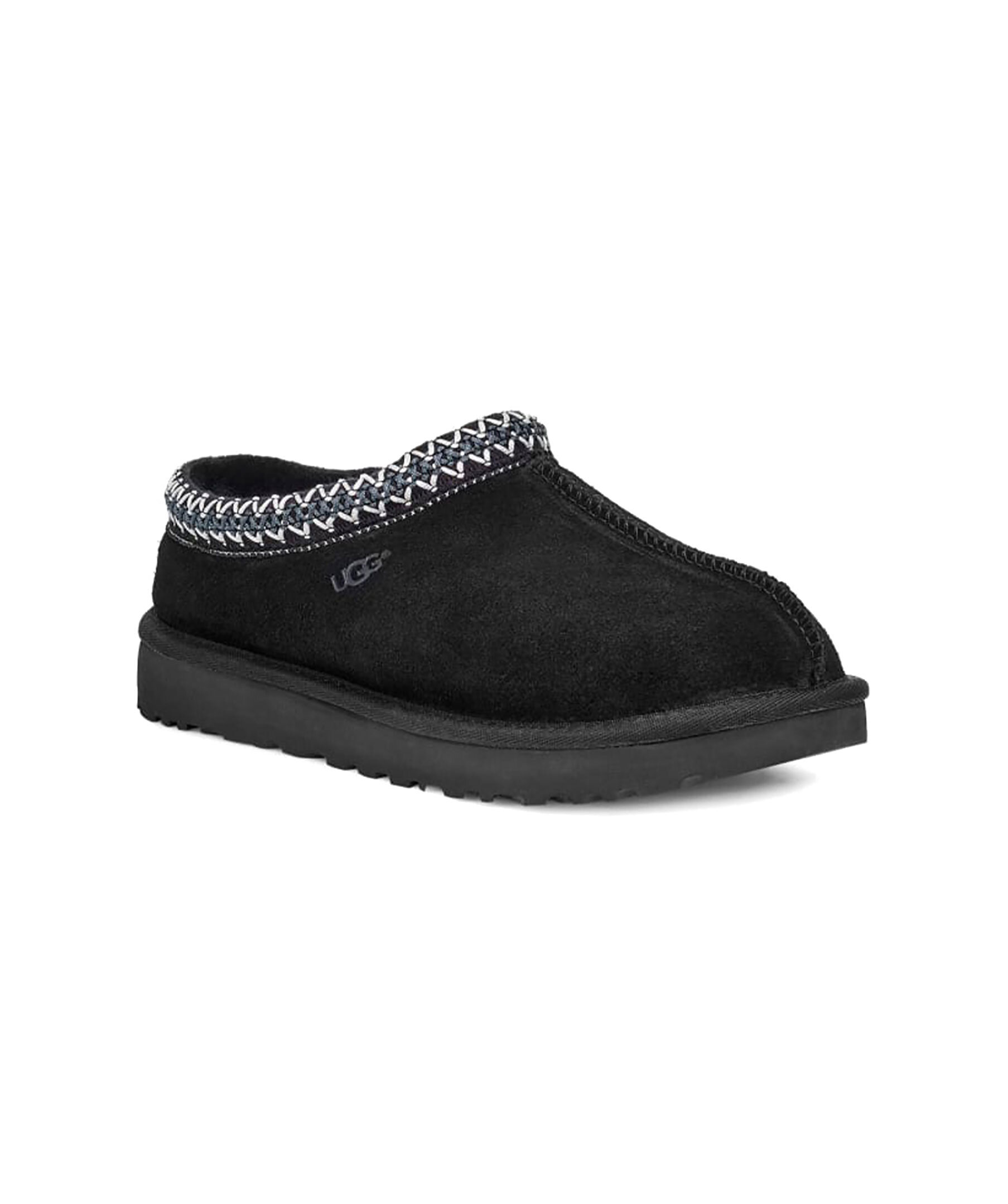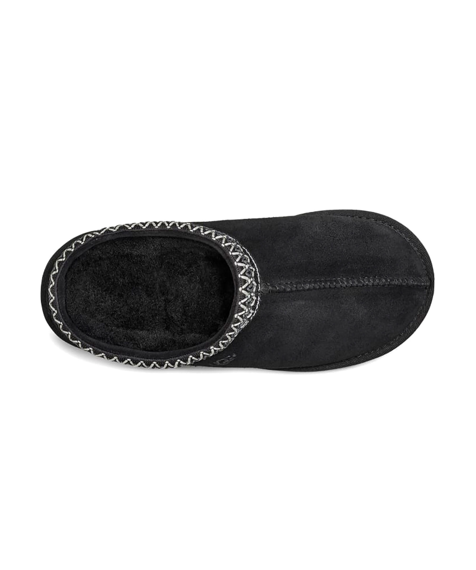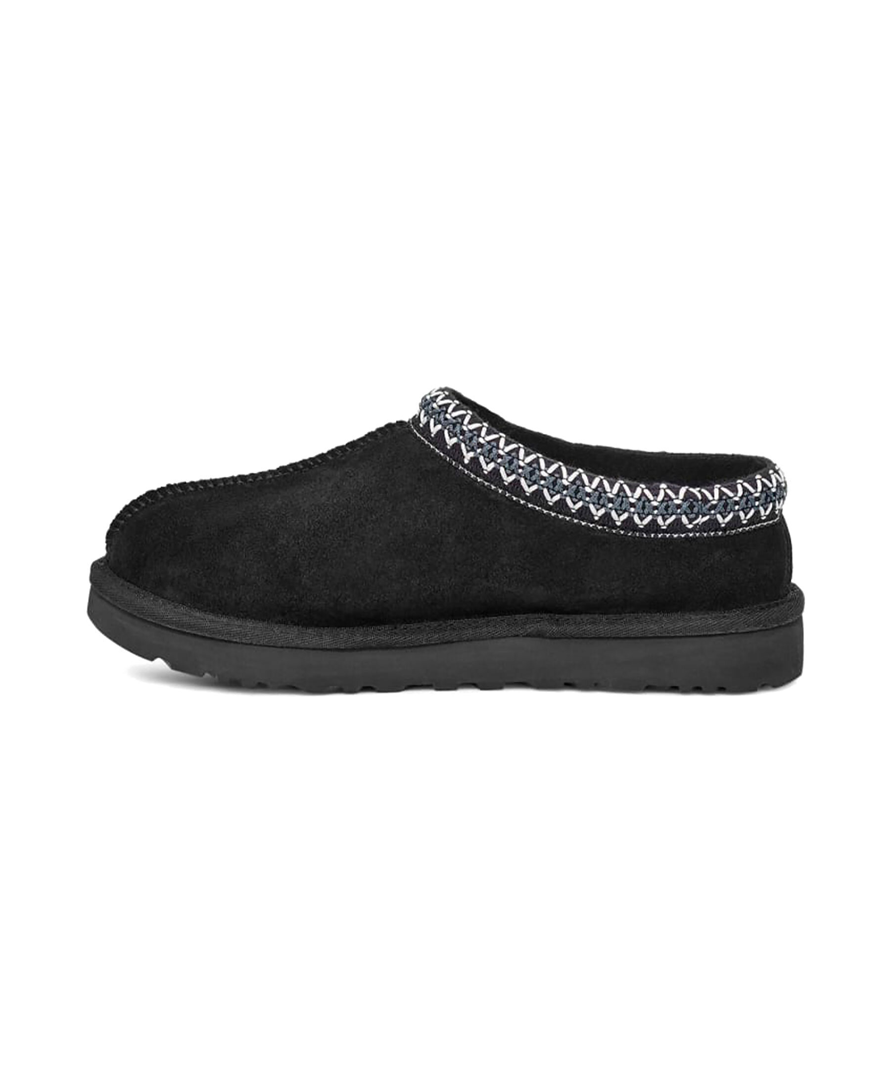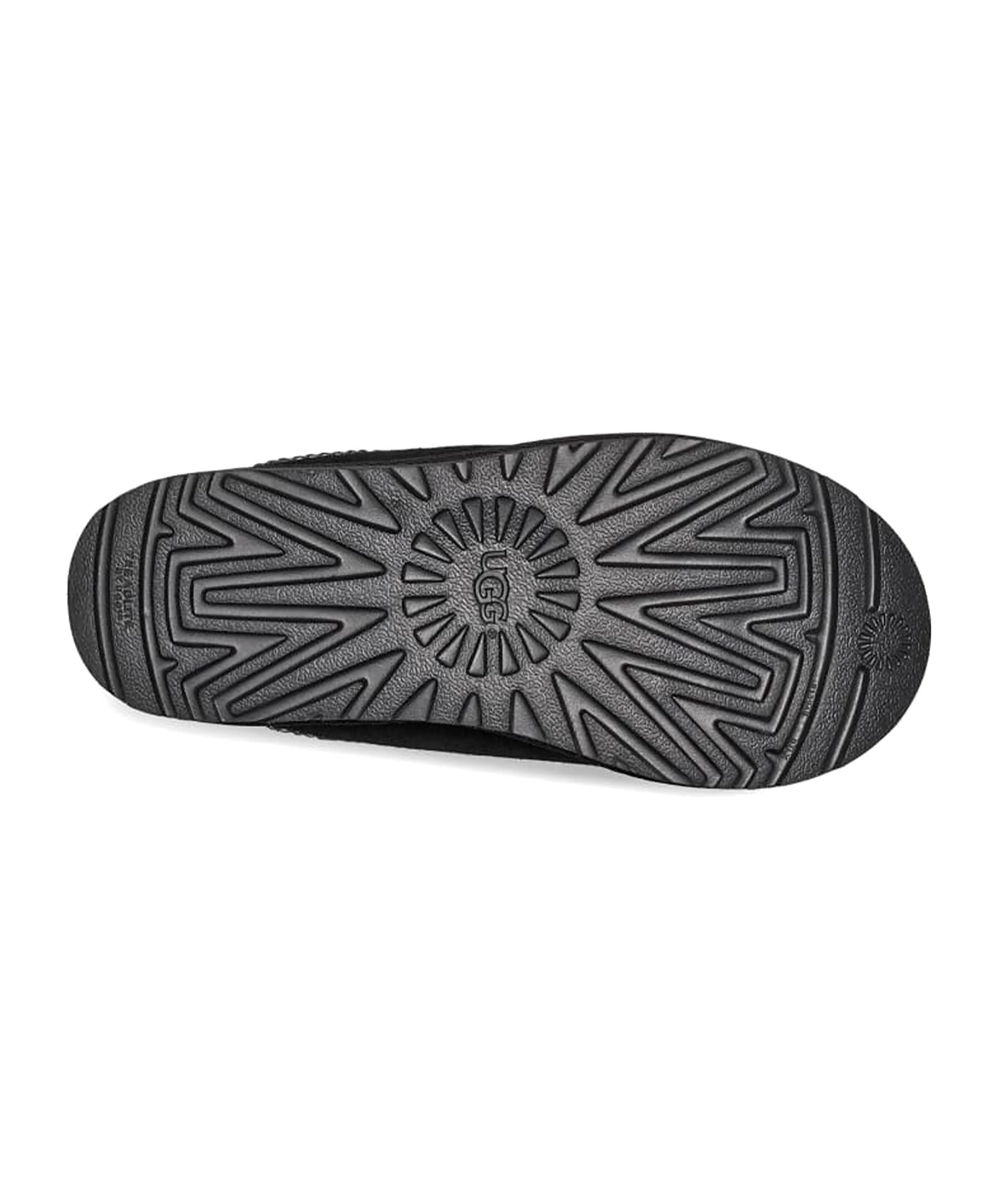 Svarta tofflor i mocka från UGG. Fodrade med mjuk ull. Flätat mönster vid tofflans öppning. Skon passar utmärkt att använda till ute- och inomhusbruk. Sulan är den klassiska lätta UGG sulan. Skon är liten i storlek, vi rekommenderar att gå upp en storlek. De är inte tillverkade för slaskigt och blött klimat och rekommenderas att inte användas när det är blött ute. Man behöver behandla skorna med skoimpregnering regelbundet för att skorna ska hålla längre och stå emot väta bättre.