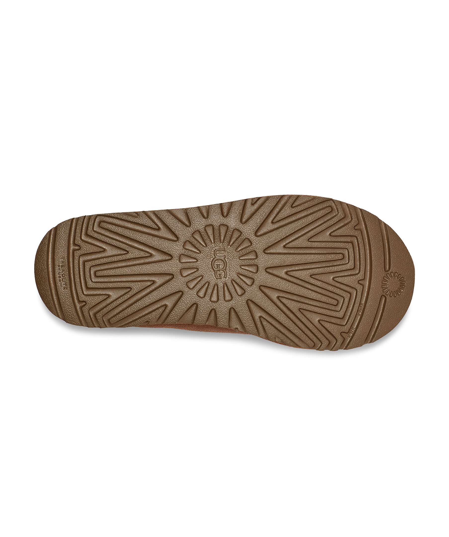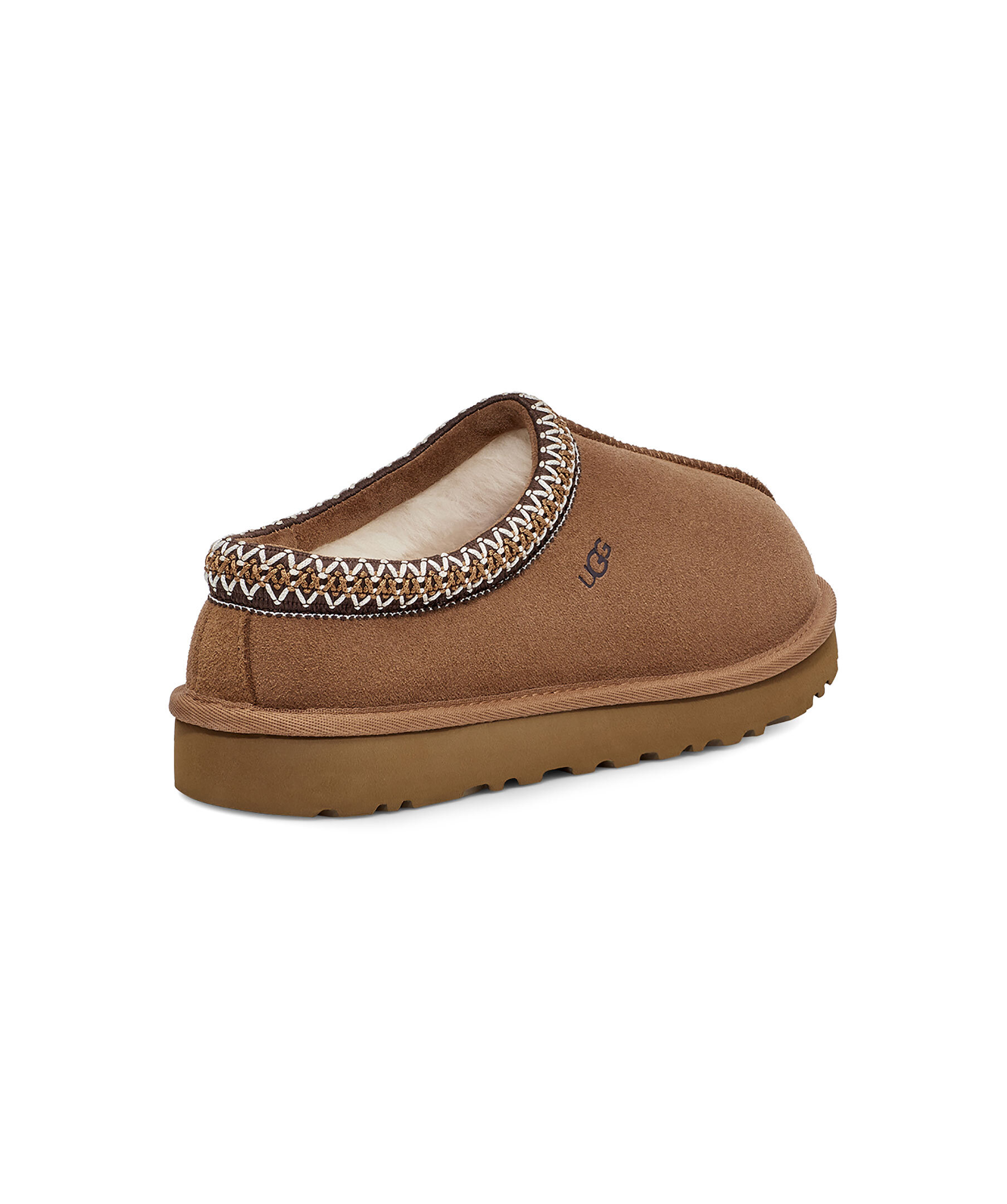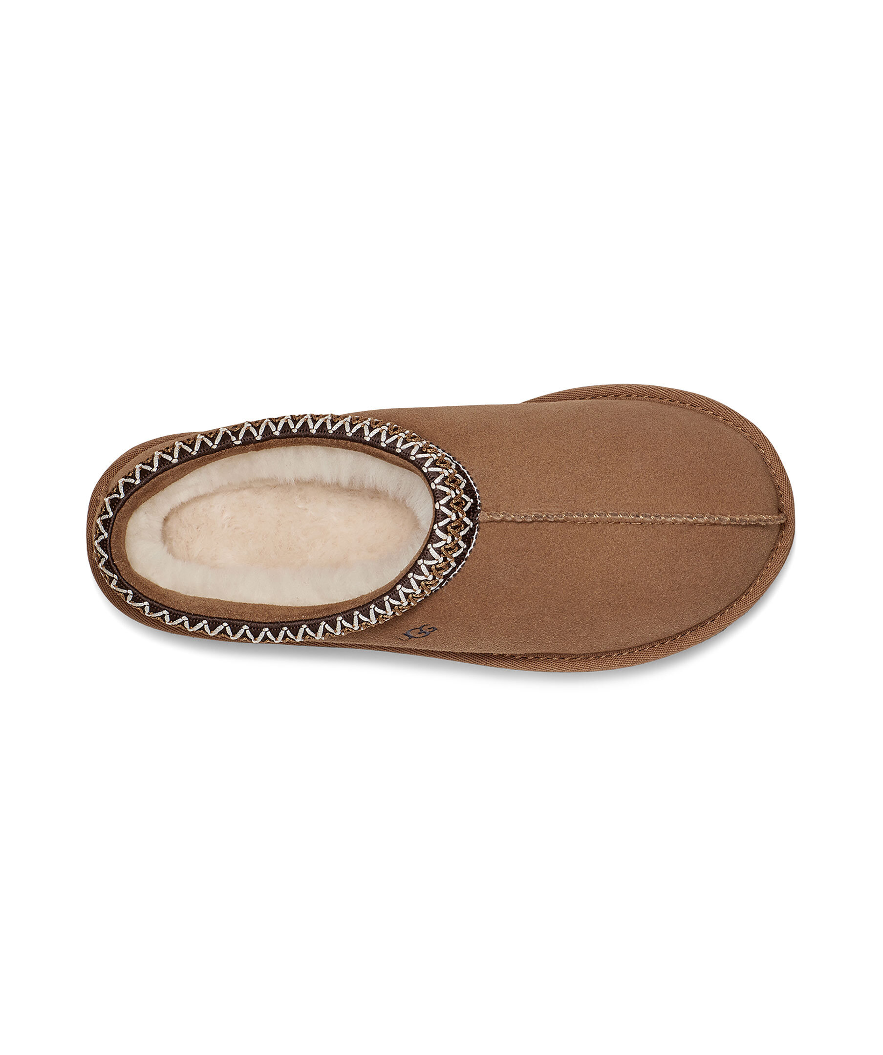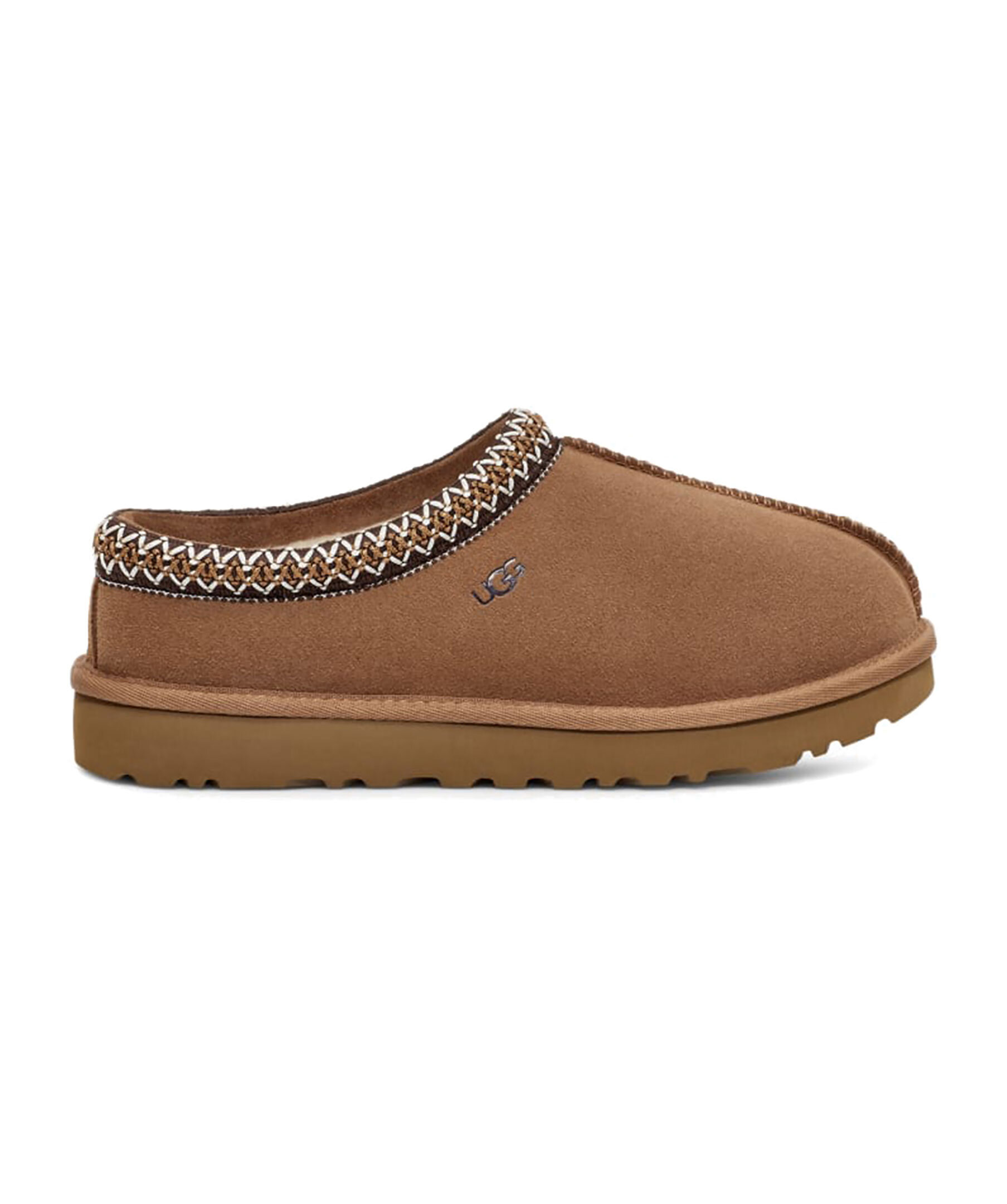 Beigea tofflor i mocka från UGG. Fodrade med mjuk ull. Brunt, flätat mönster vid tofflans öppning. Skon passar utmärkt att använda till ute- och inomhusbruk. Sulan är den klassiska lätta UGG sulan. Skon är liten i storlek, vi rekommenderar att gå upp en storlek. De är inte tillverkade för slaskigt och blött klimat och rekommenderas att inte användas när det är blött ute. Man behöver behandla skorna med skoimpregnering regelbundet för att skorna ska hålla längre och stå emot väta bättre.