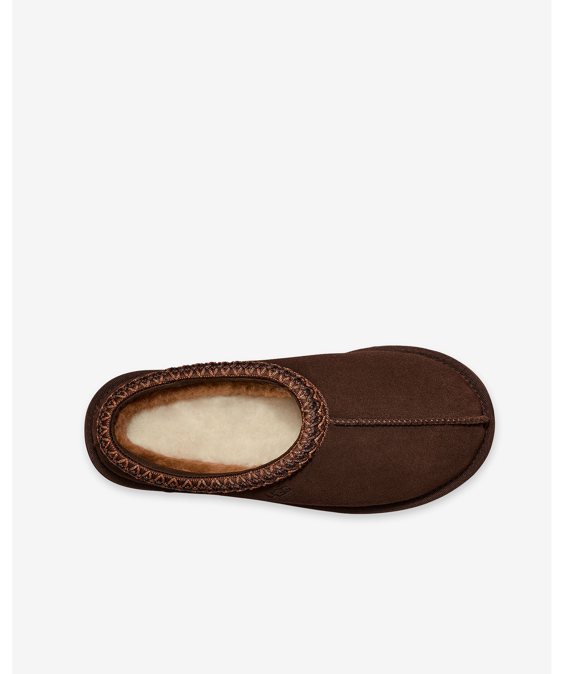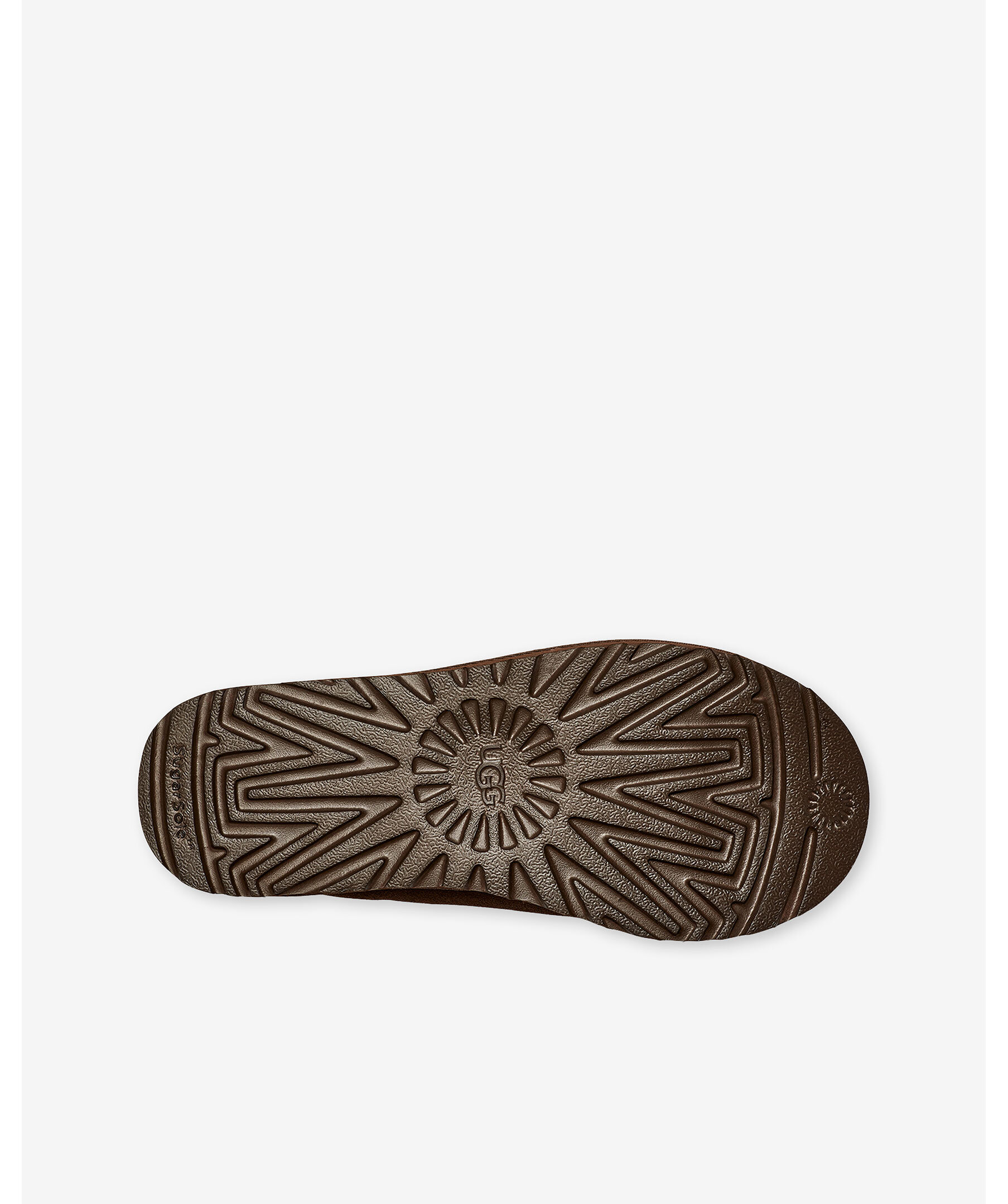 Chokladbruna tofflor utan skaft från UGG. Tofflorna har broderad kant, deras signatur UGG-fläta på kragen, en lyxig fårskinnsinredning och yttersula mjuk sockerrörs-EVA för optimal komfort. Perfekta för både inomhus- och utomhusbruk och är det ultimata valet för stil och komfort hela dagen.