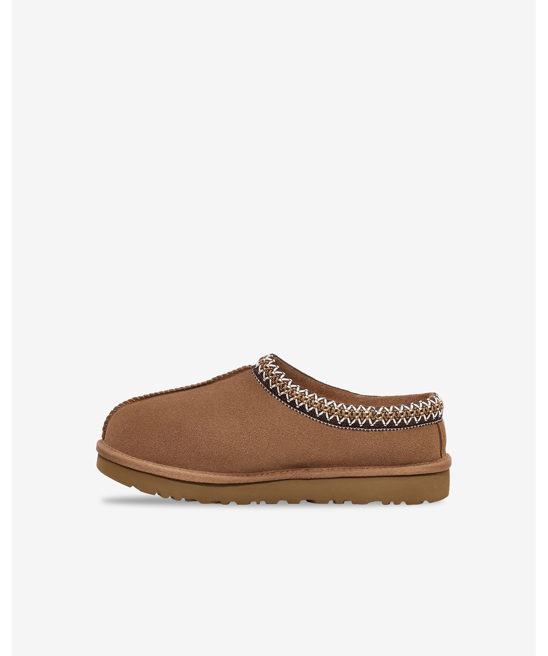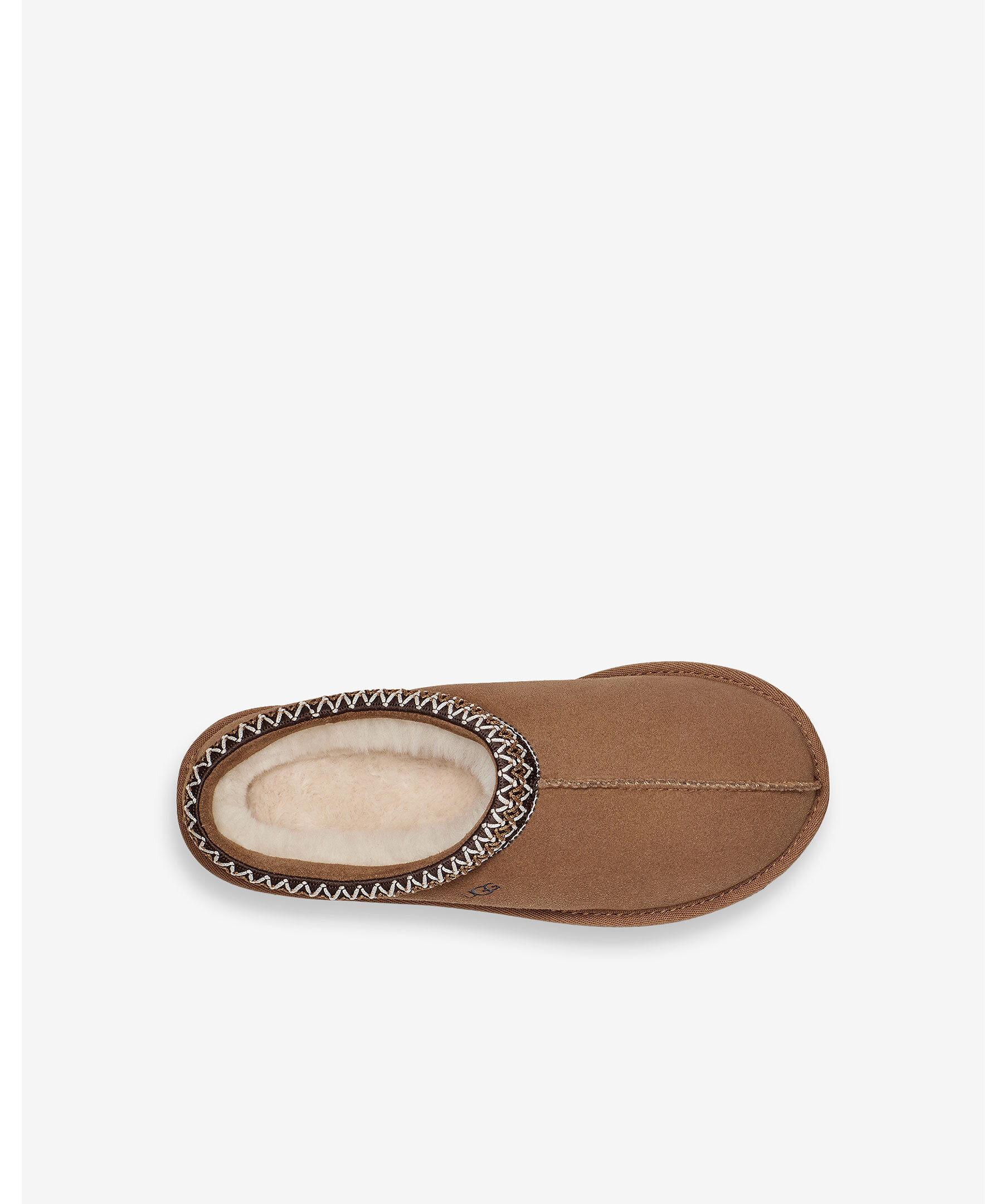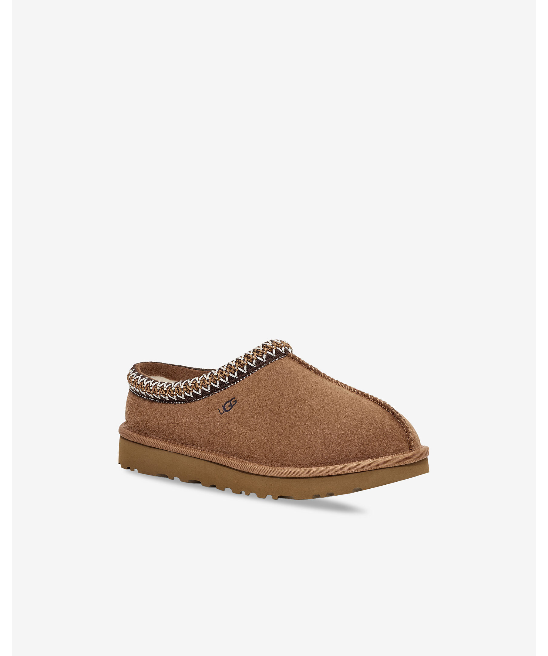 Kamelfärgade tofflor utan skaft från UGG. Tofflorna har broderad kant, deras signatur UGG-fläta på kragen, en lyxig fårskinnsinredning och yttersula mjuk sockerrörs-EVA för optimal komfort. Perfekta för både inomhus- och utomhusbruk och är det ultimata valet för stil och komfort hela dagen.