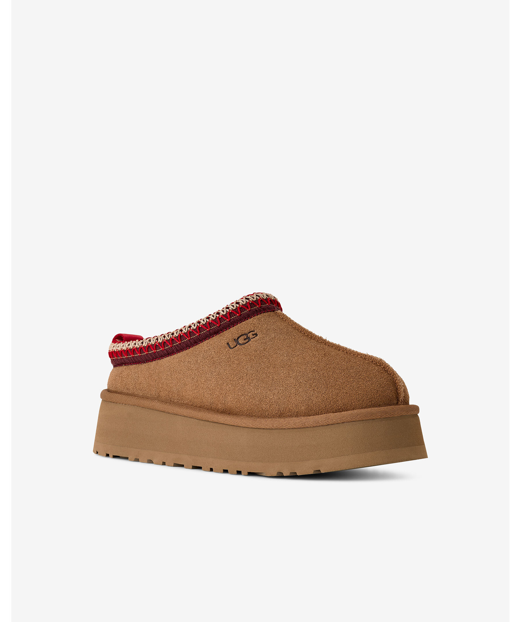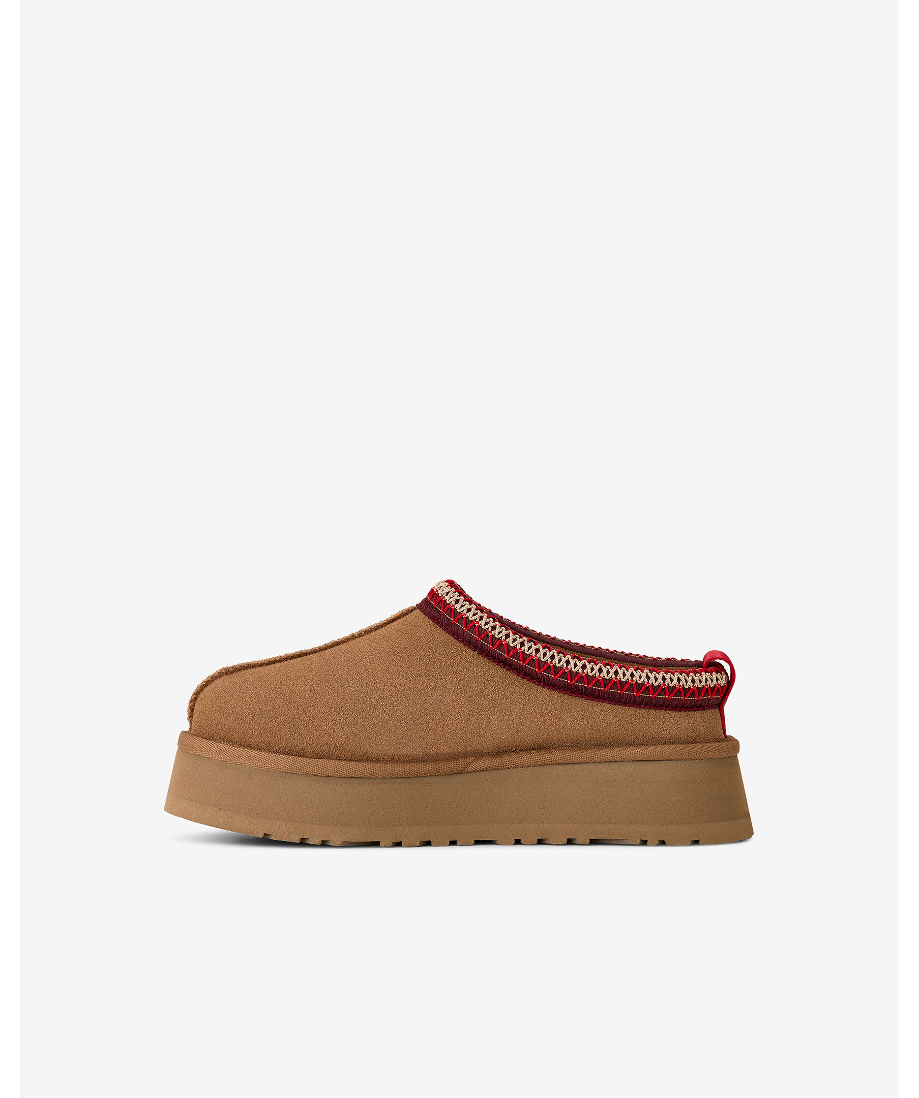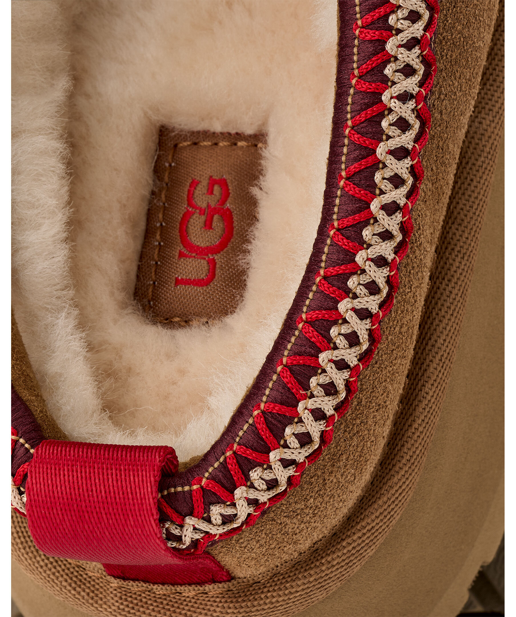 Kamelfärgade tofflor utan skaft från UGG. Tofflorna har en ovandel i slät mocka, broderad kant, deras signatur UGG-fläta på kragen, en lyxig fårskinnsfoder, EVA-mellansula och yttersula mjuk sockerrörs-EVA för optimal komfort. Dessa skor har en sula på 4,7cm höjd. Perfekta för både inomhus- och utomhusbruk och är det ultimata valet för stil och komfort hela dagen.