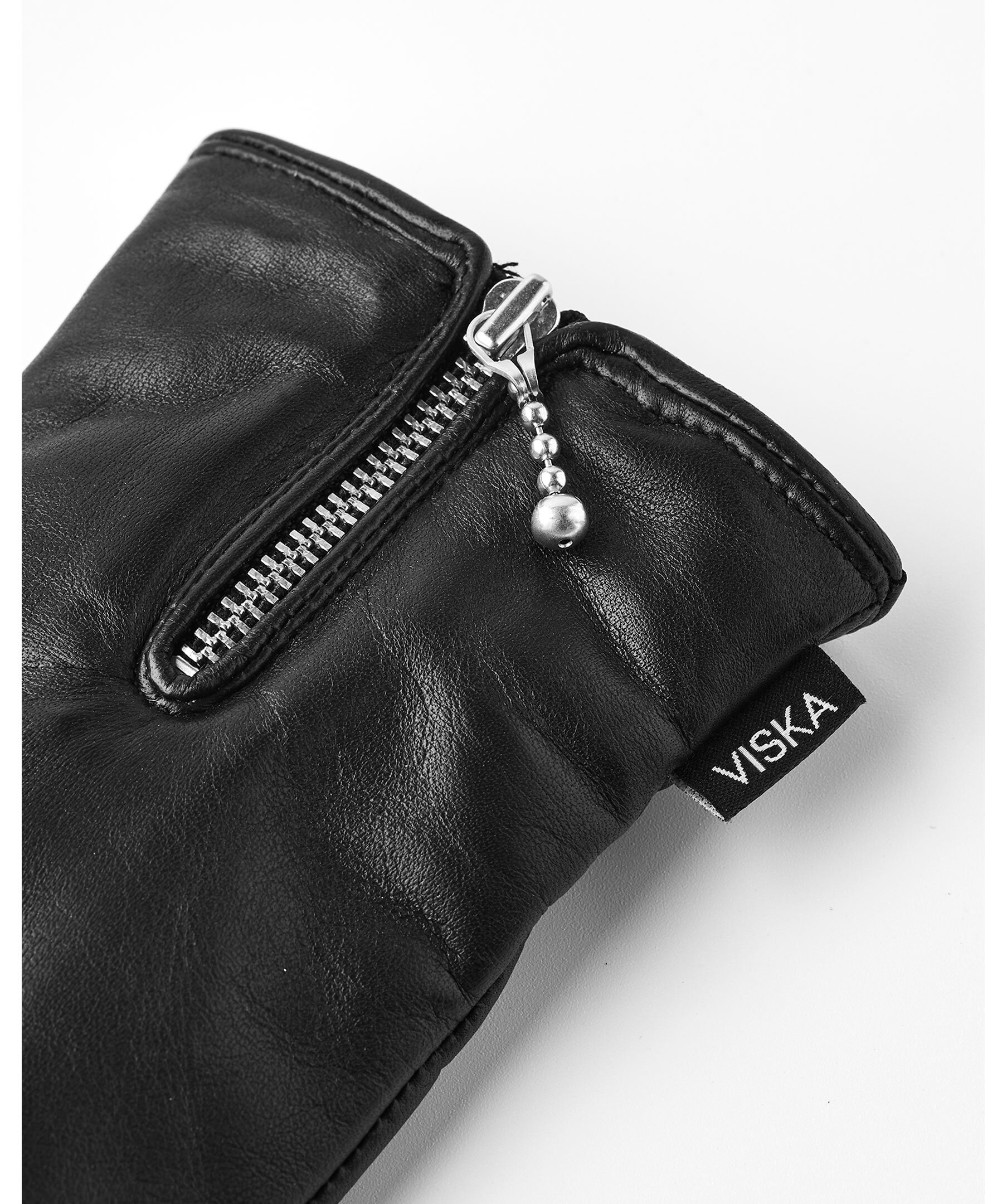 Skinnhandskar från Viska. Handskarna är fodrade med Primaloft för värme även under kalla dagar och har resår vid handleden samt dekorativ dragkedja som förhindrar att kylan tränger in. Du kan använda mobilen med handskarna tack vare pekskärmsfunktion.