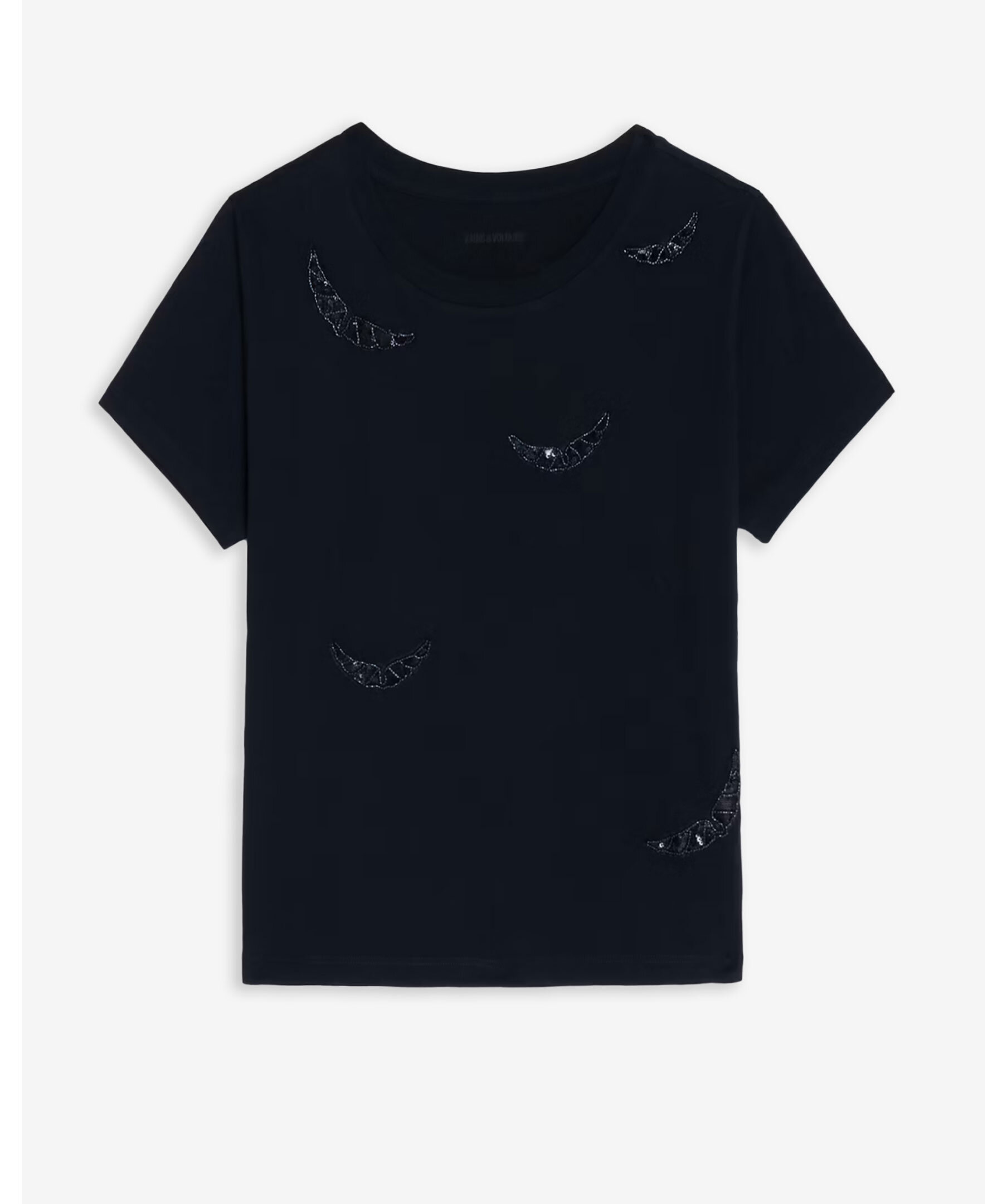 Svart t-shirt från Zadig & Voltaire med pärlbroderade vingar. Gjord i 100% bomull.
