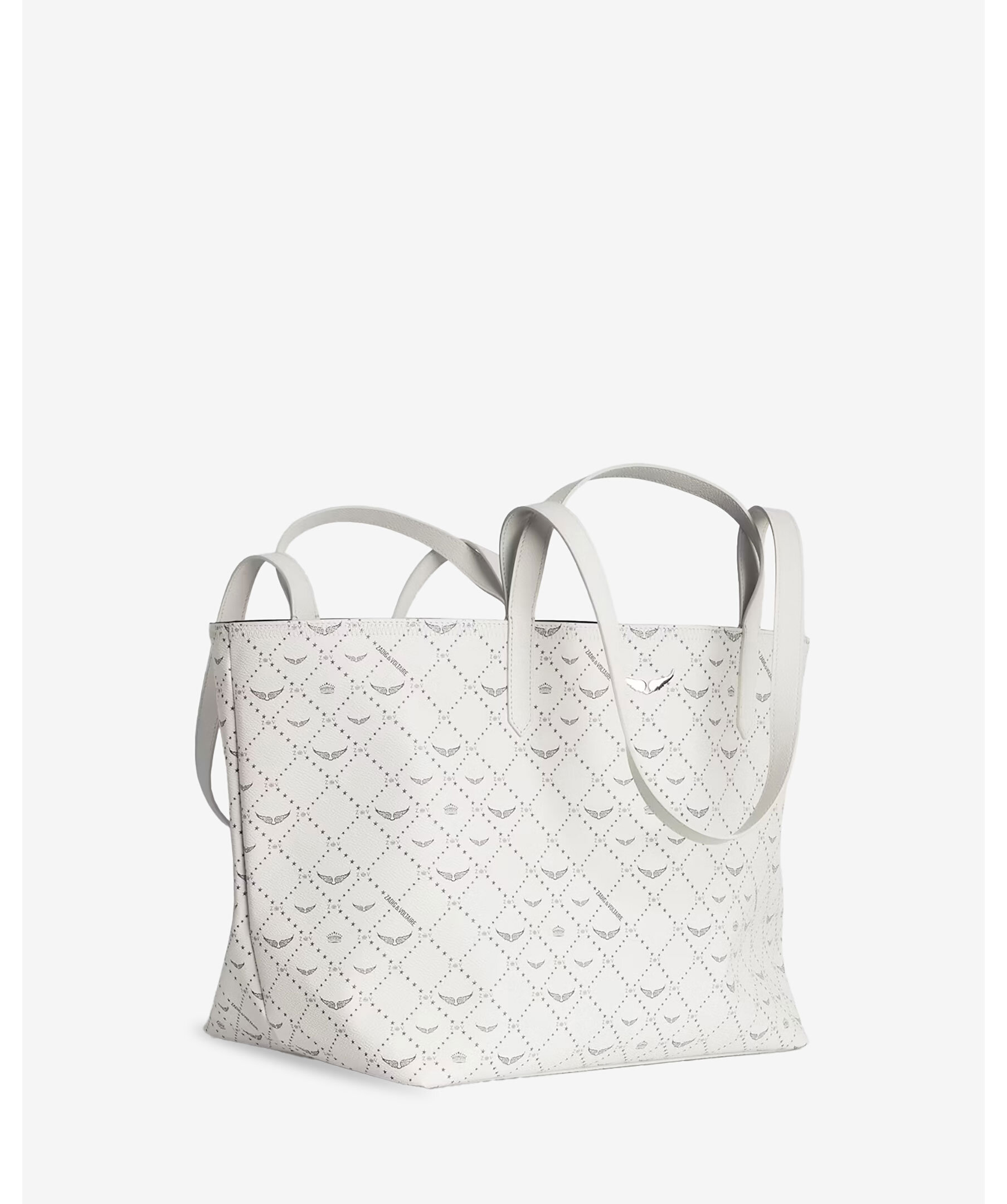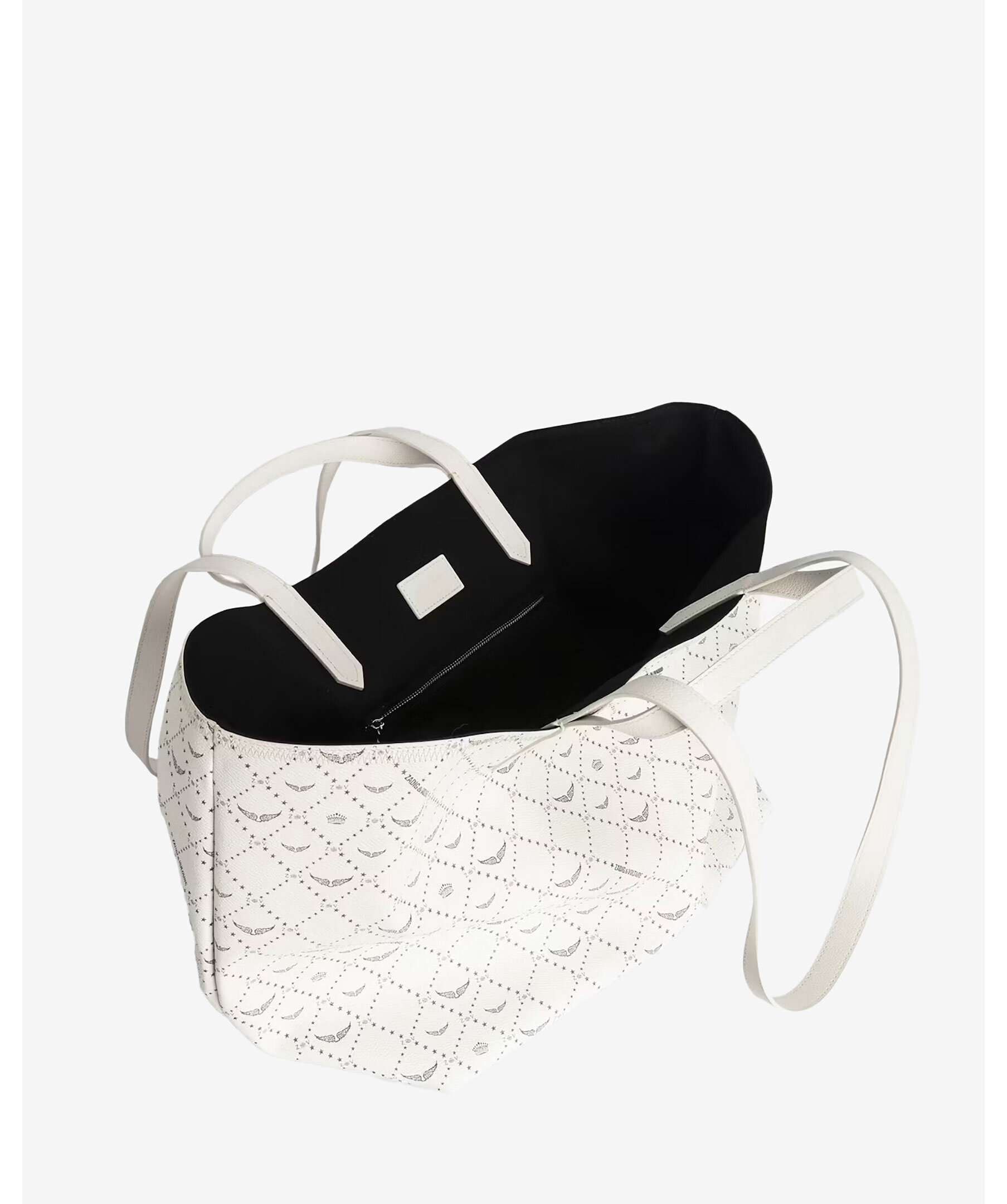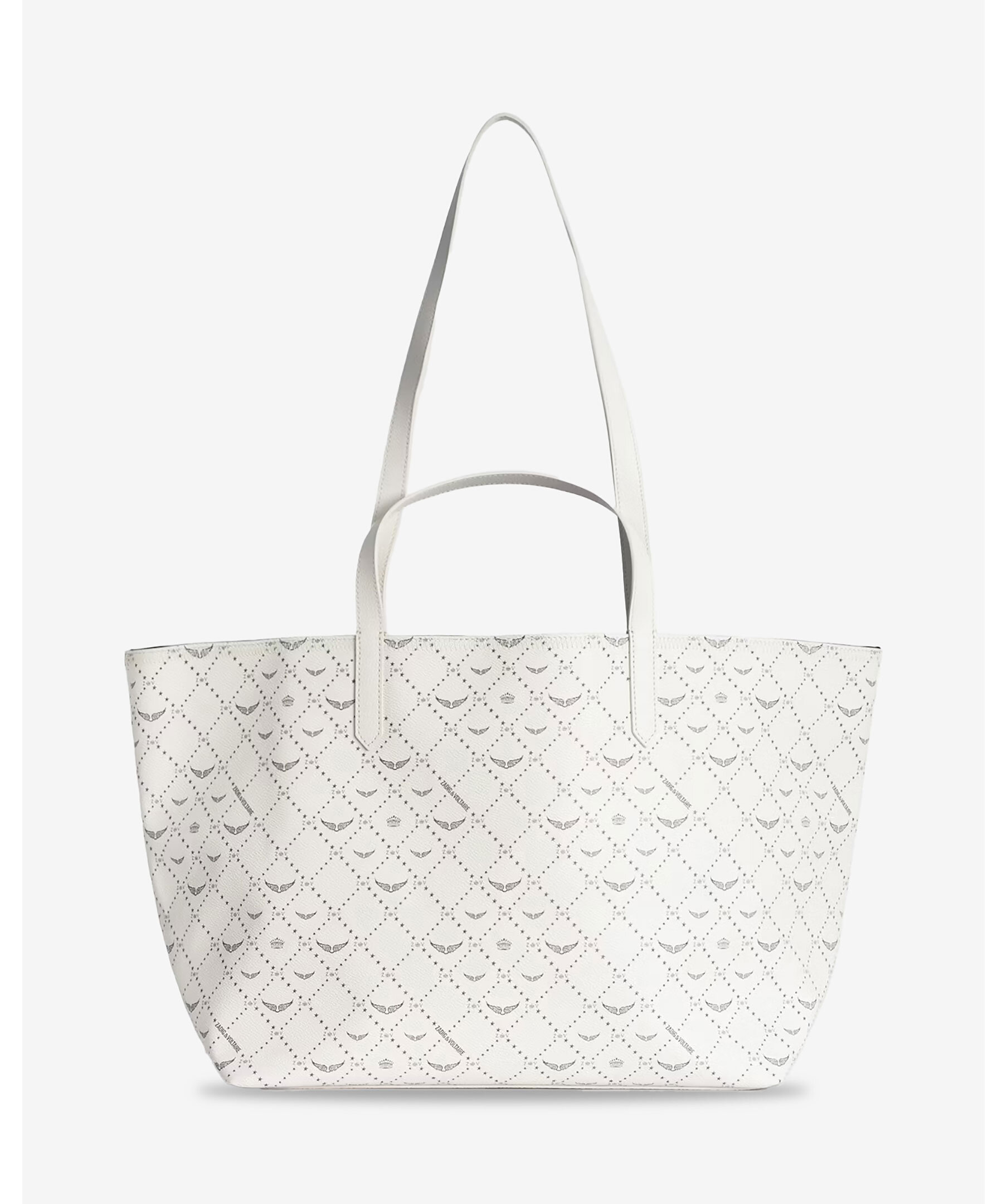 Krämvit tote bag från Zadig Voltaire. Väskan har genomgående monogramtryck, deras ikoniska metallvingar på framsidan. Tillverkad i konstläder. Mått: 54 x 30 x 23 cm. Handtagshöjd: 12.5 och 35 cm.
