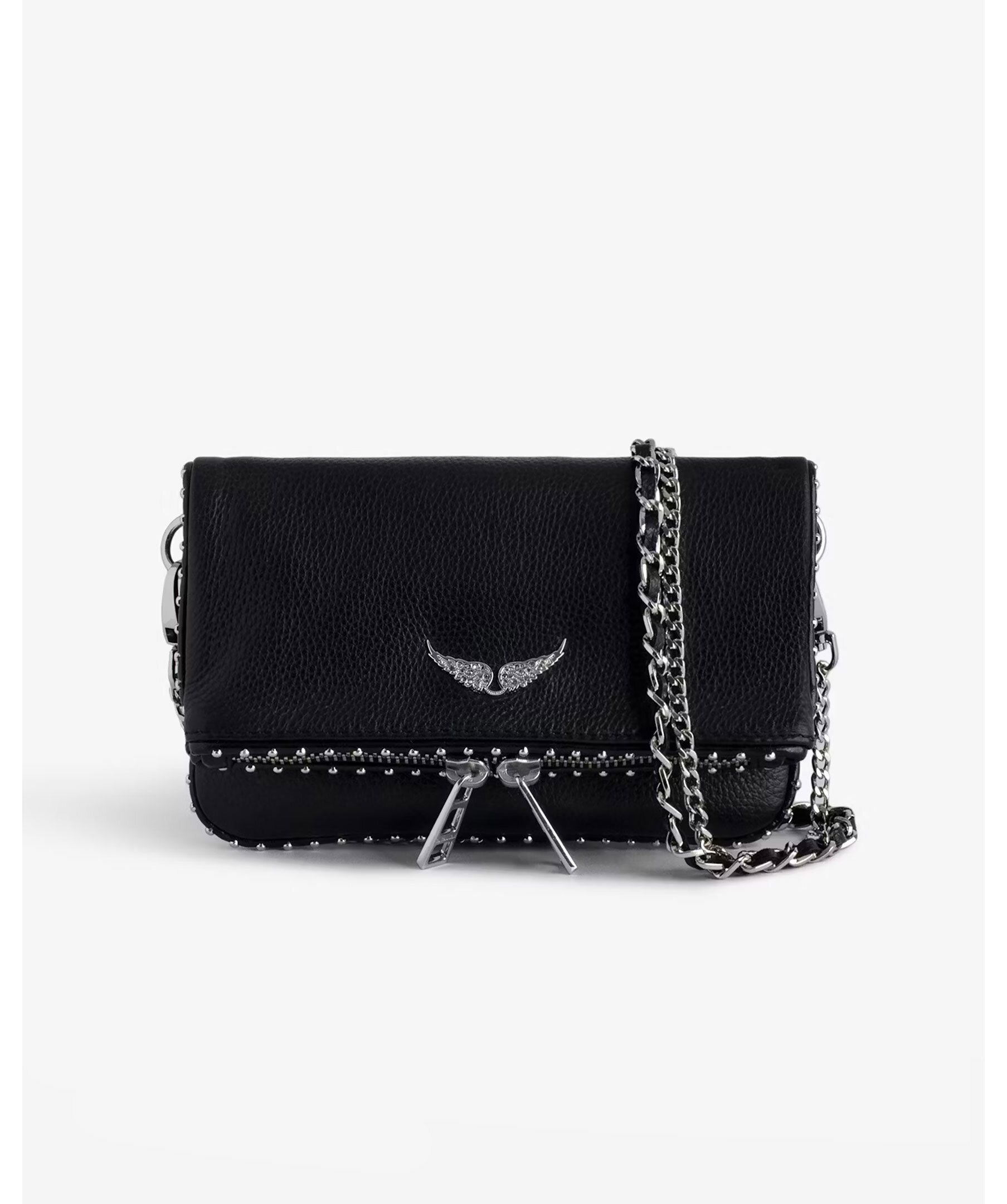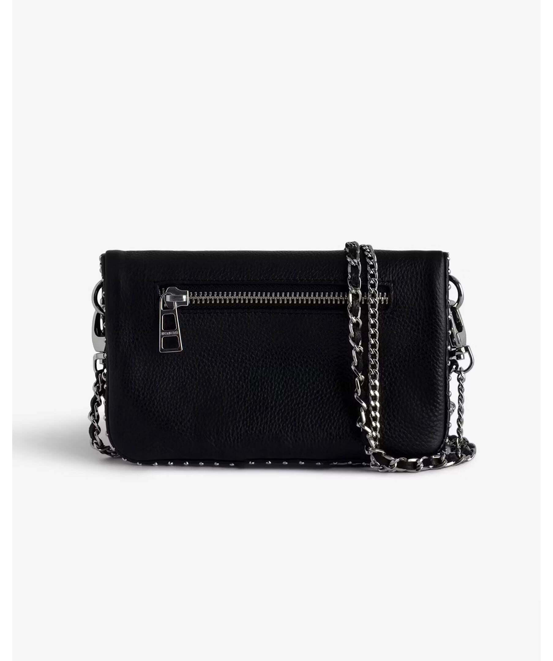 Svart handväska i en rockig stil från Zadig Voltaire med nitar längs kanterna. Väskan har två fickor med dragkedja, flik med magnetisk stängning, avtagbara dubbla kedjor i läder och metall samt logotyp i metall framtill. Kan bäras som handväska, axelväska eller crossbody-väska. Mått: 19 cm x 11cm. Kedjeremmens höjd: 21 cm och 61 cm.