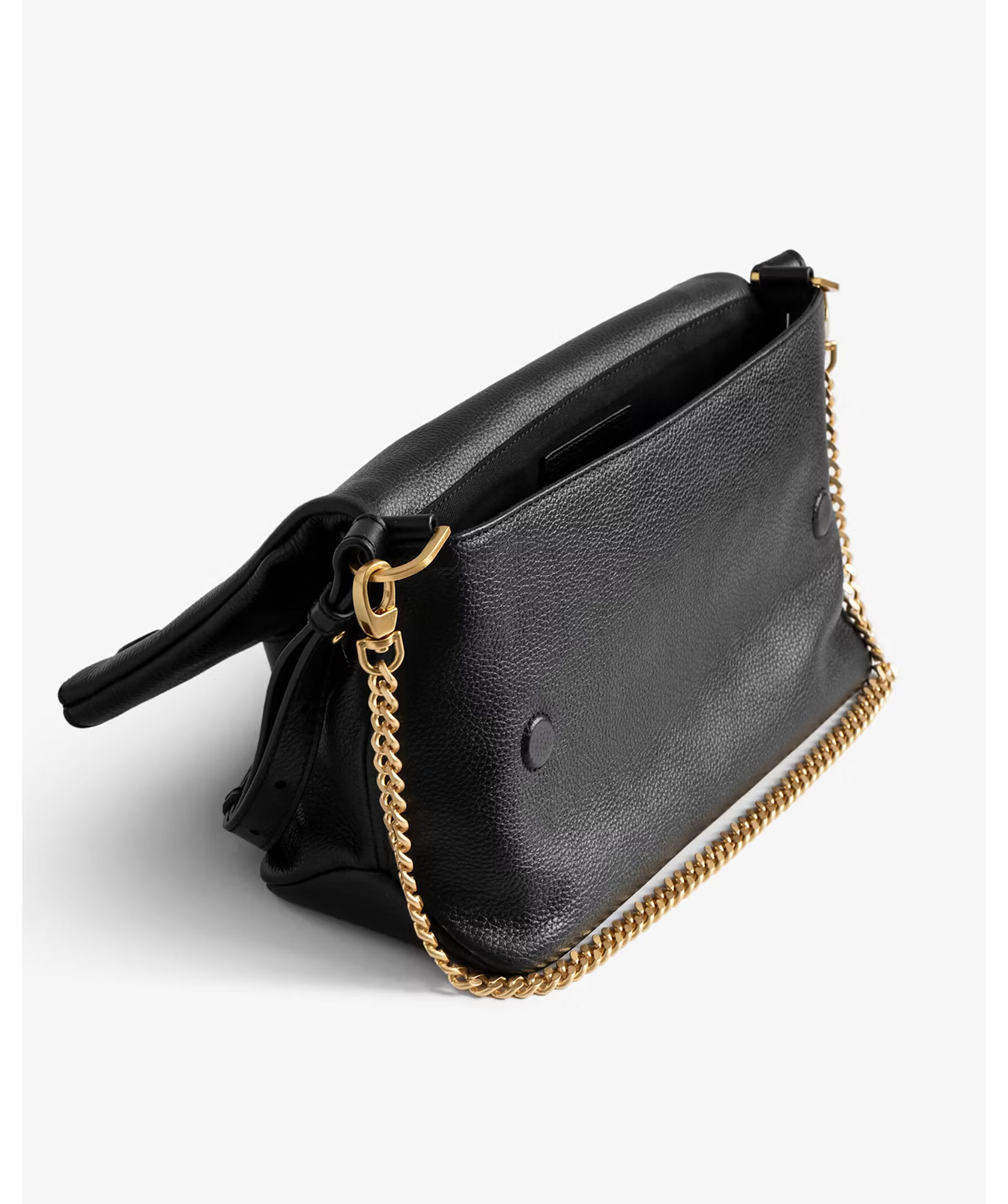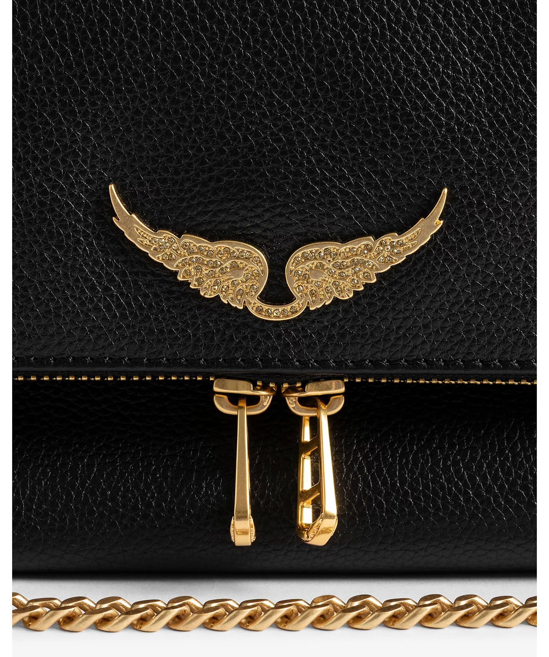 Svart väska i narvat läder med guldfärgade detaljer från Zadig Voltaire. Väskan har justerbar och avtagbar axelrem i läder, avtagbar kedja i metall, dragkedja och magnetisk stängning, platt bakficka med magnetisk stängning, en invändig ficka samt signaturvingar på framsidan. Tillverkad i läder. Mått: 27 x 15 x 10 cm.