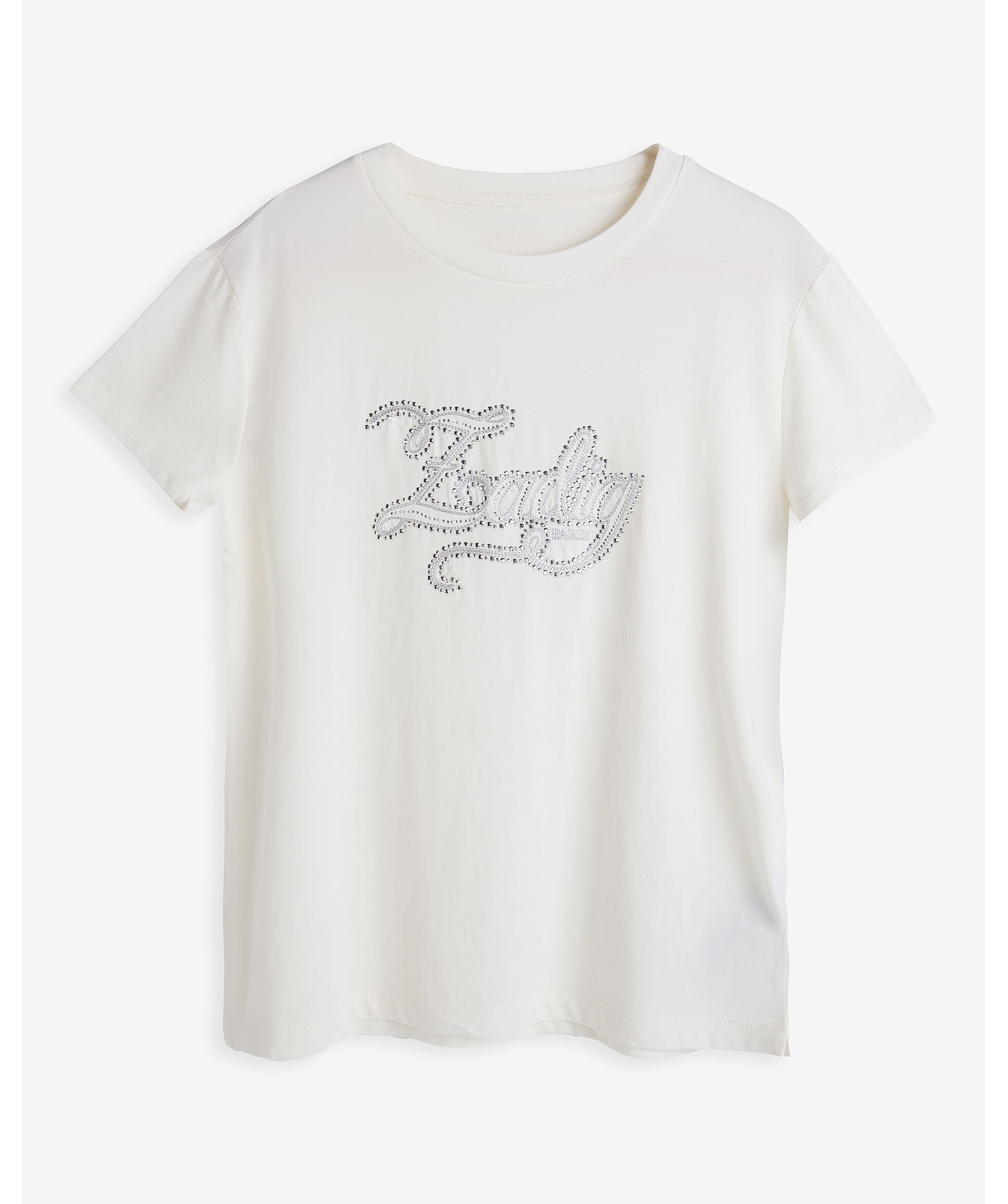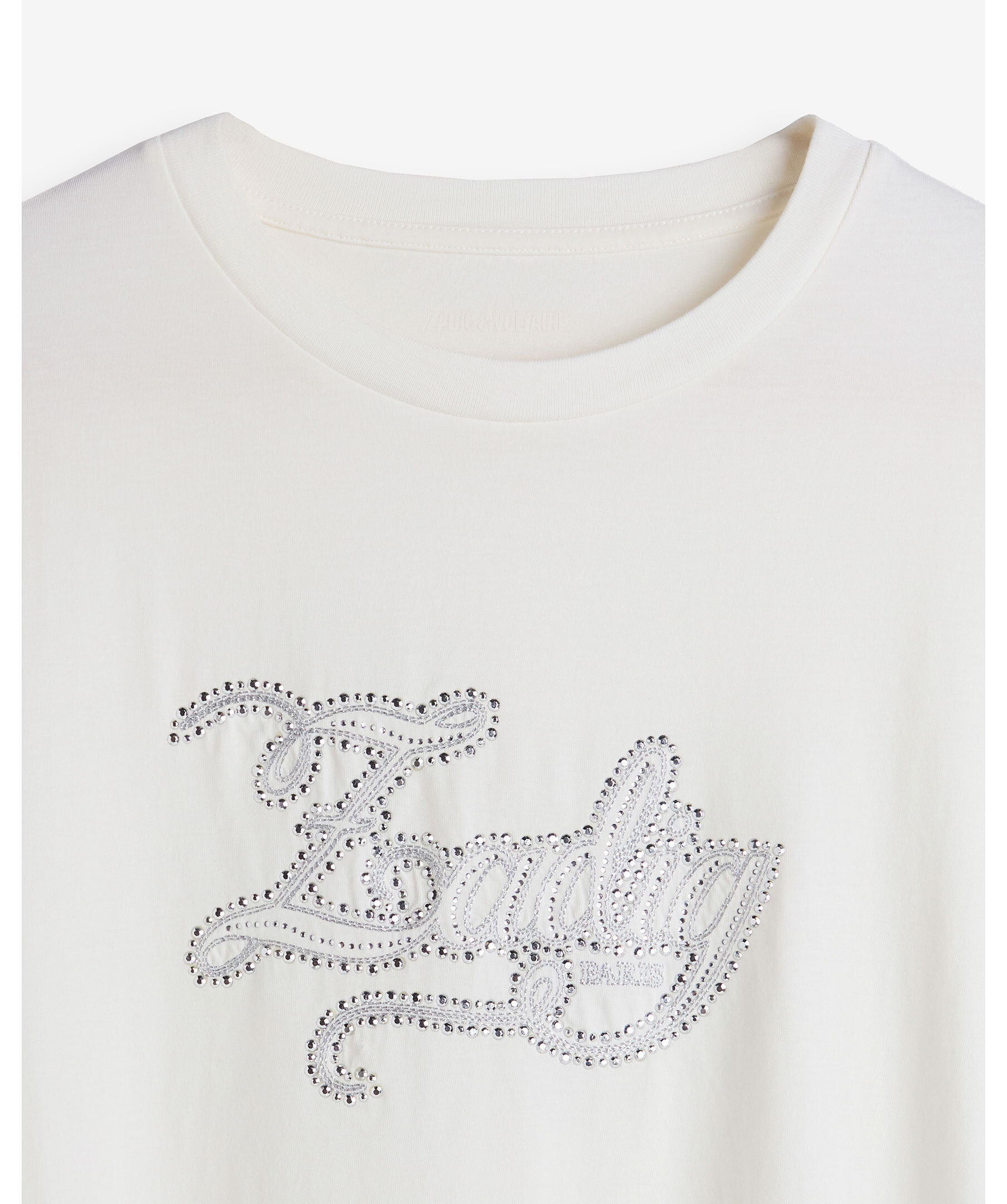 Krämvit t-shirt med logotyp i strass från Zadig Voltaire. T-shirten har rundad halsringning och korta ärmar. Tillverkad i 100% bomull.