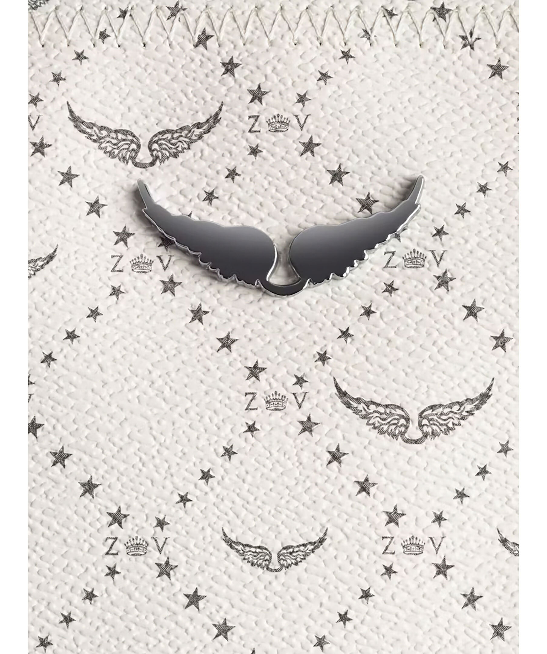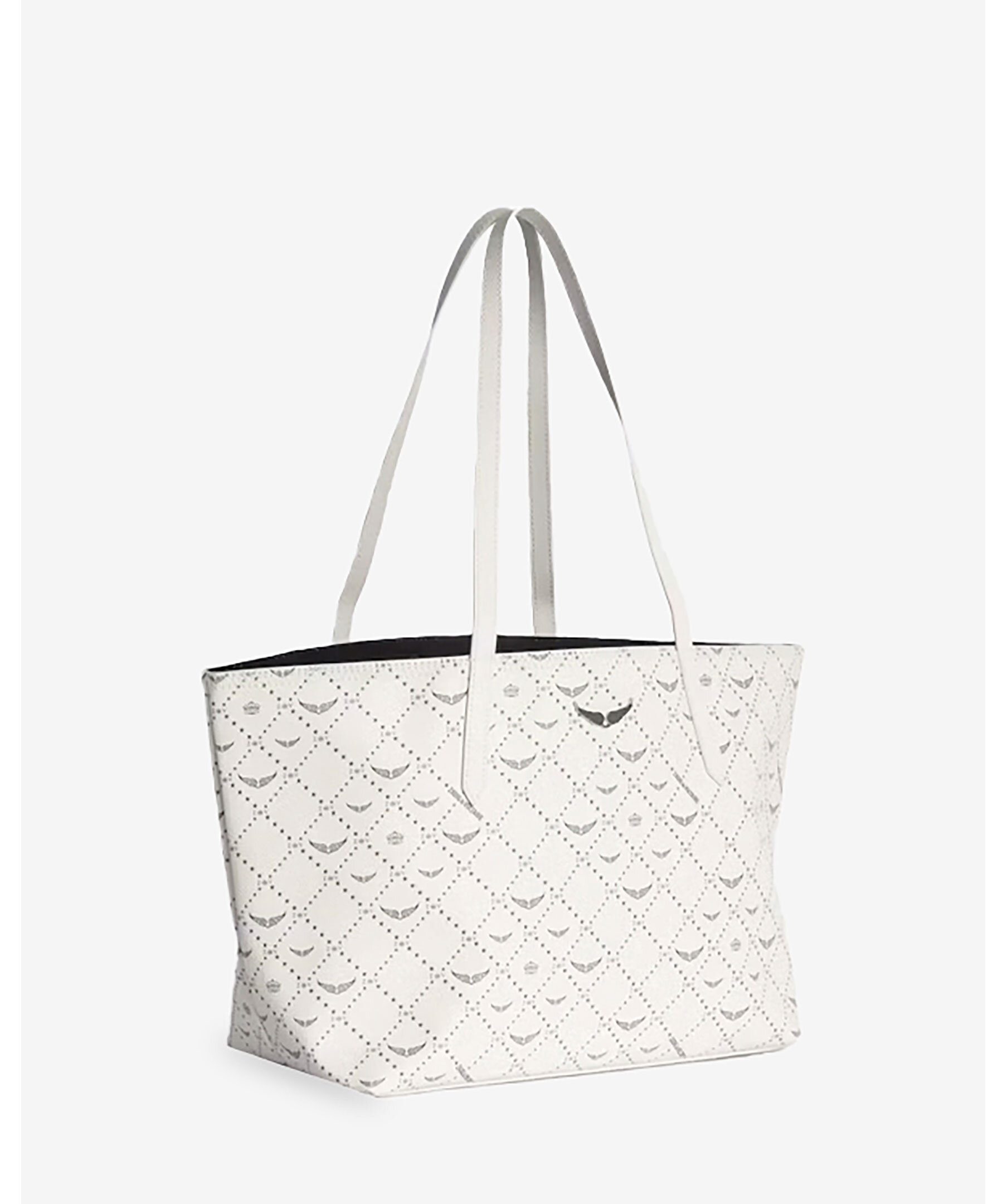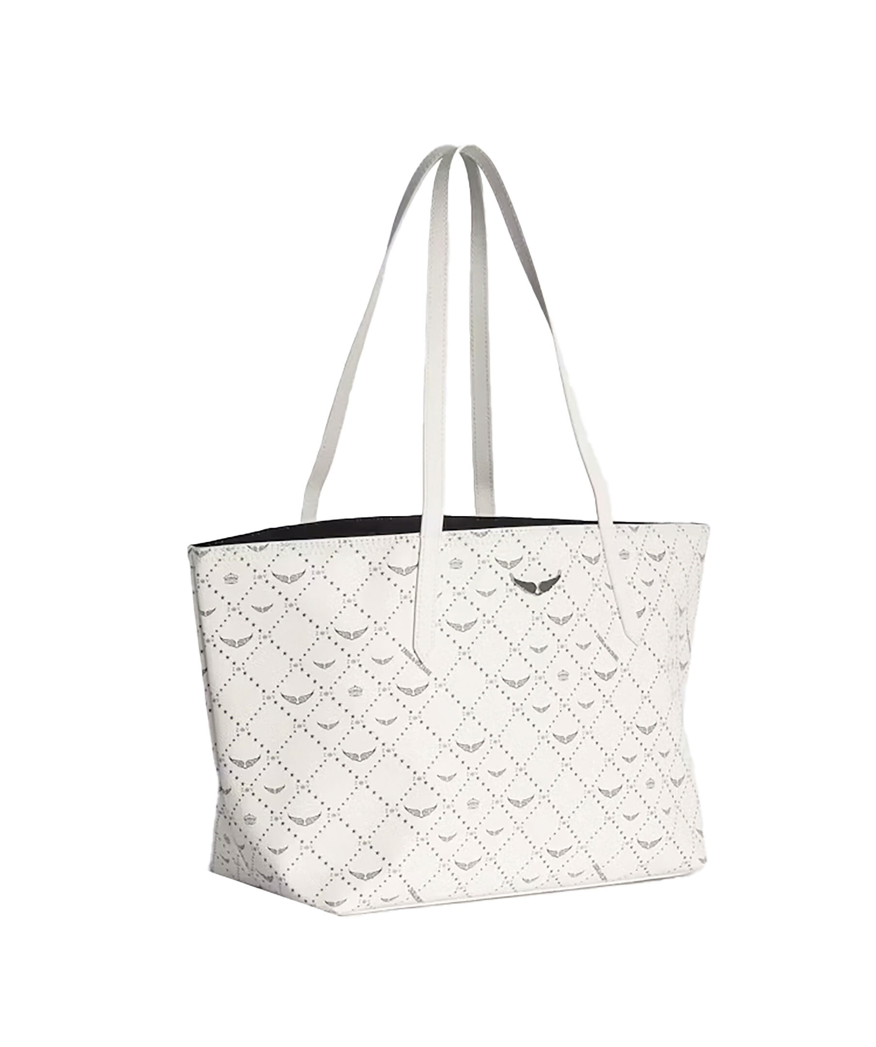 Krämvit tote bag från Zadig Voltaire. Väskan har genomgående monogramtryck, deras ikoniska metallvingar på framsidan. Tillverkad i konstläder. Mått: 44 x 24,5 x 17 cm. Handtagshöjd: 26 cm.
