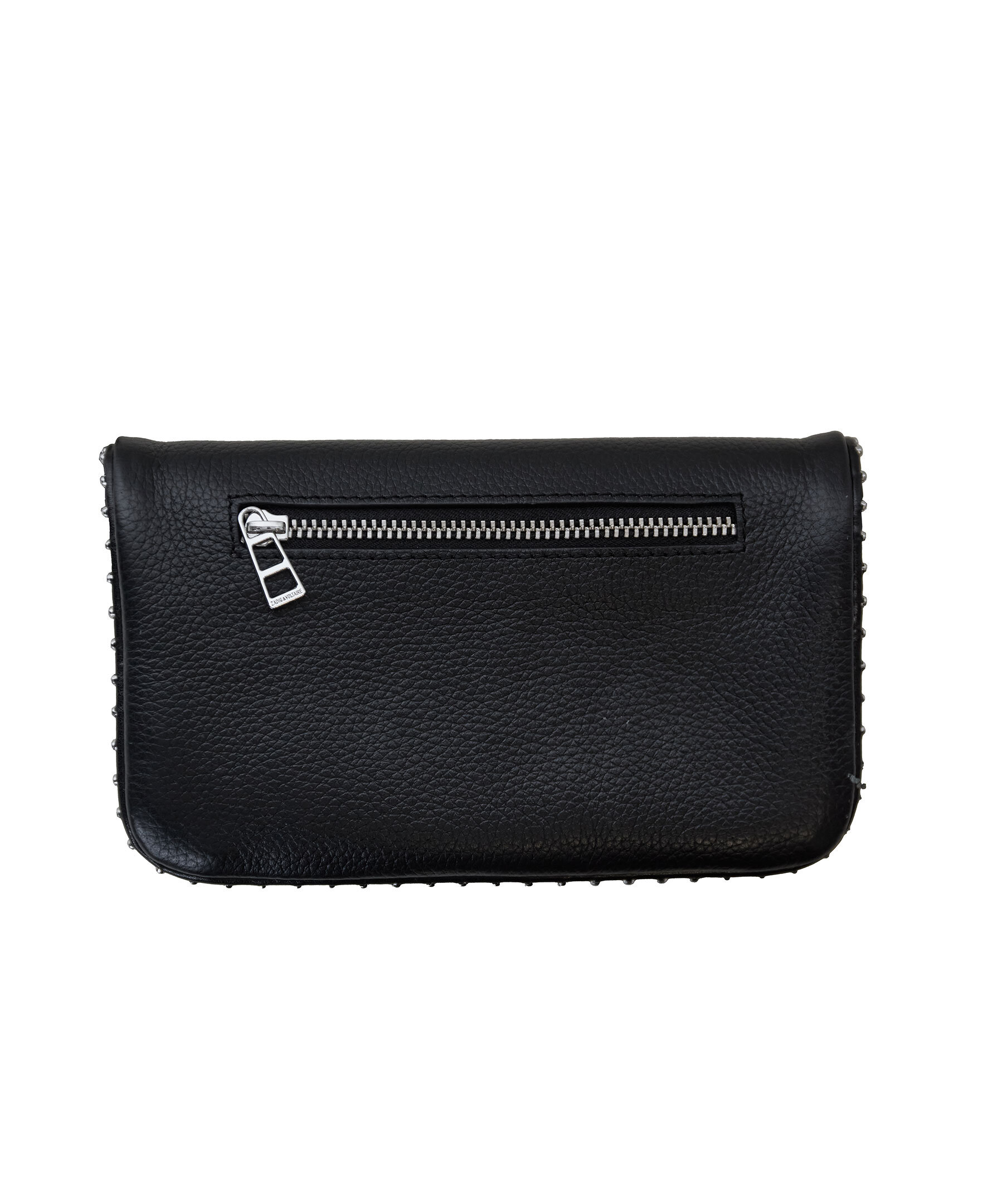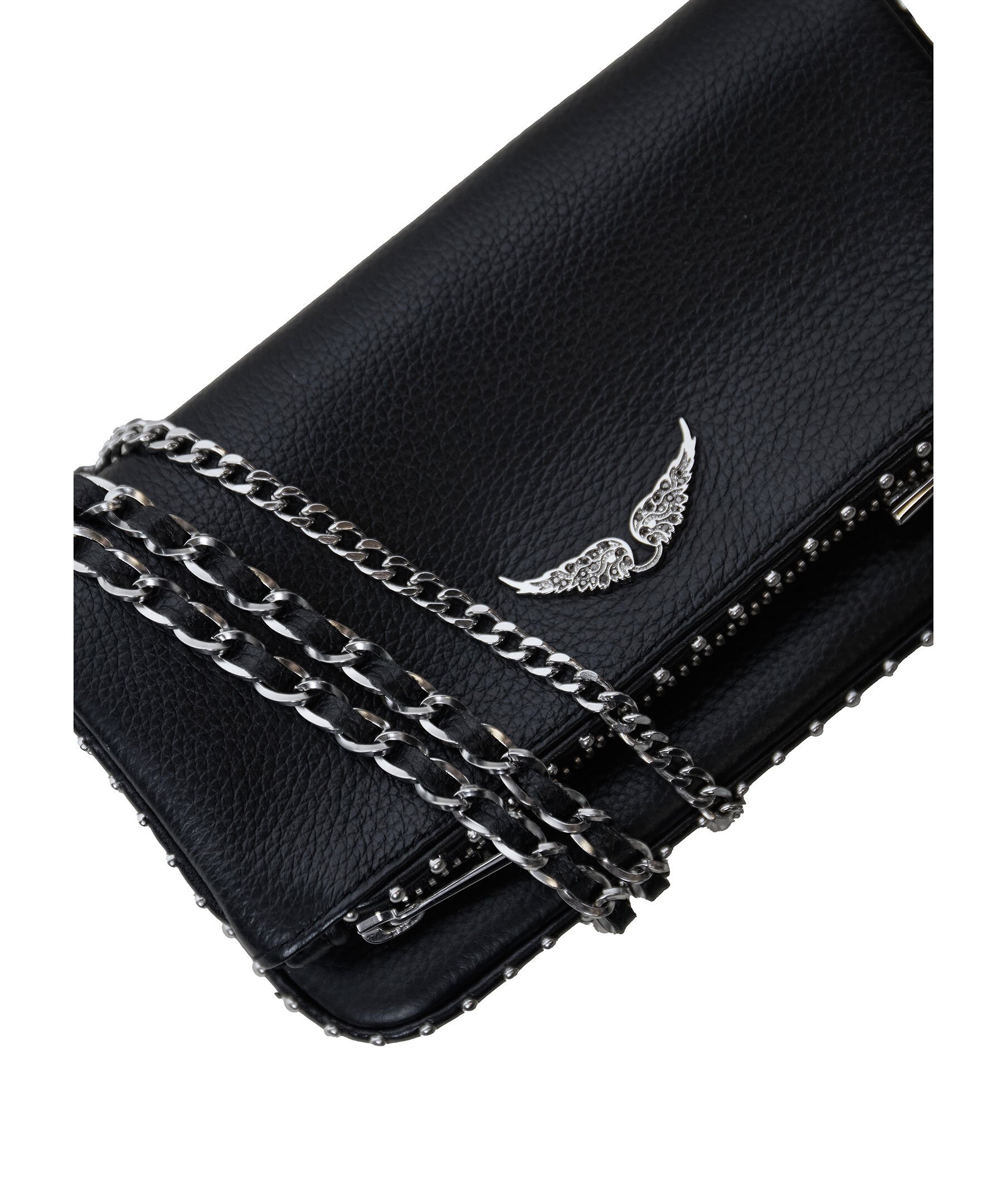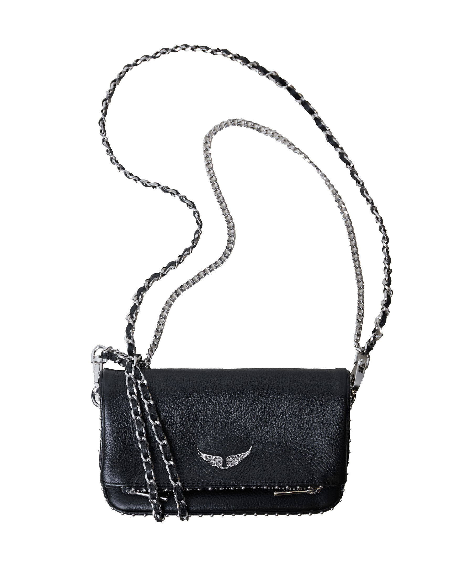 Svart handväska i en rockig stil från Zadig Voltaire. Väskan har två fickor med dragkedja, flik med magnetisk stängning, avtagbara dubbla kedjor i läder och metall samt logotyp i metall framtill. Kan bäras som handväska, axelväska eller crossbody-väska. Mått: 27cm x 13cm.