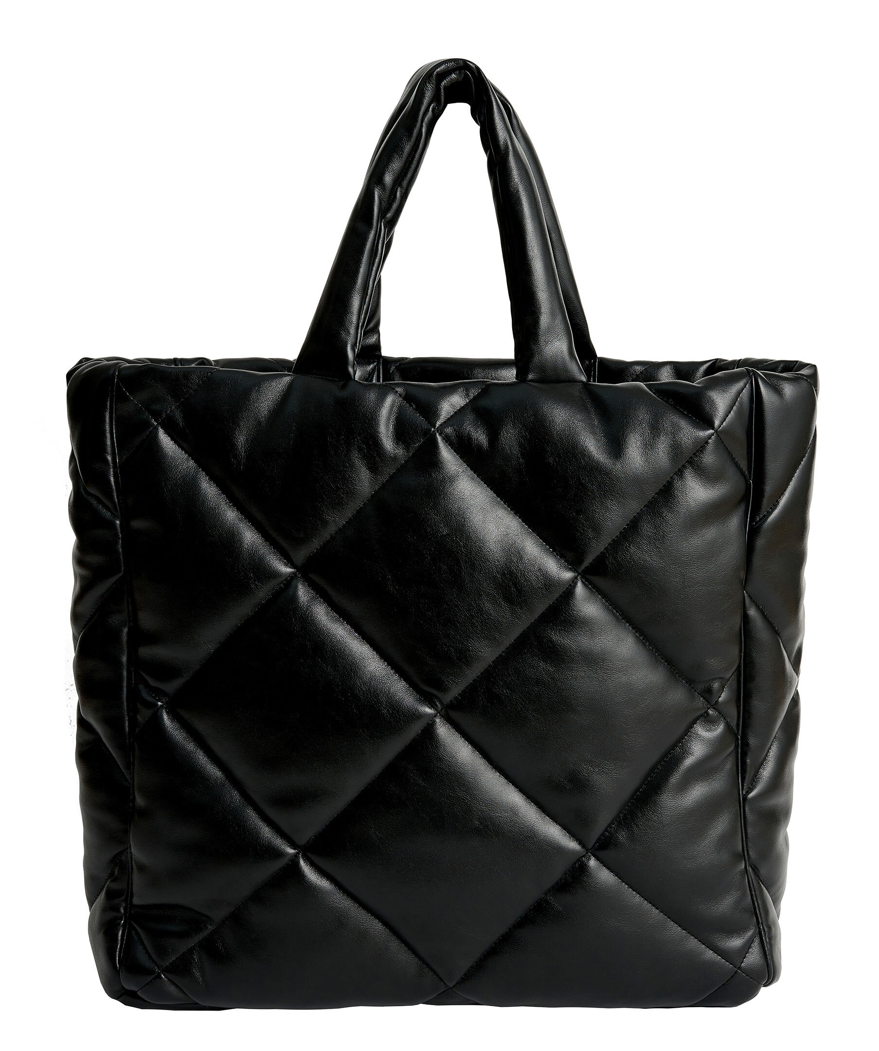 Svart Quiltad totebag i konstläder från Stand Studio. Väskan har fack som stängs med dragkedja.