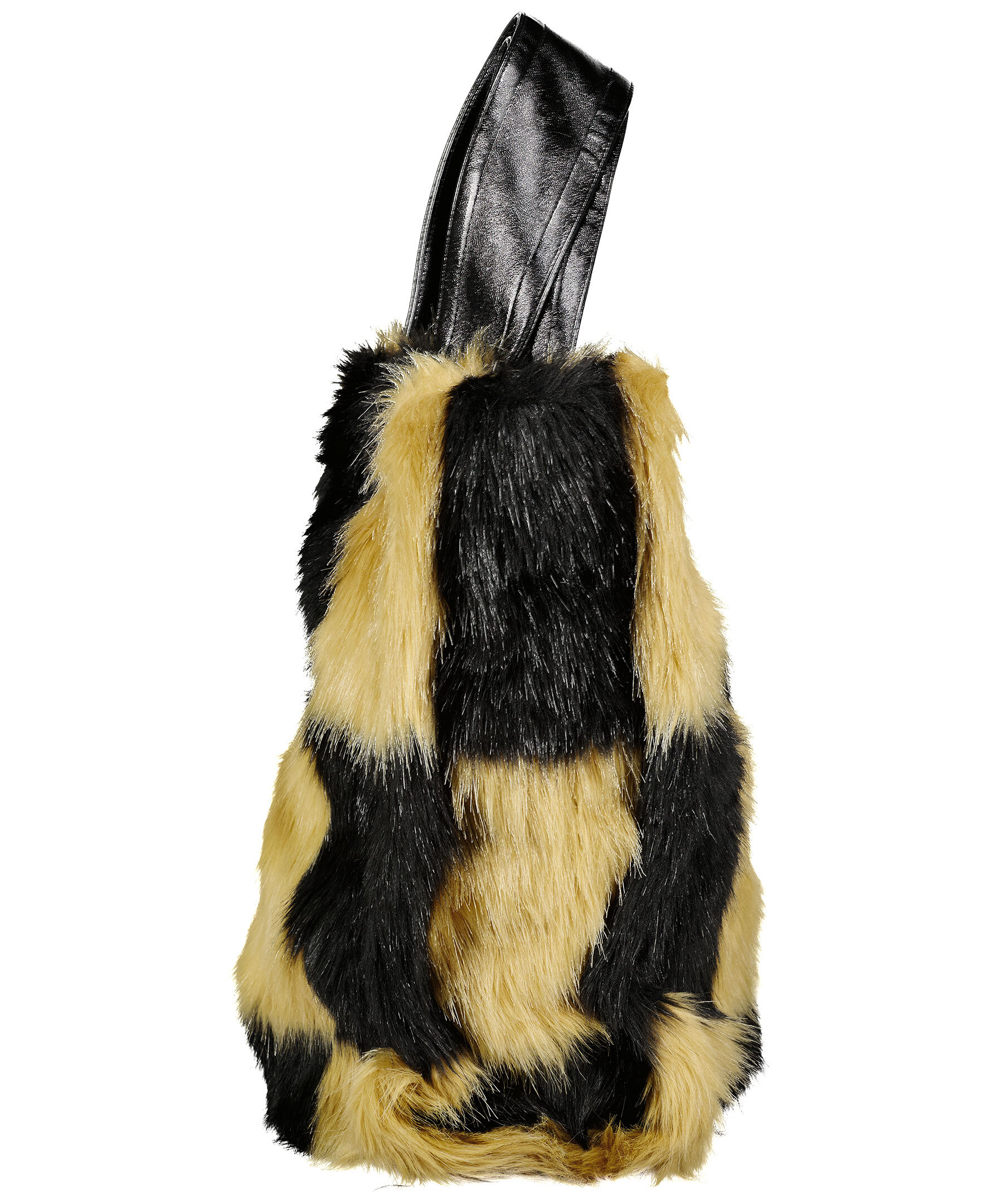 Svart och beige rutig totebag i fuskpäls. handtag i konstläder, tillhörande längre rem. Stängs med magnetlås.