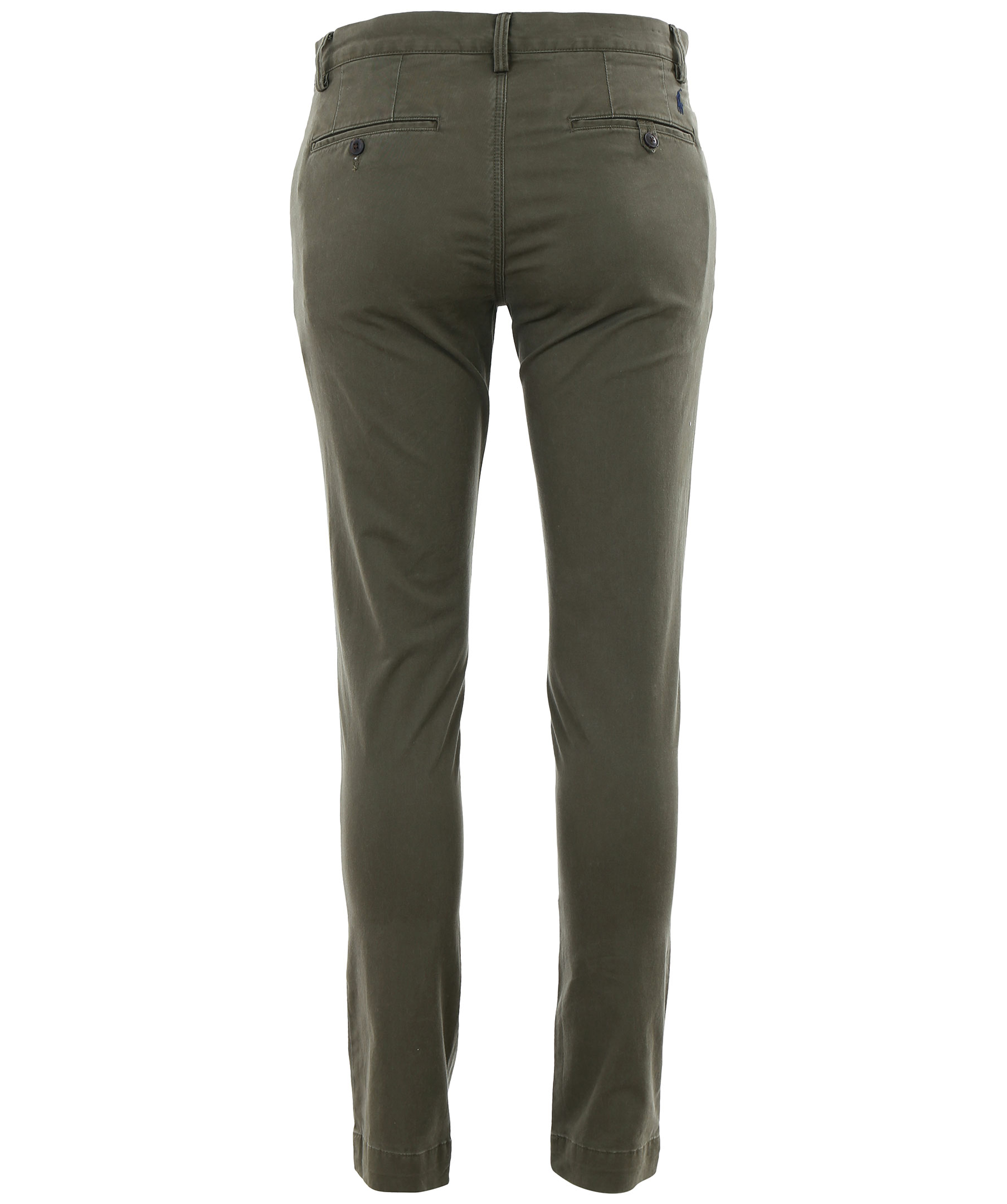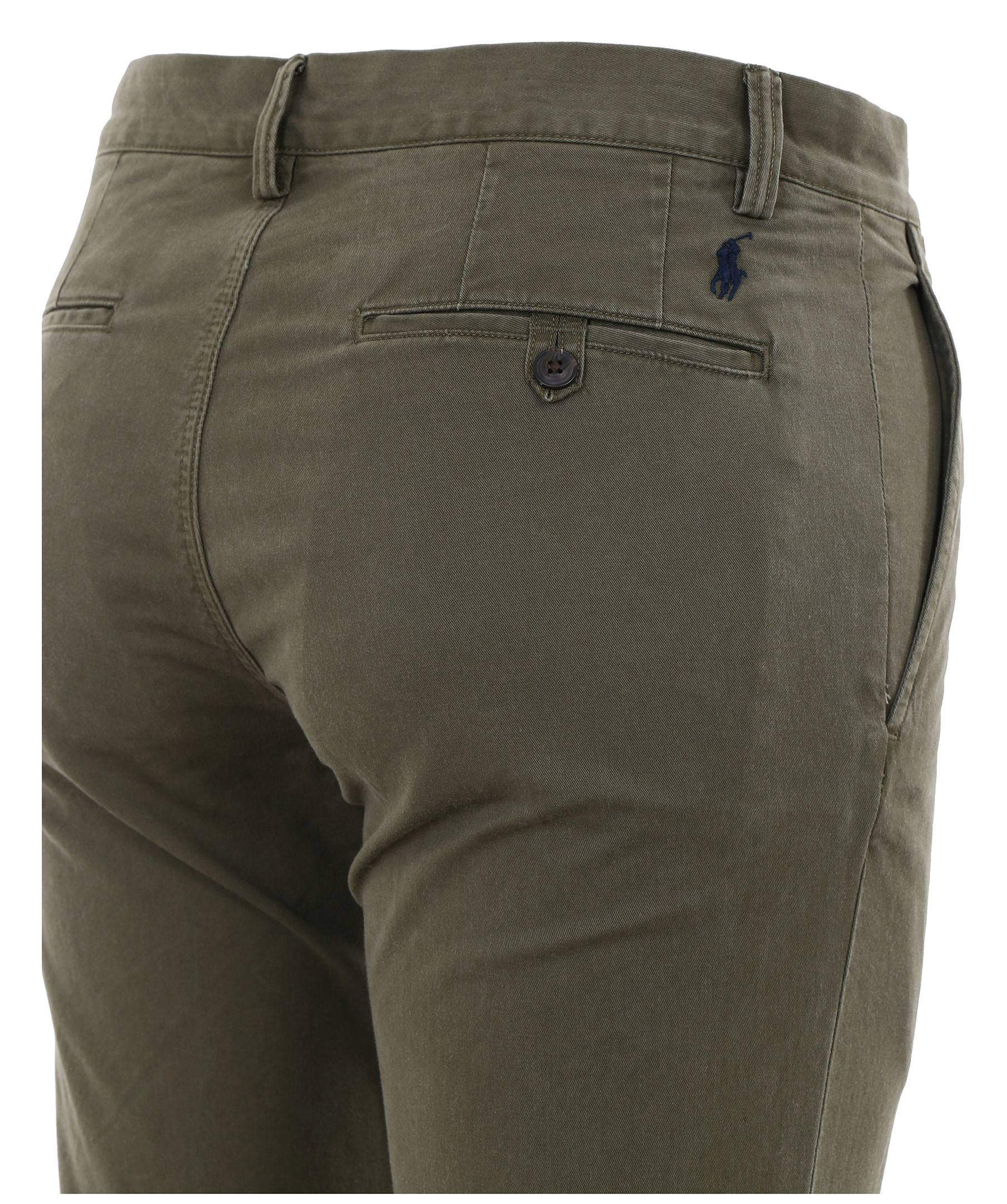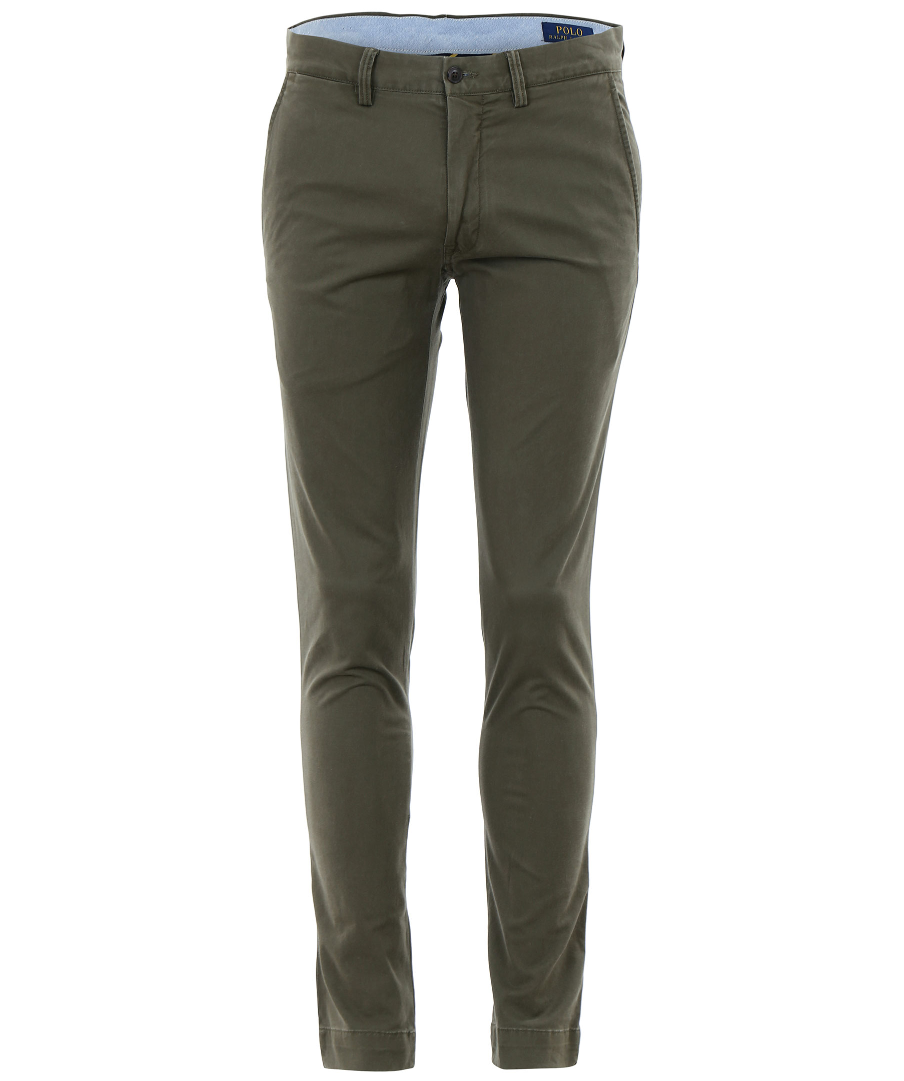 Mörkgröna chinos i bomull från Polo Ralph Lauren i slim fit. Byxan har två snedställda fickor fram och två bakfickor med knappstängning. Gylfen stängs med dragkedja och knäppning i midjan.