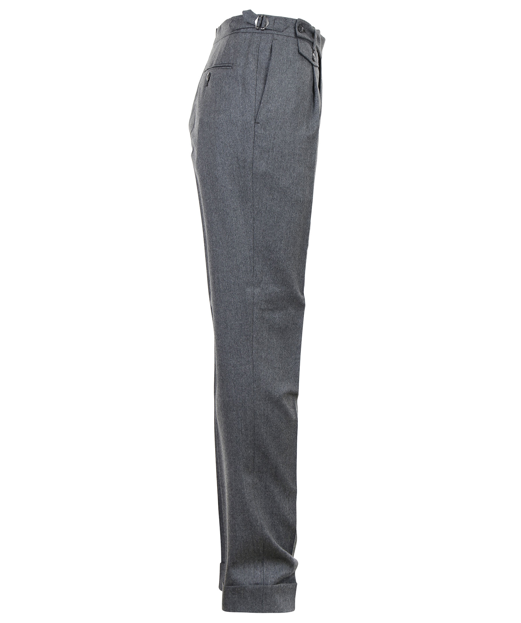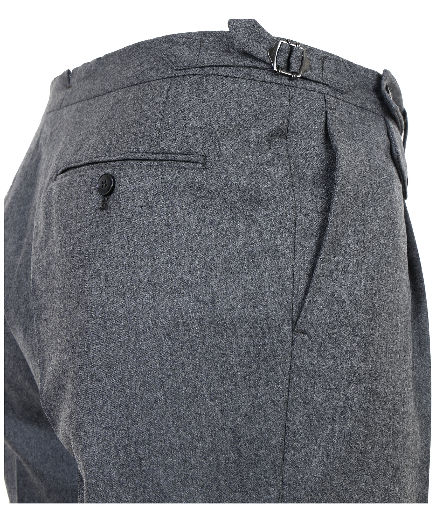 Gråa kostymbyxor från Morris Heritage. Gjorda i 100% ull. Byxorna är uppvikta vid fotkant, stängs med två knappar och dragkedja vid gylfen. Två öppna sidofickor och två bakfickor med knapp. Spännen på sidorna.