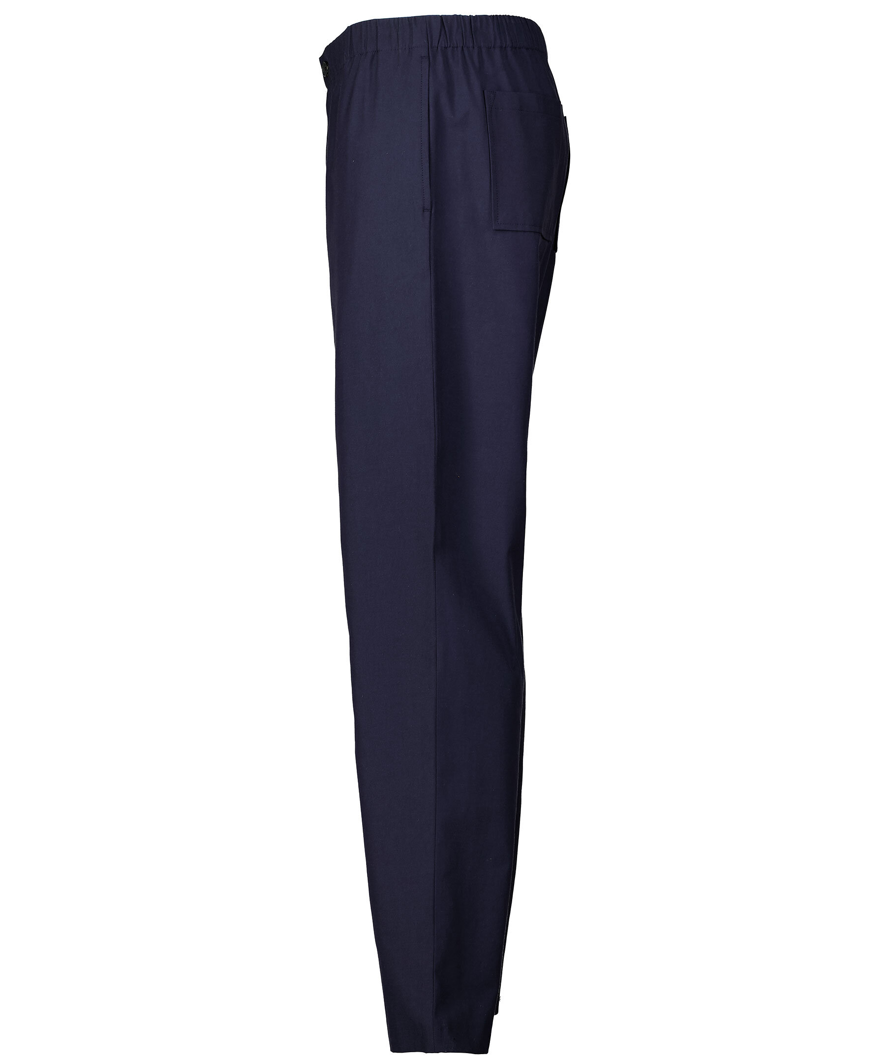 Marinblå byxor från Kenzo. Avsmalnade ben, resår i midjan, dold gylf med dragkedja och knapp. Byxorna har två framfickor och två bakfickor. Liten broderad logotyp vid ena framfickan. *Triacetatblandning *Fyra fickor *Resår i midja