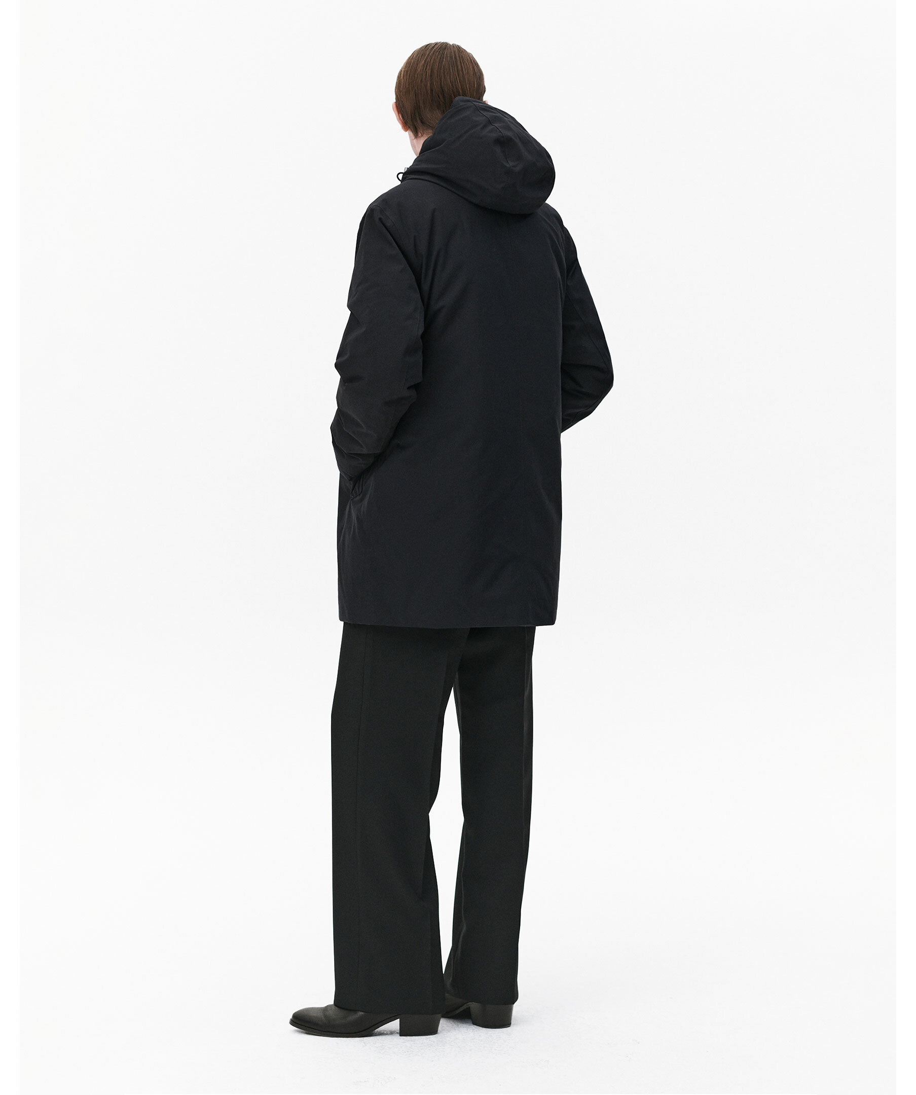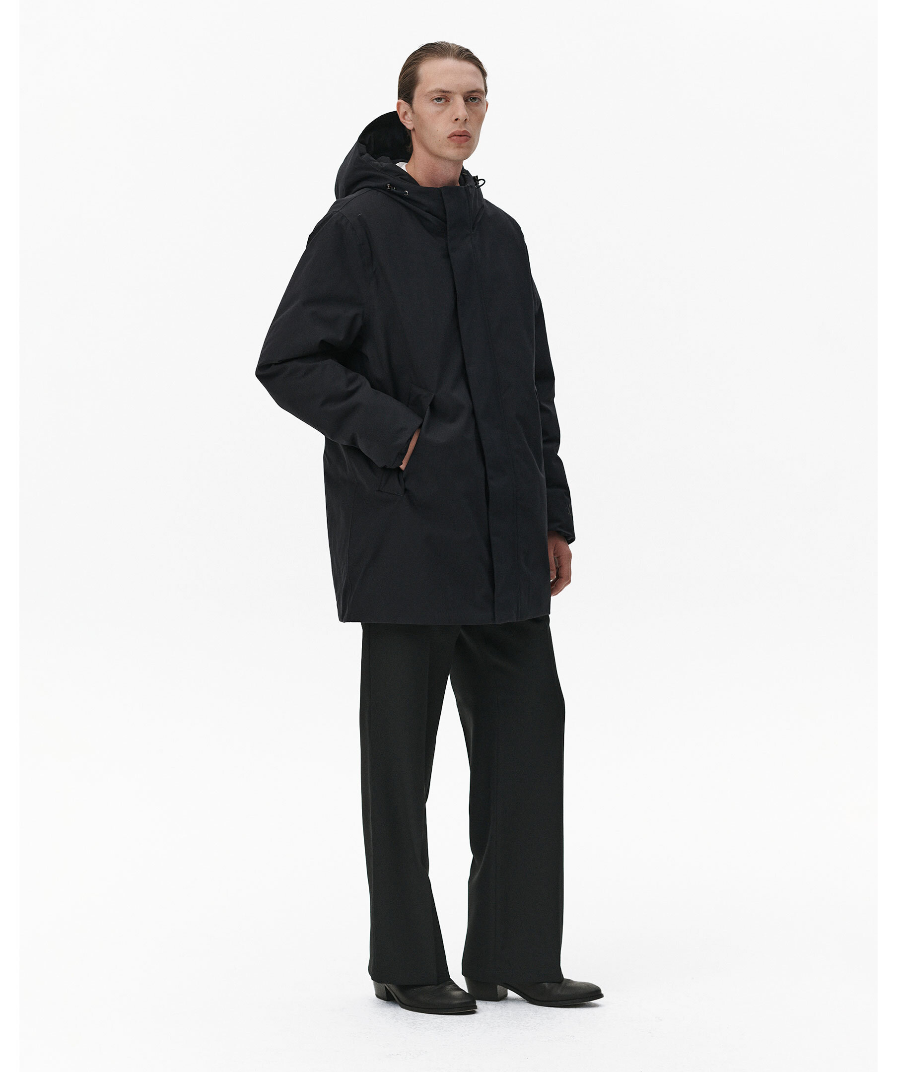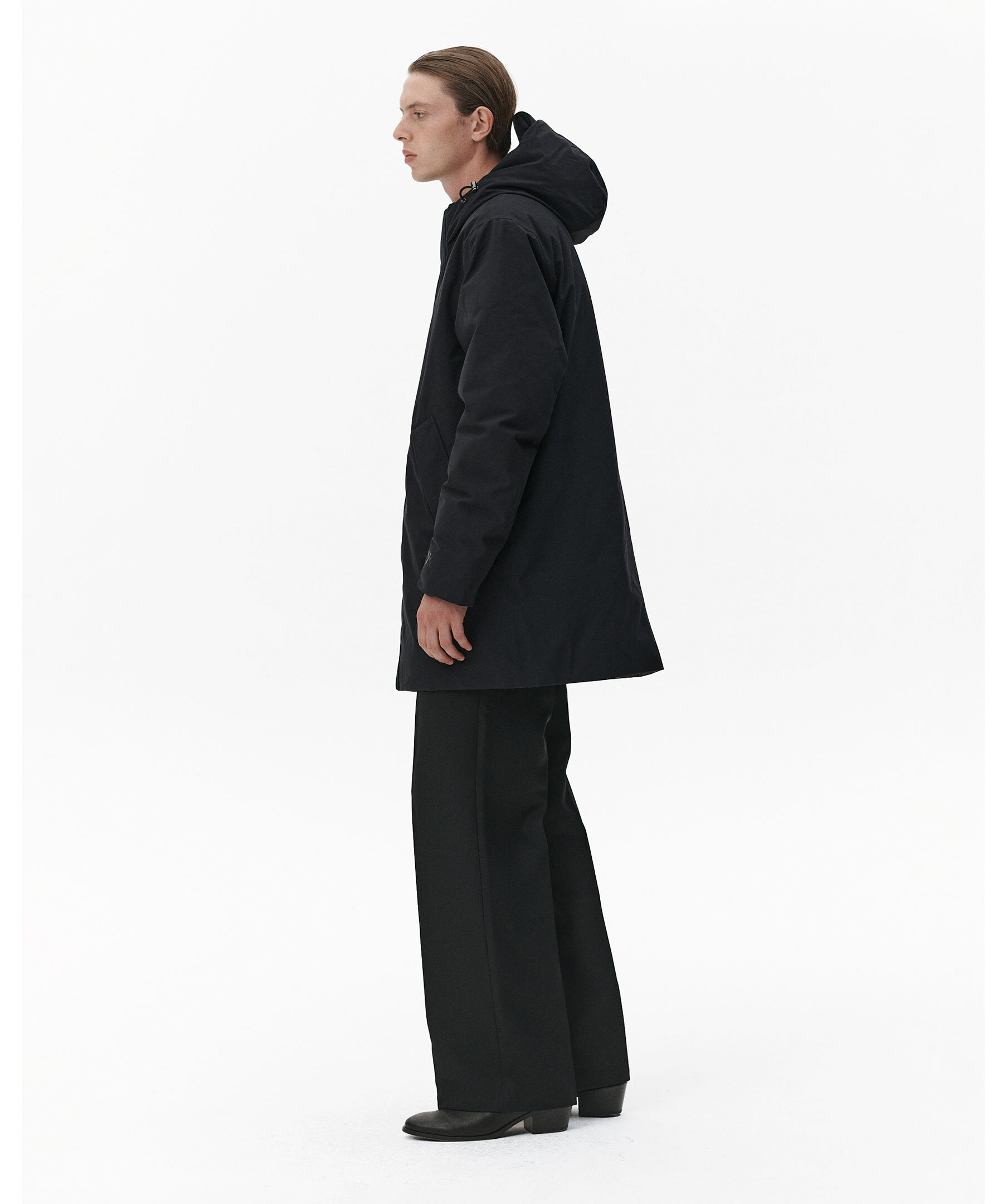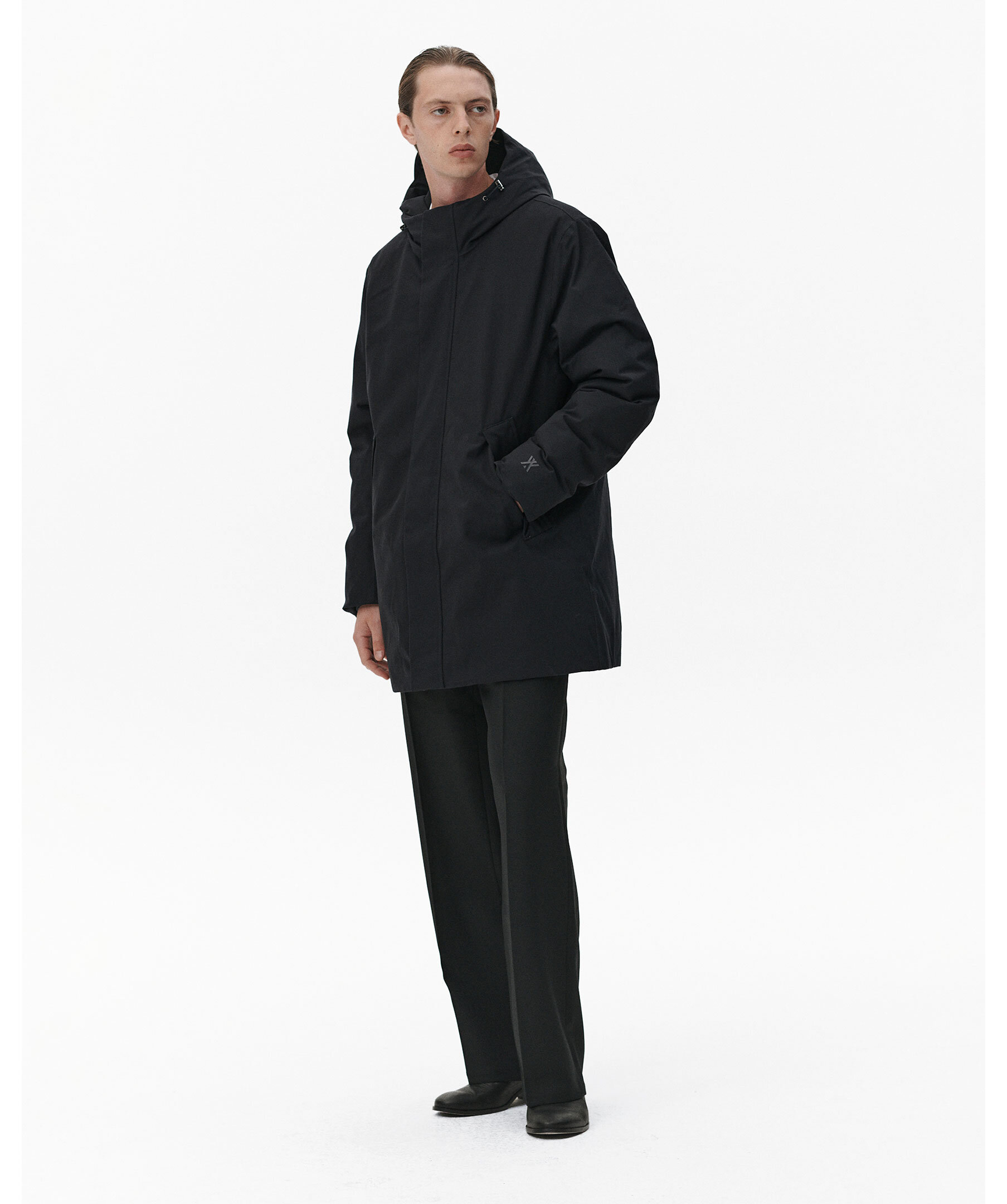 Marinblå stilren vinterjacka i polyrayon med ullkänsla från Welter Shelter, fylld dun och fjädrar. Den erbjuder en imponerande vattentålighet på 20 000 mm och andas 10 000 g/m², vilket gör den idealisk för kalla, regniga dagar. Jackan är designad för att klara temperaturer ner till –20 °C och har en avslappnad passform för ökad rörelsefrihet. Detaljer som magnetknäppning, dolda sidofickor och en innerficka ger både funktion och stil. Sömmarna är tejpade och ytan är behandlad med PFC-fri DWR för extra skydd.