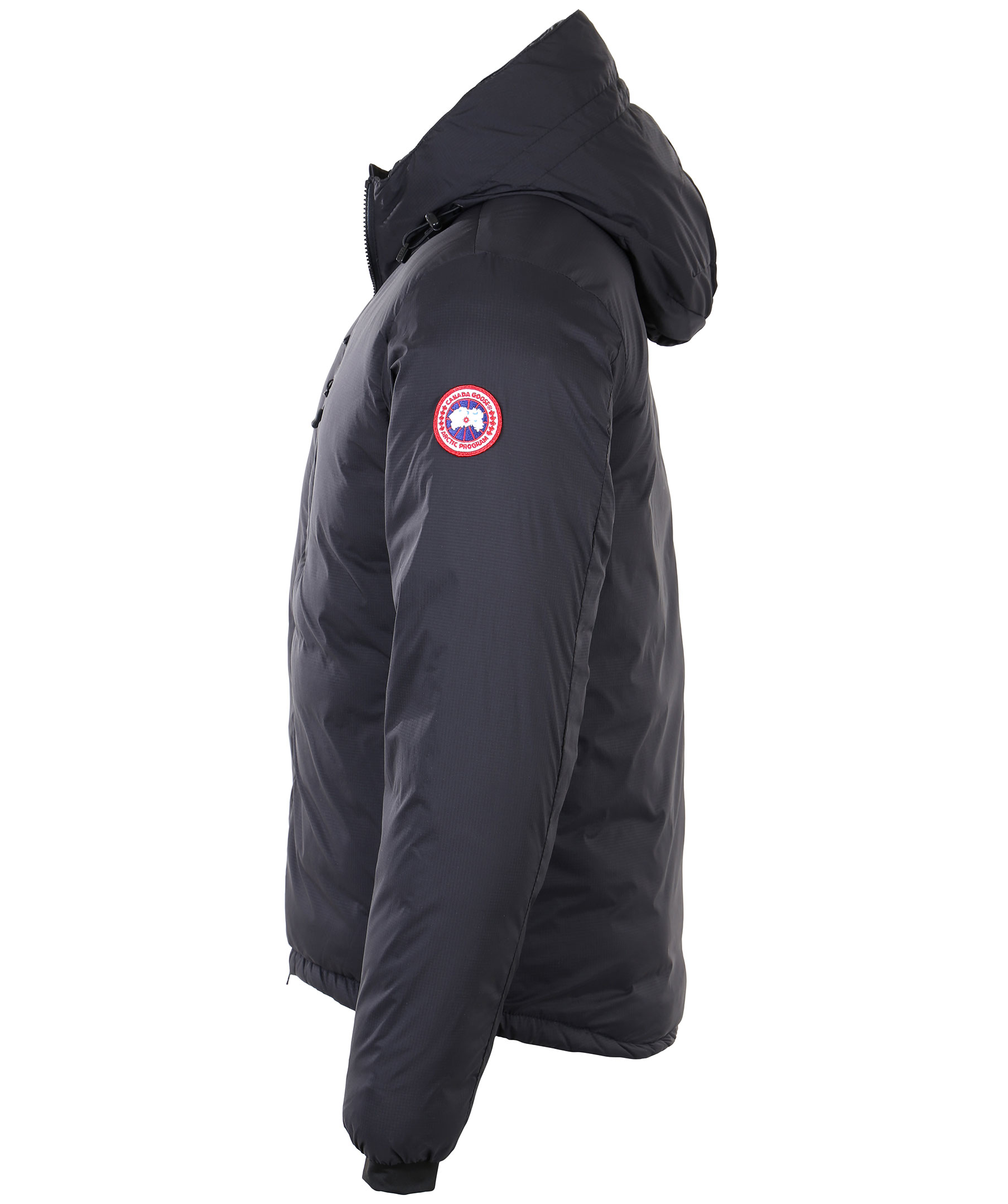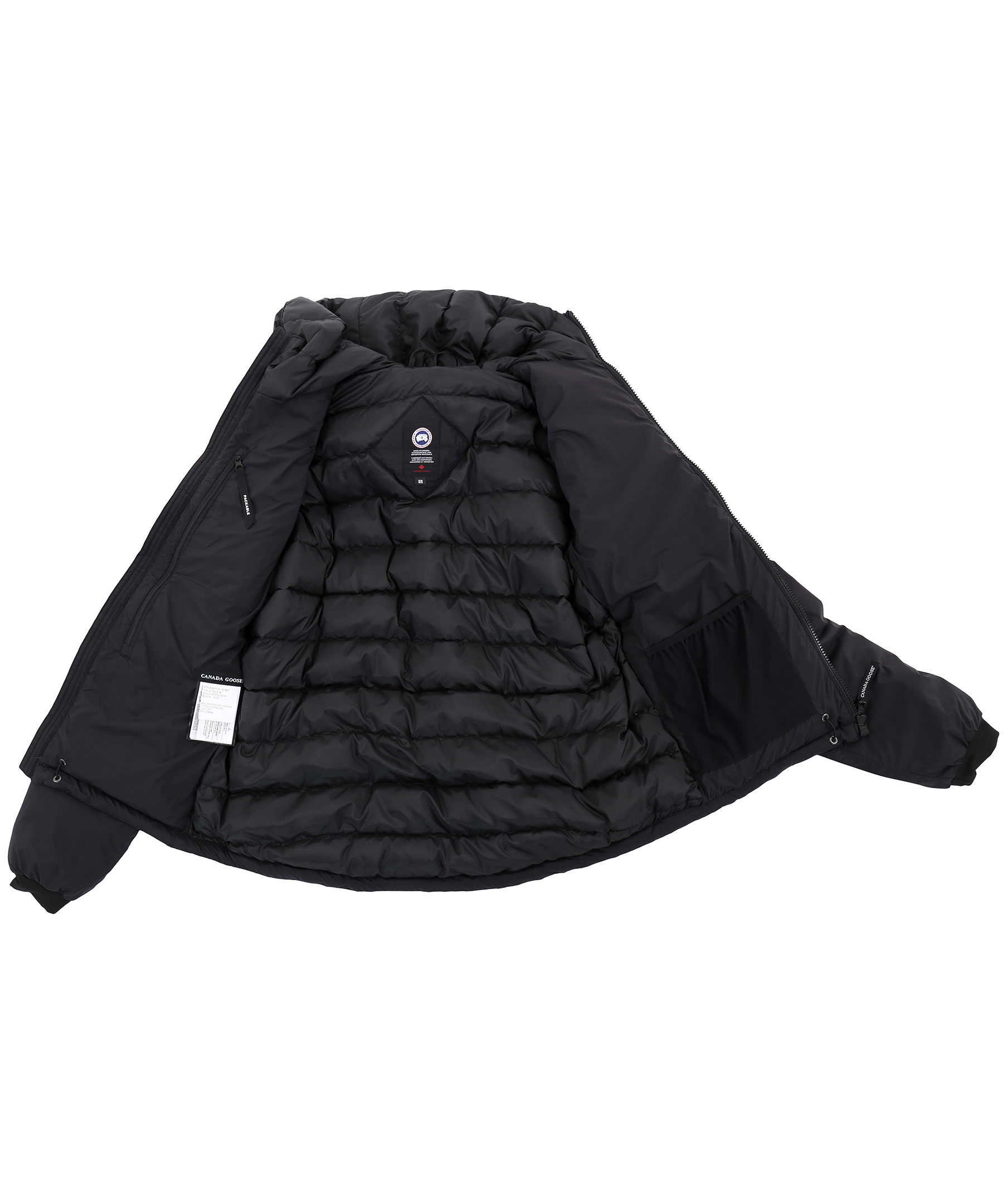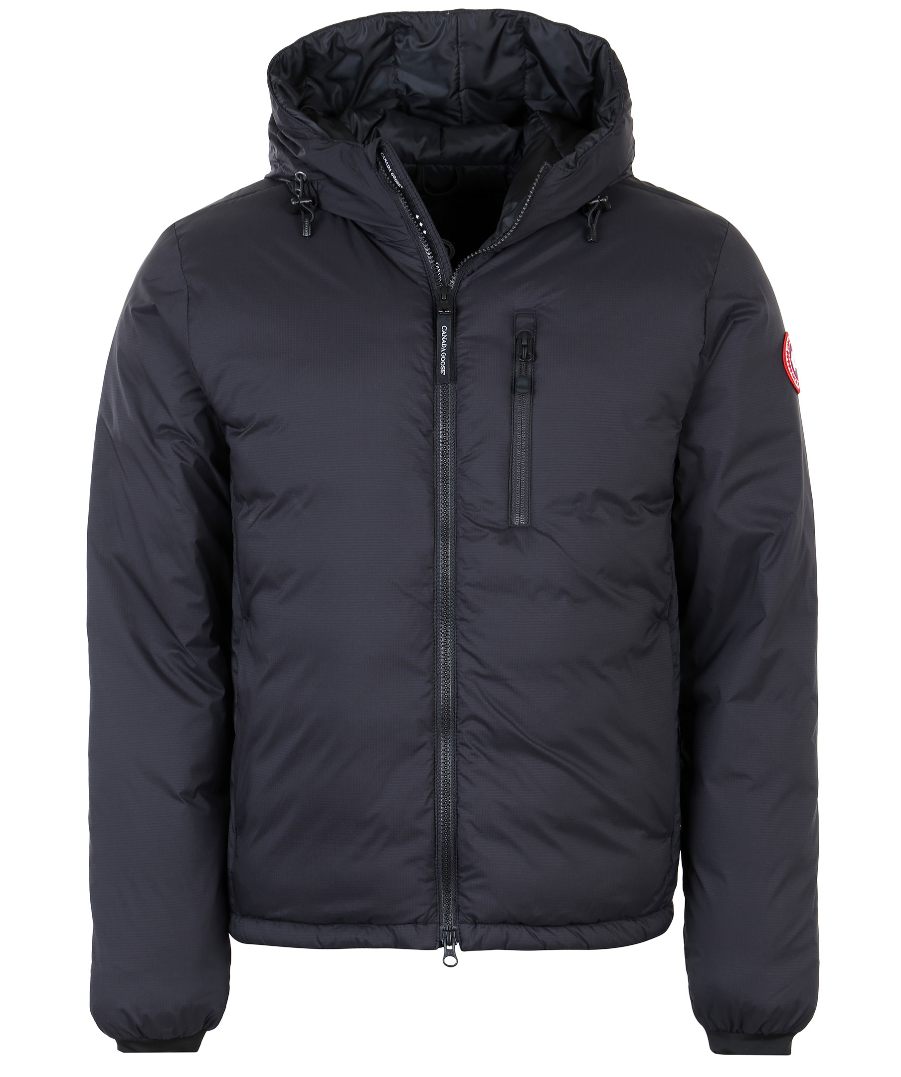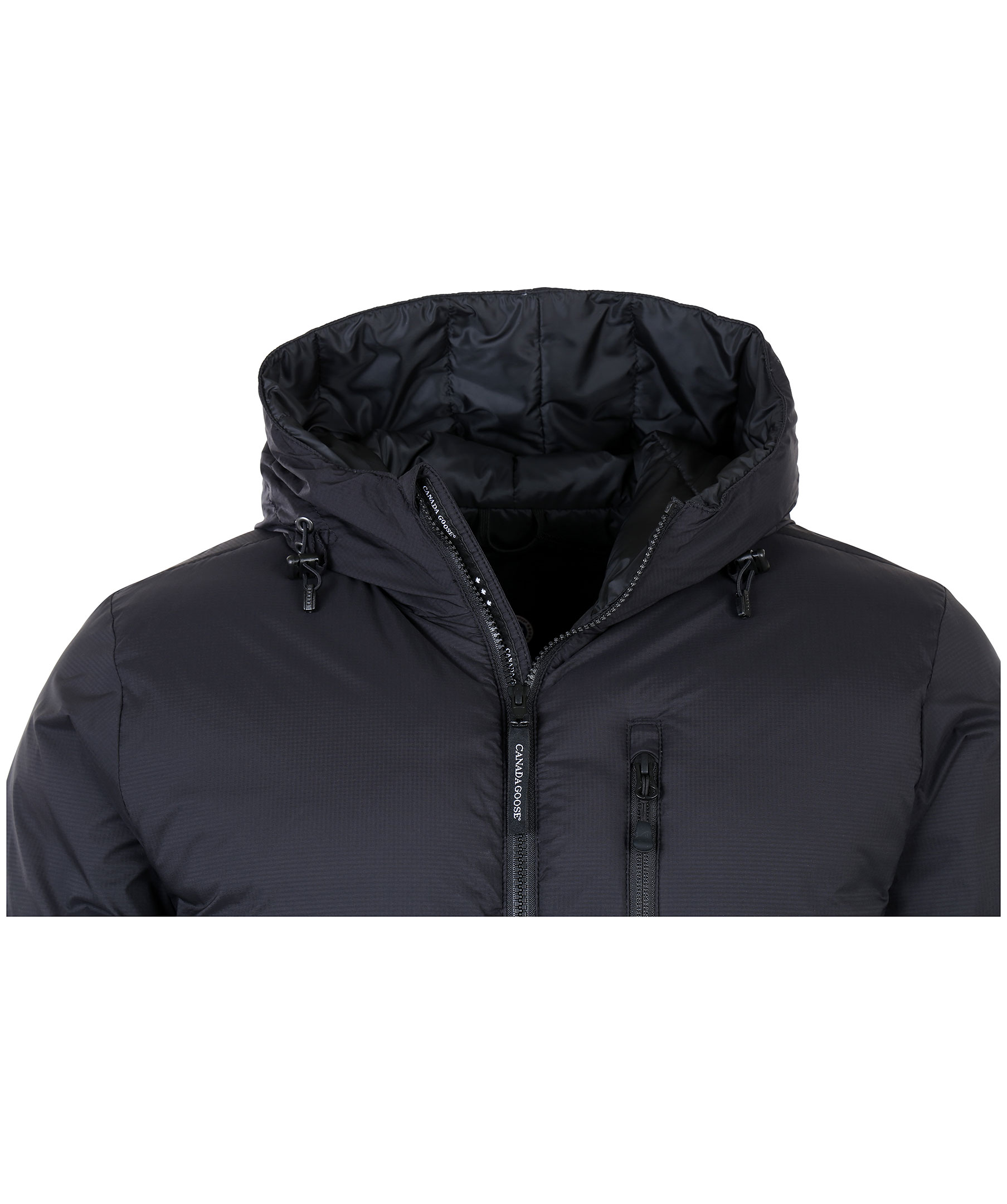 Svart lätt dunjacka med luva från Canada Goose. Dragsko nertill och i luva, sidofickor samt bröstficka med dragkedja samt två innerfickor, varav den stora innerfickan kan användas som en resekudde när jackan packas in i den. Mudd vid ärmslut samt tvåvägsdragkedja. Tillverkad i 100% nylon med fyllning av dun.