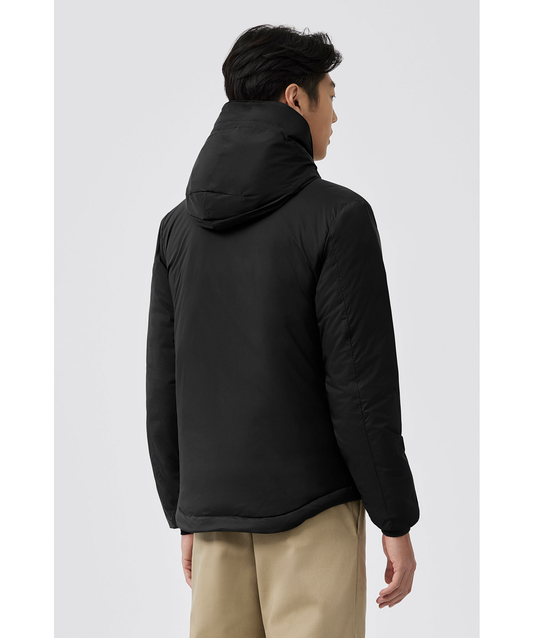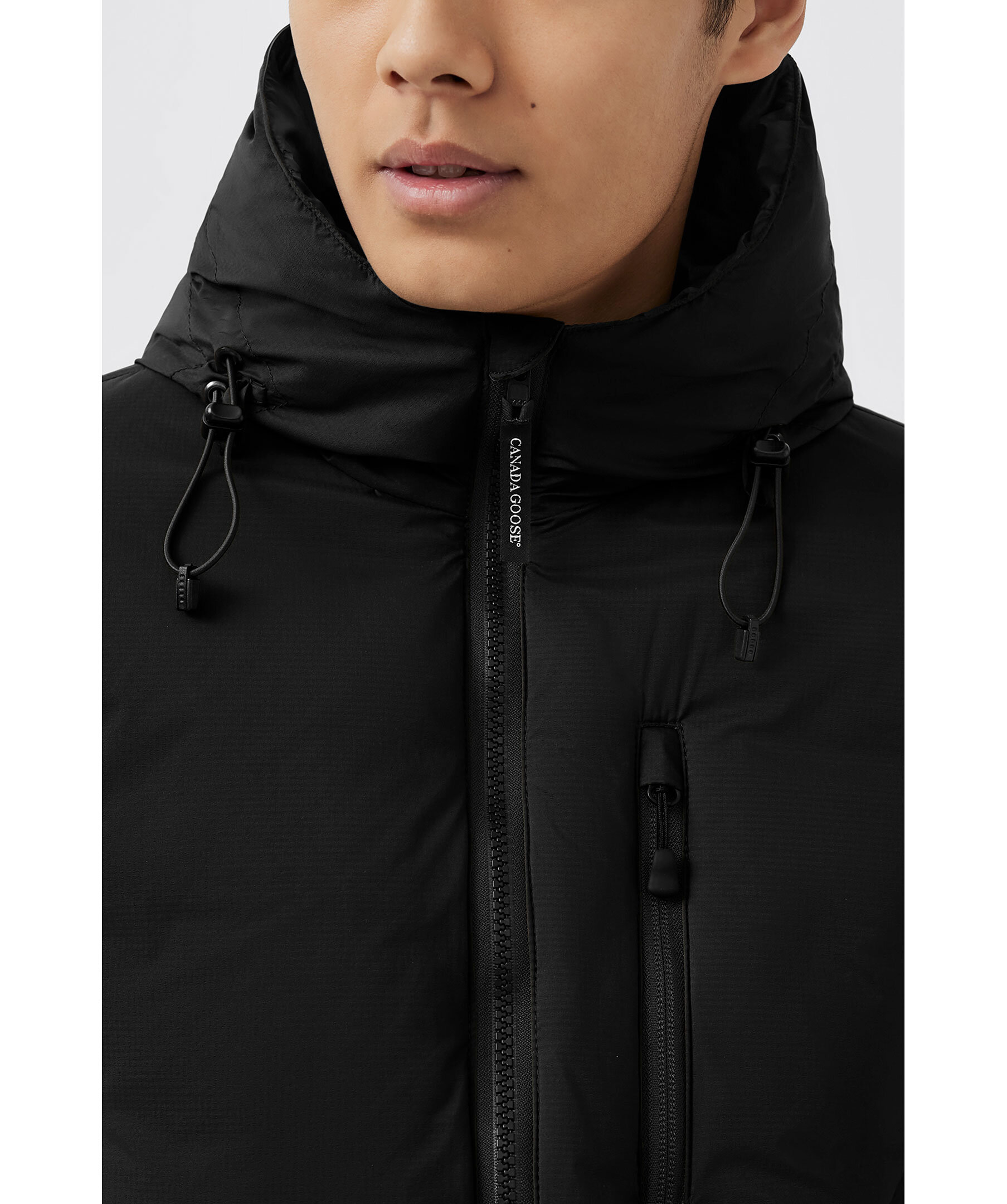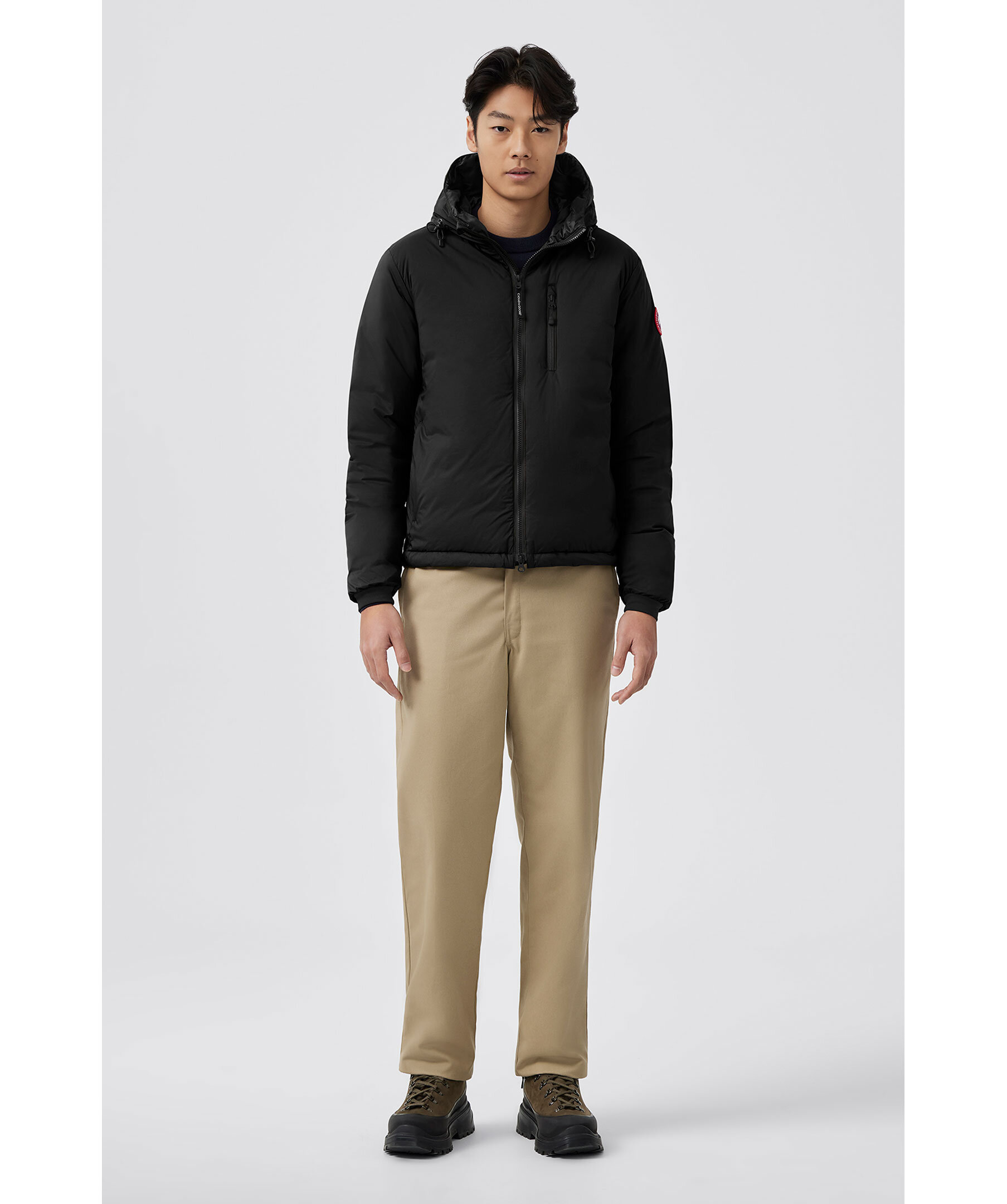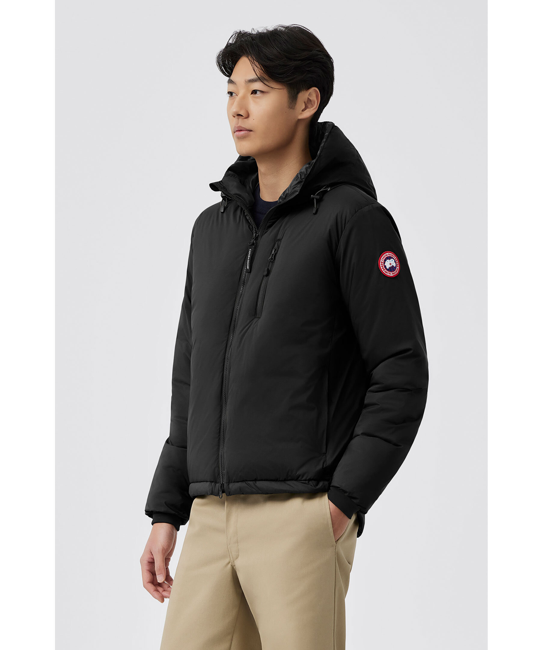 Svart lätt dunjacka med luva från Canada Goose. Dragsko nertill och i luva, sidofickor samt bröstficka med dragkedja samt två innerfickor, varav den stora innerfickan kan användas som en resekudde när jackan packas in i den. Mudd vid ärmslut samt tvåvägsdragkedja. Tillverkad i 100% nylon med fyllning av dun.
