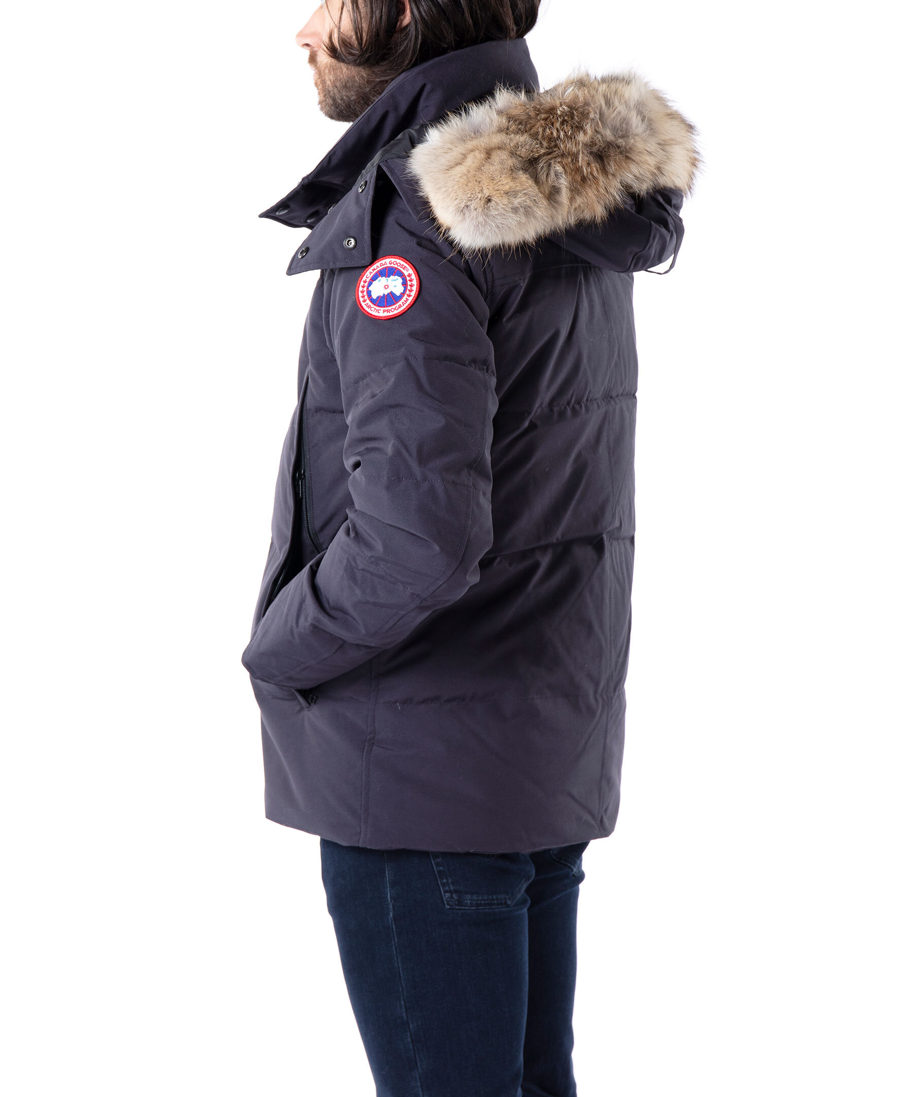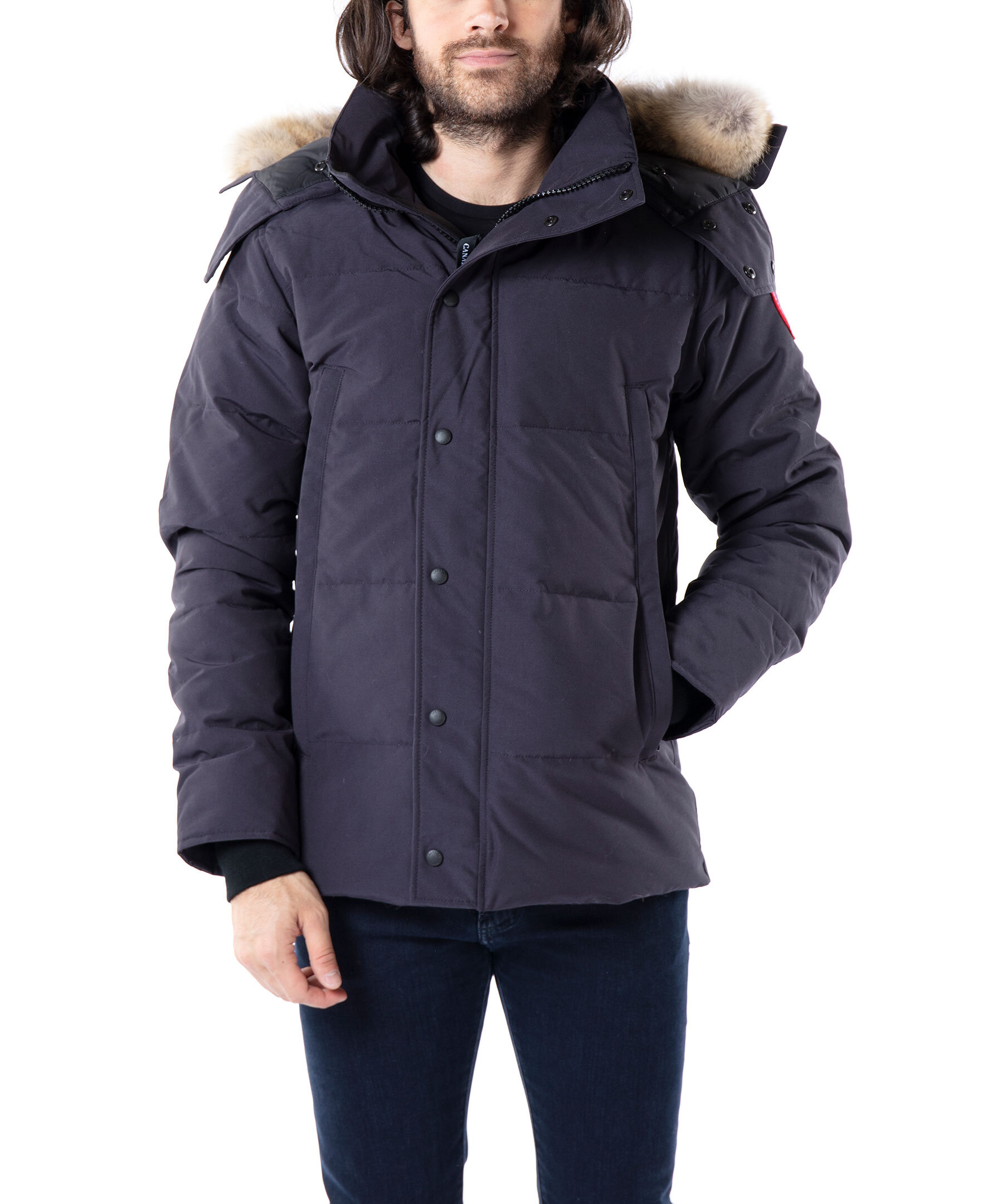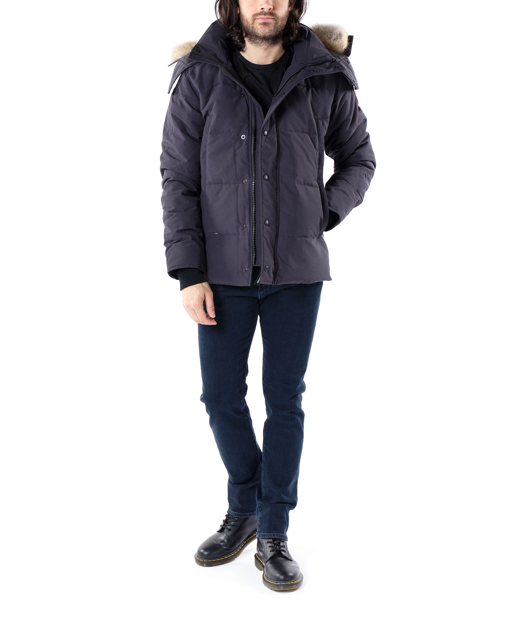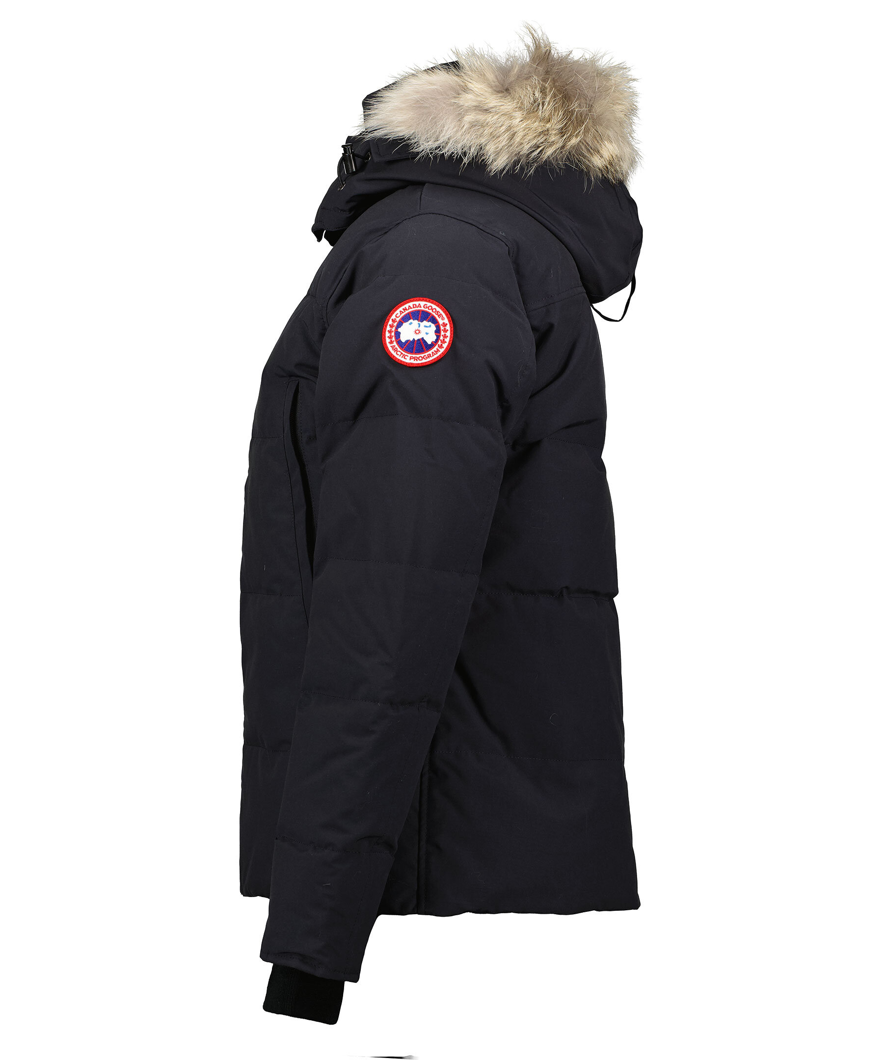 Marinblå dunjacka från Canada Goose. Två stora framfickor som stängs med dragkedja med två mindre fickor inuti med fleecefoder, en innerficka och avtagbar naturpäls på luvan. Jackan stängs med kraftig dragkedja samt tryckknappar. TIPS! Ånga pälsen för att få den stor och fluffig. OBS! Naturpälsar är unika och kan skilja sig från bilden. Modellen är 185cm lång och har på sig storlek M.