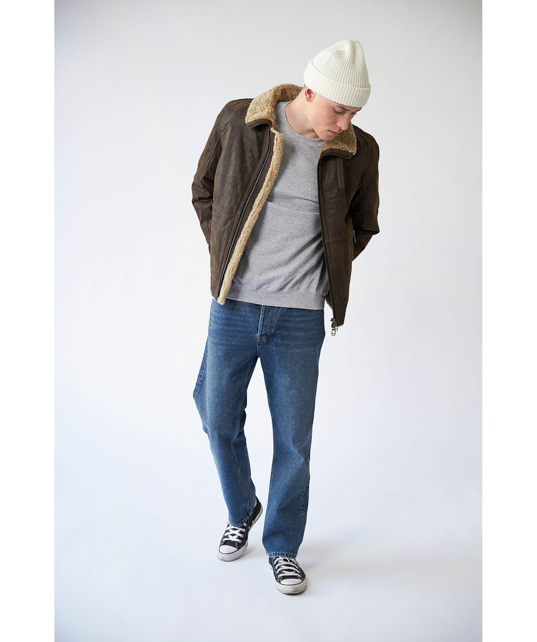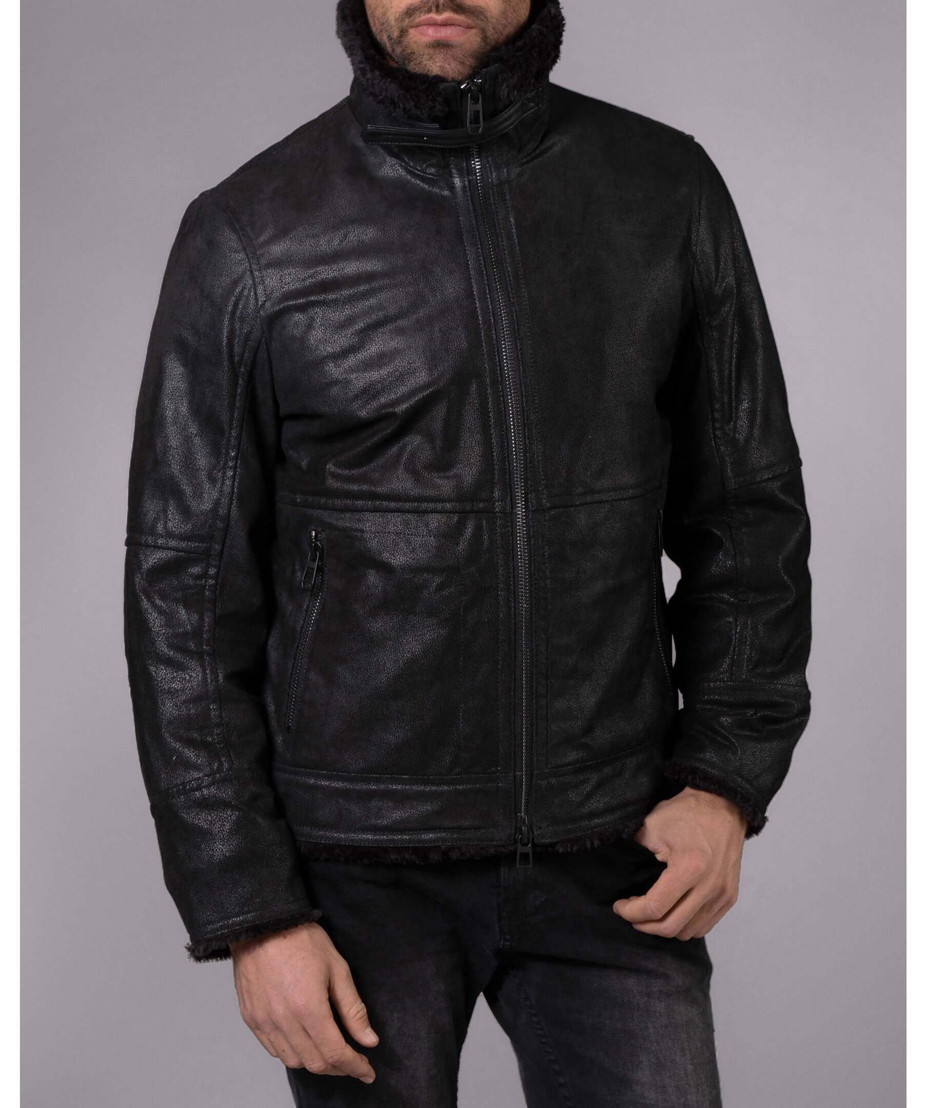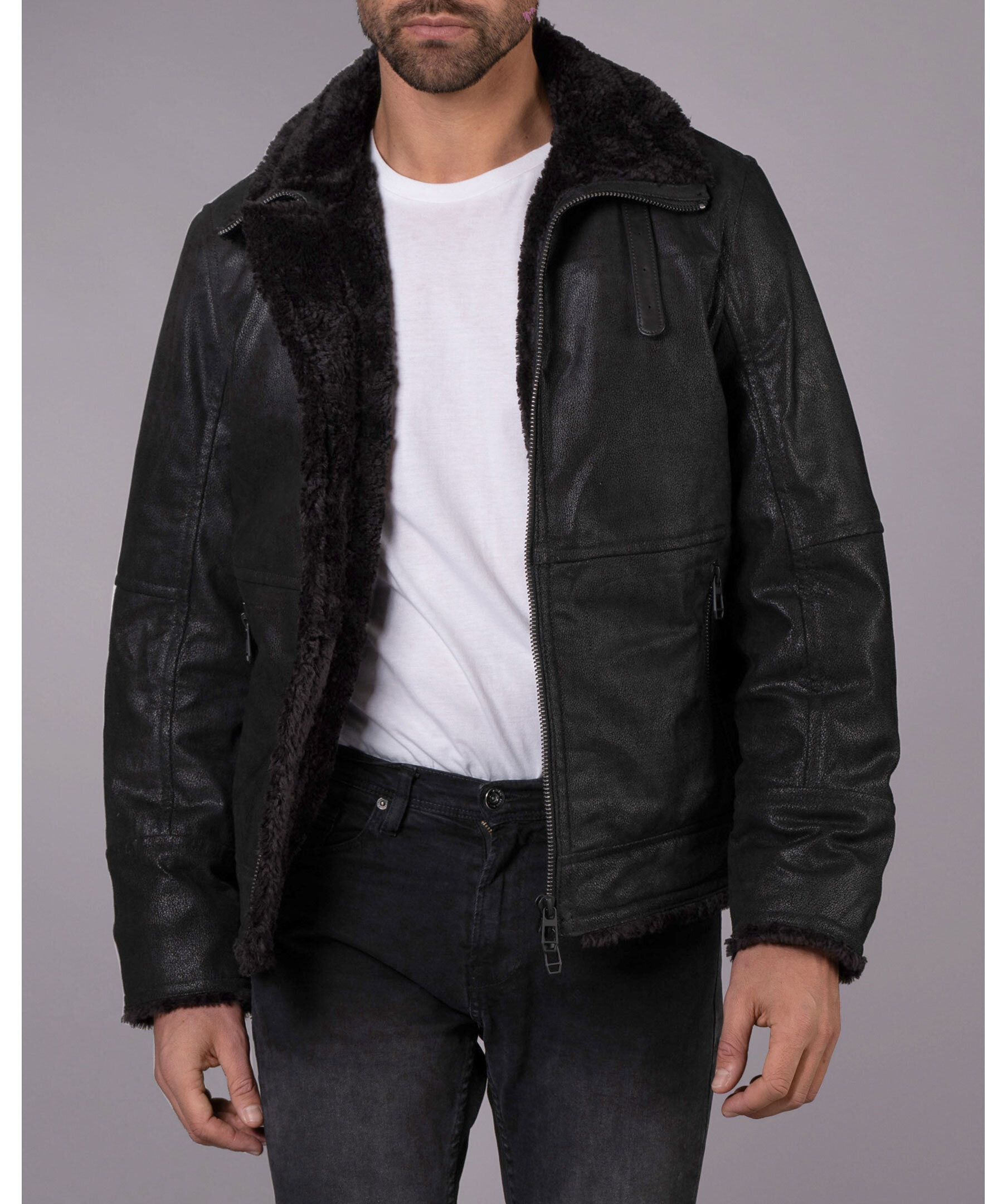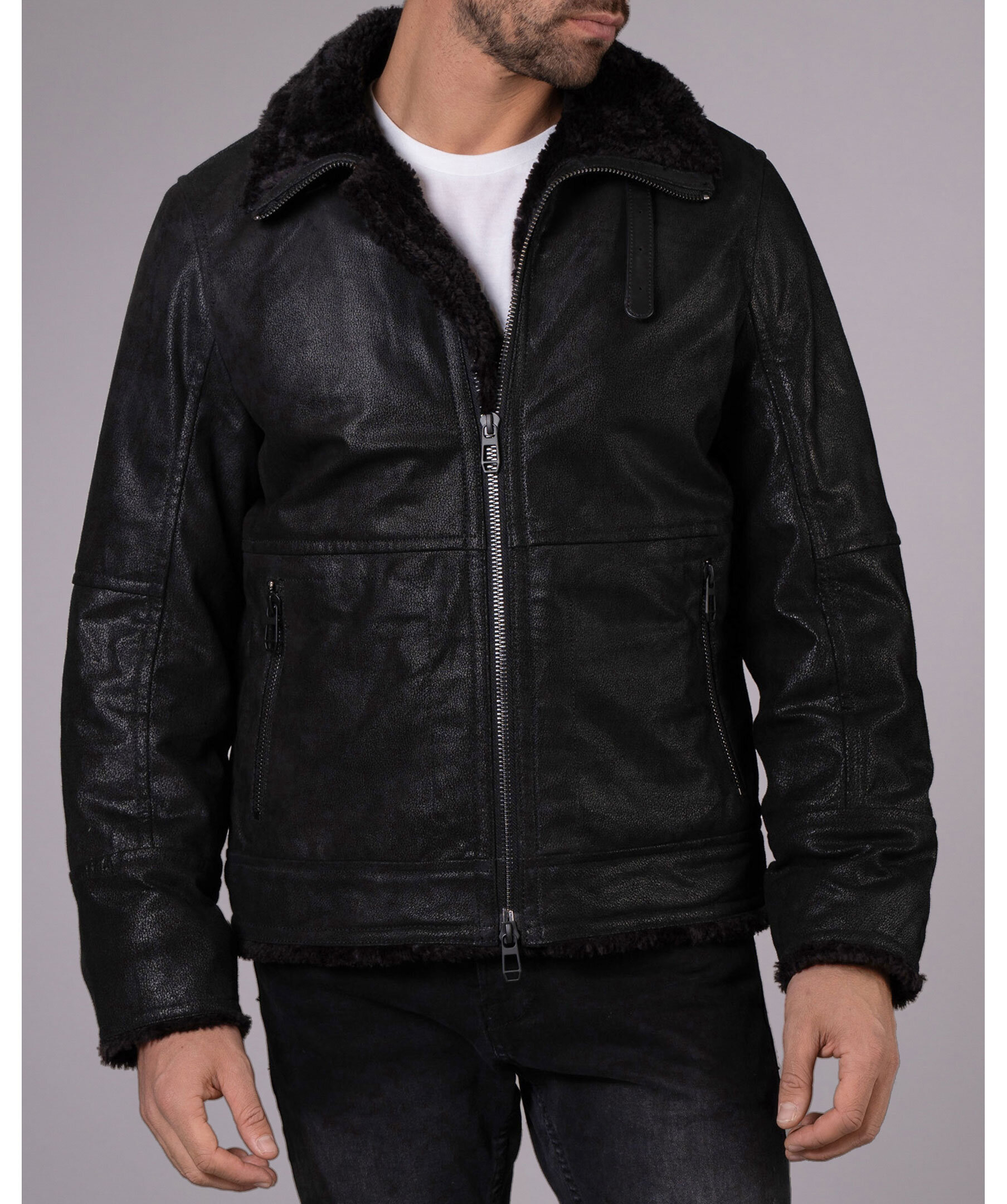 En tidlös shearlingjacka. Medan det bekväma sherpa-fodret ger värme, ger det blekta mockaskiktet och den karakteristiska finishen en häftig vintagekänsla.