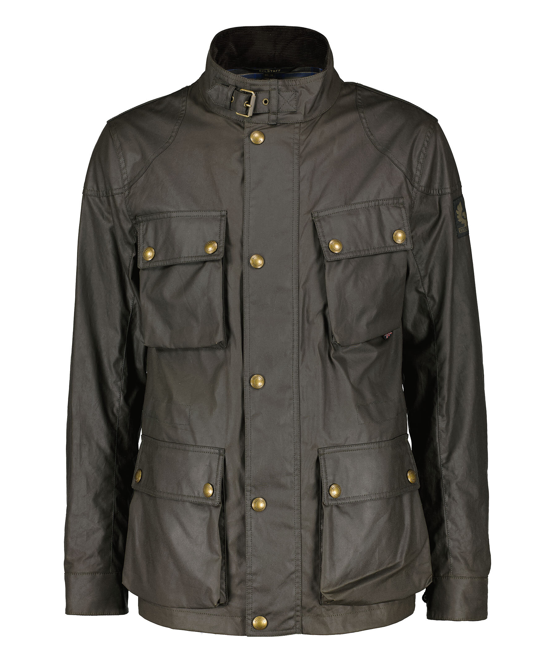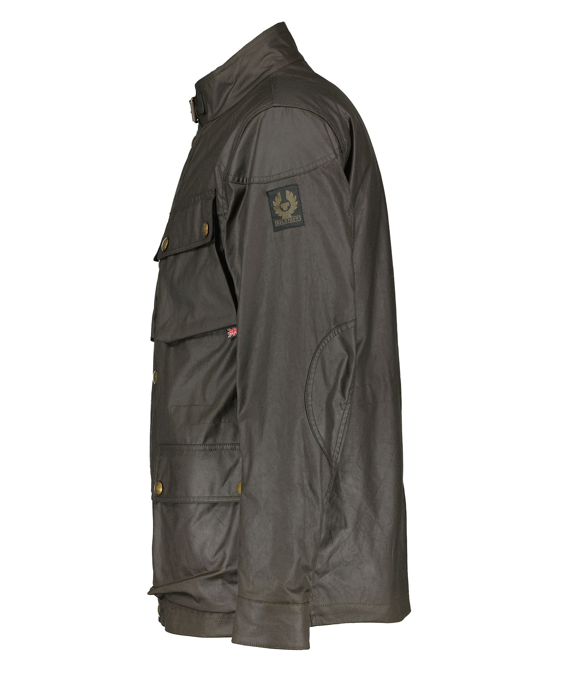 Mörkgrön jacka från Belstaff. Stängs framtill med dragkedja och tryckknappar. Krage med spänne och fodrad med manchester. Justerbara ärmslut med tryckknappar. Dragsko i midjan. Patch med logotyp på vänster ärm.