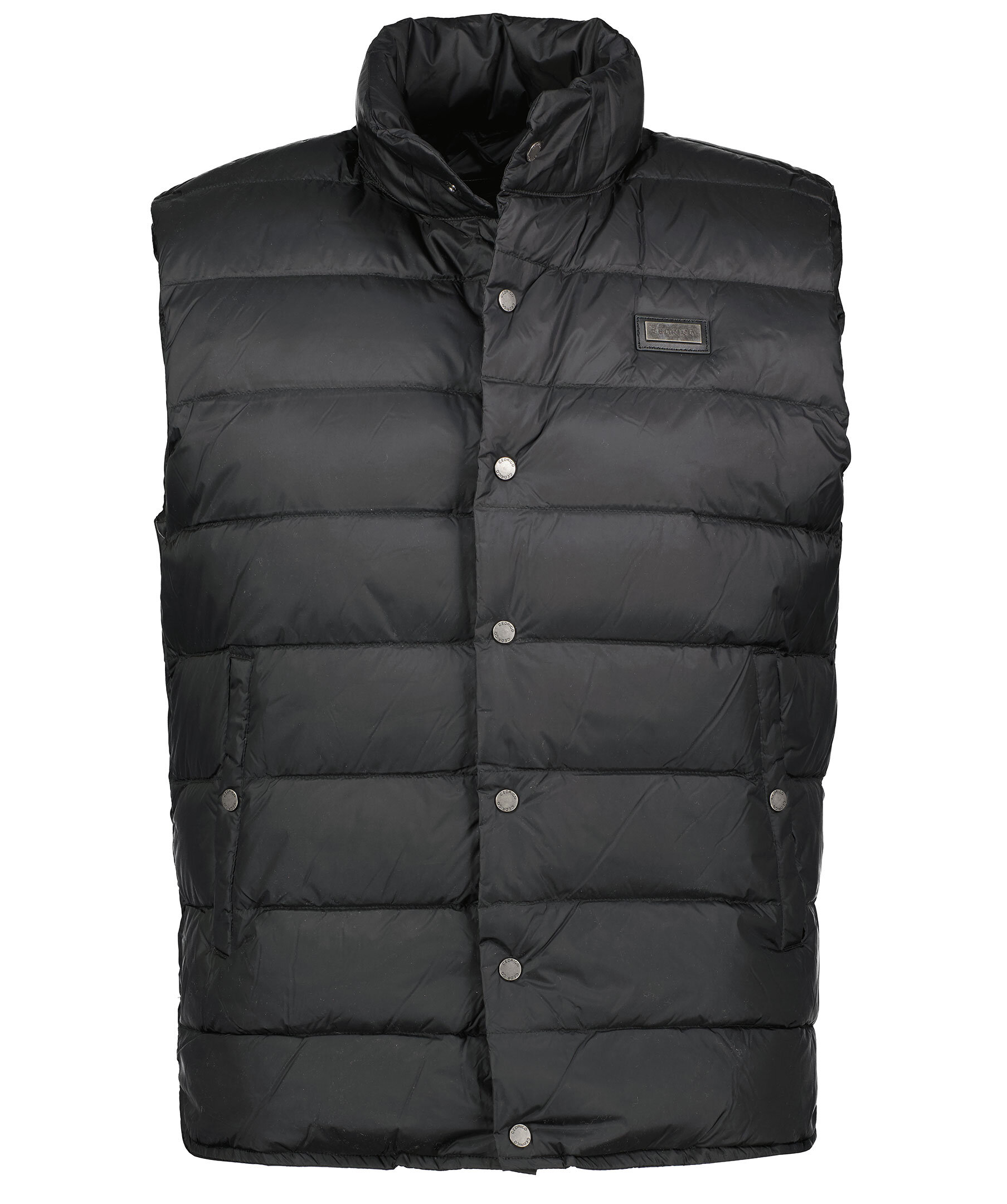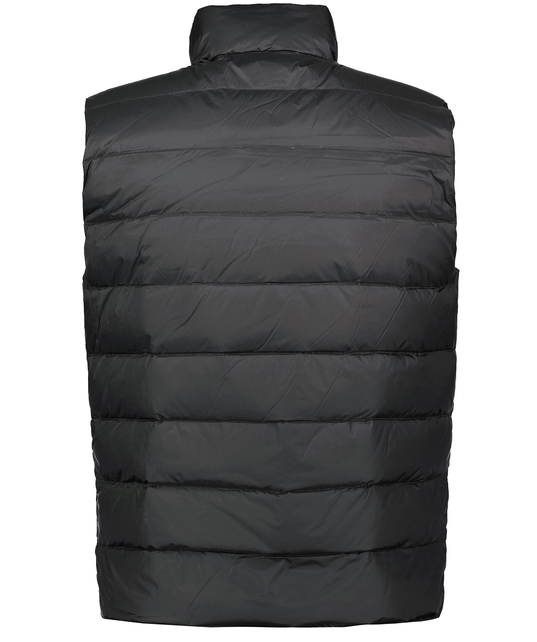 Svart väst i lättviktsdun från Cedrico. Tillverkad i nylon med fyllning av dun och fjäder. Stängs med trycknappar och har en hög krage. Två framfickor med knapp. Logotyp på bröstet.