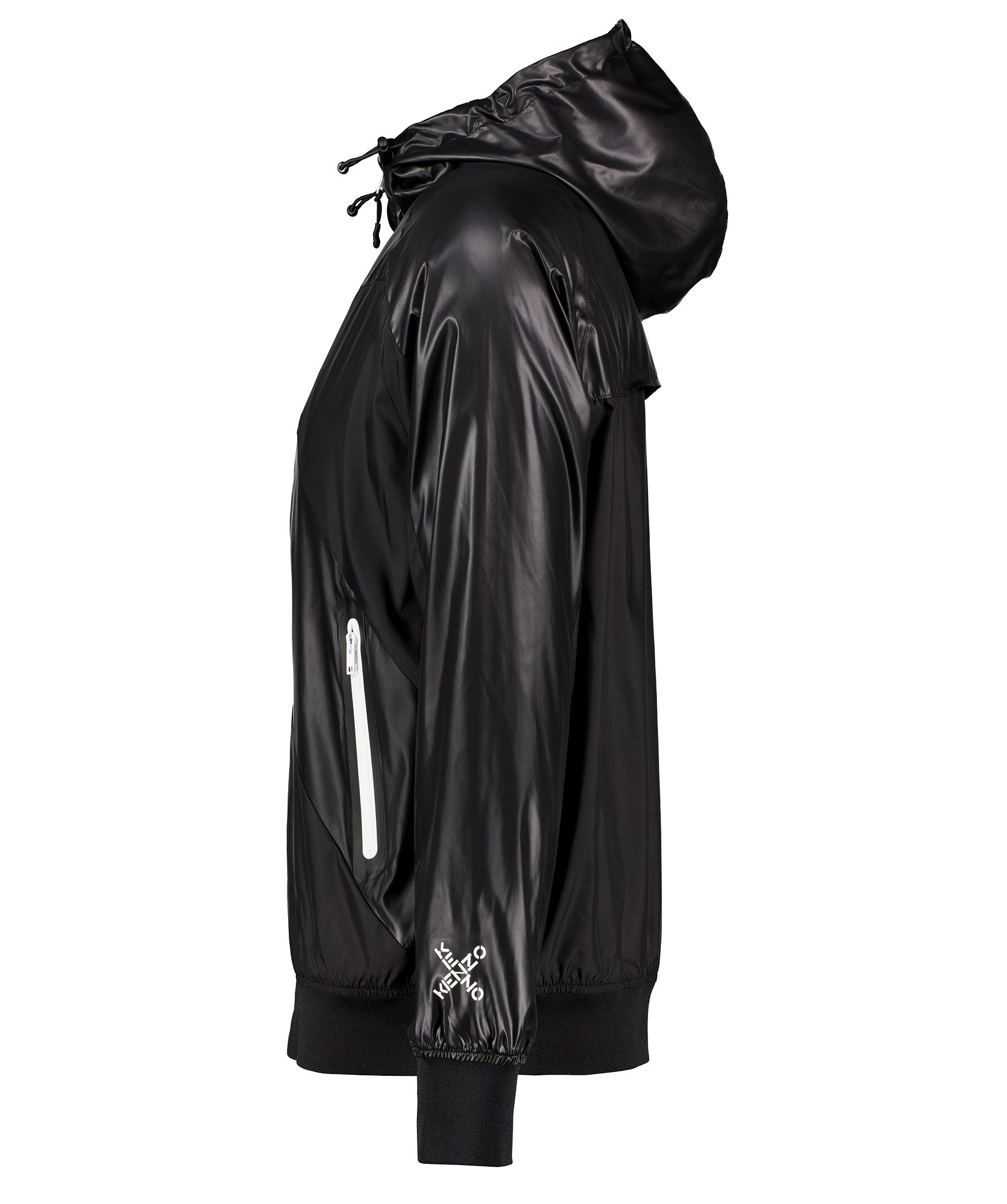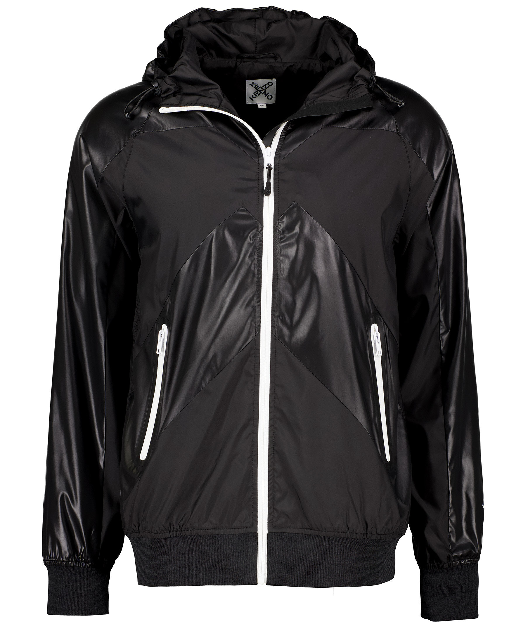 Svart tunn tracksuit jacka i en retroinspirerad modell från Kenzo. Tillverkad i 100% Polyester. Stängs med vit dragkedja fram och har två sidofickor med vita dragkedjor samt en innerficka. Elastiska muddar vid ärm och plaggslut. Logotyper i kors i nacken och på vänster ärmslut. Jackan har en luva med dragsko och är fodrad med ett svart meshtyg. *Tre framfickor *Ståkrage *Elastiska muddar