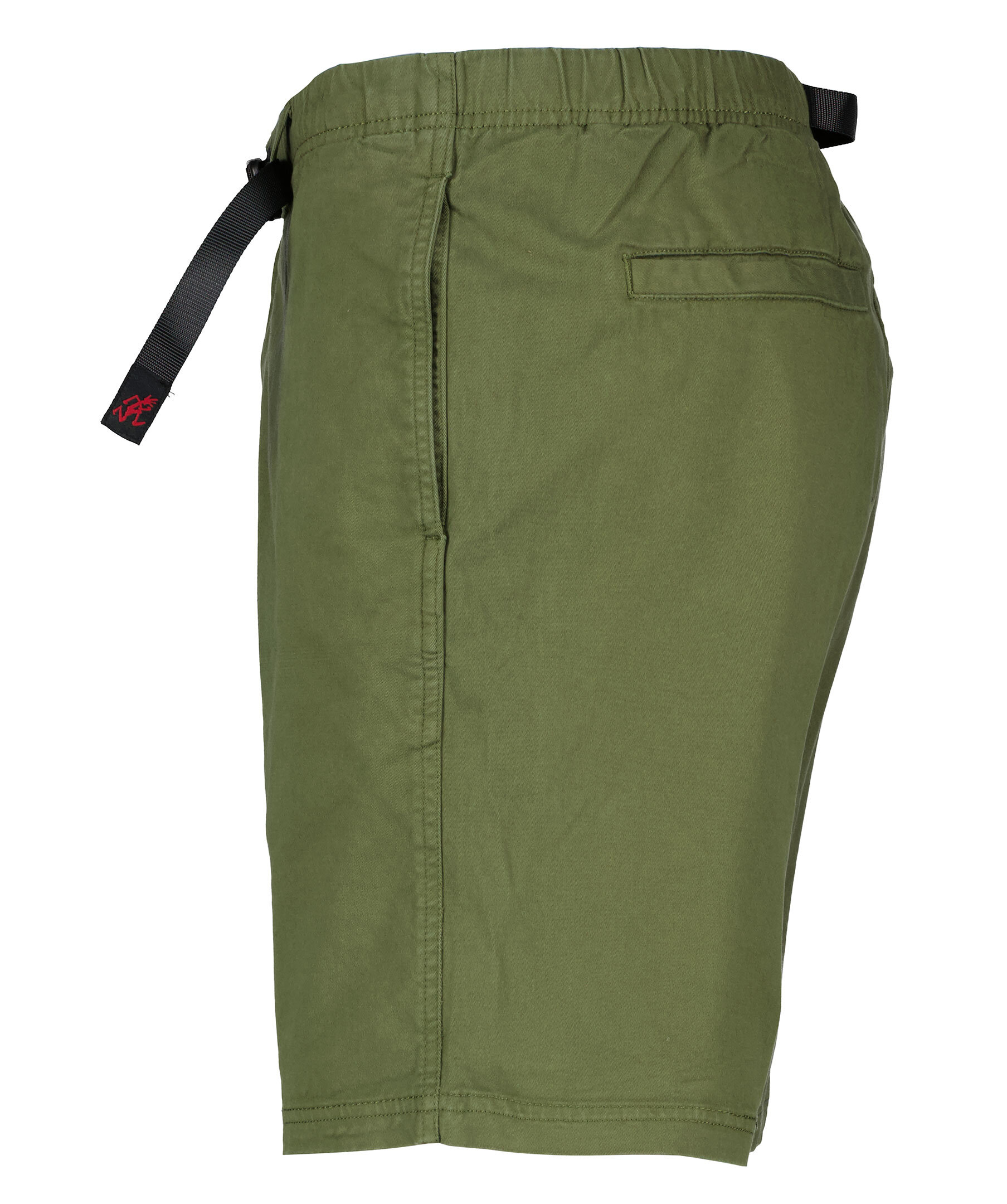 Gröna shorts från Gramicci. Justerbart bälte i midjan, resår i midjan. Två fickor fram, två fickor bak som stängs med kardborre, en med logotyp. Gylf som stängs med dragkedja och knapp.
