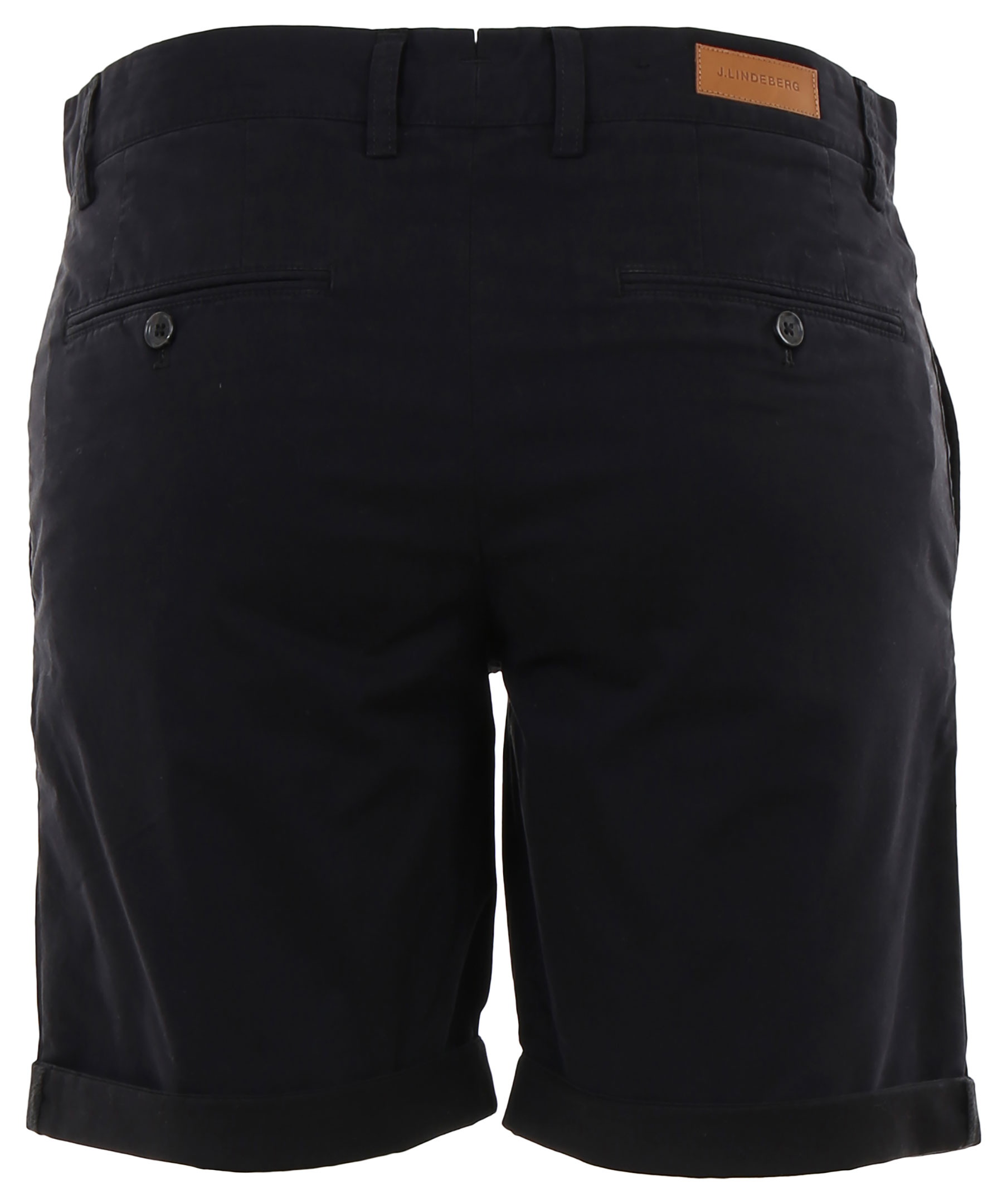 Svarta chinoshorts från J.Lindeberg. Fyra fickor, logga över vänster bakficka och dragkedja i gylfen.