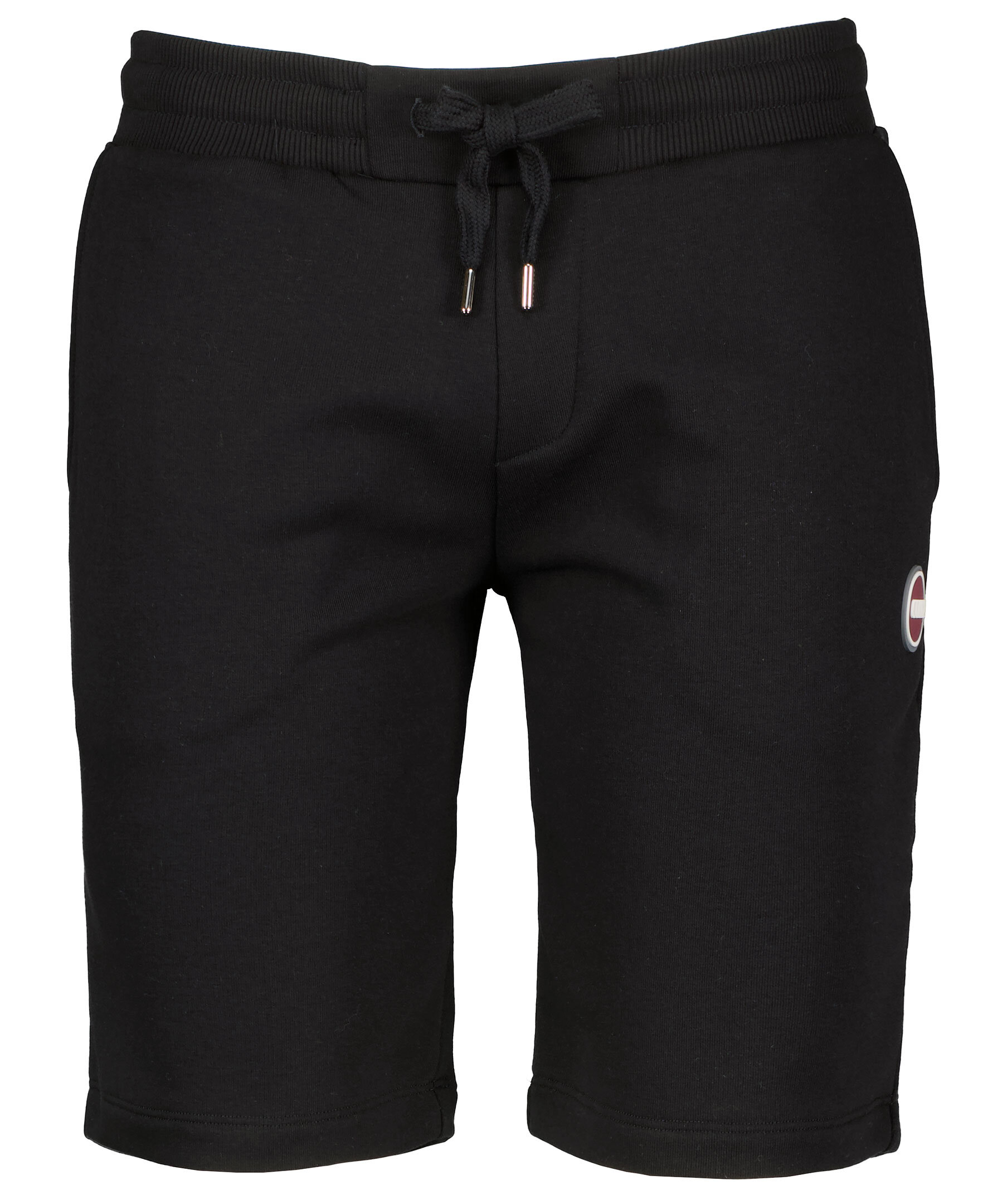 Svarta mjukisshorts från Colmar. Tillverkade i bomullsblandning. Rund, gummerad logotyp på vänster ben. Ribbad mudd i midjan med snörning. Två framfickor och en bakficka.