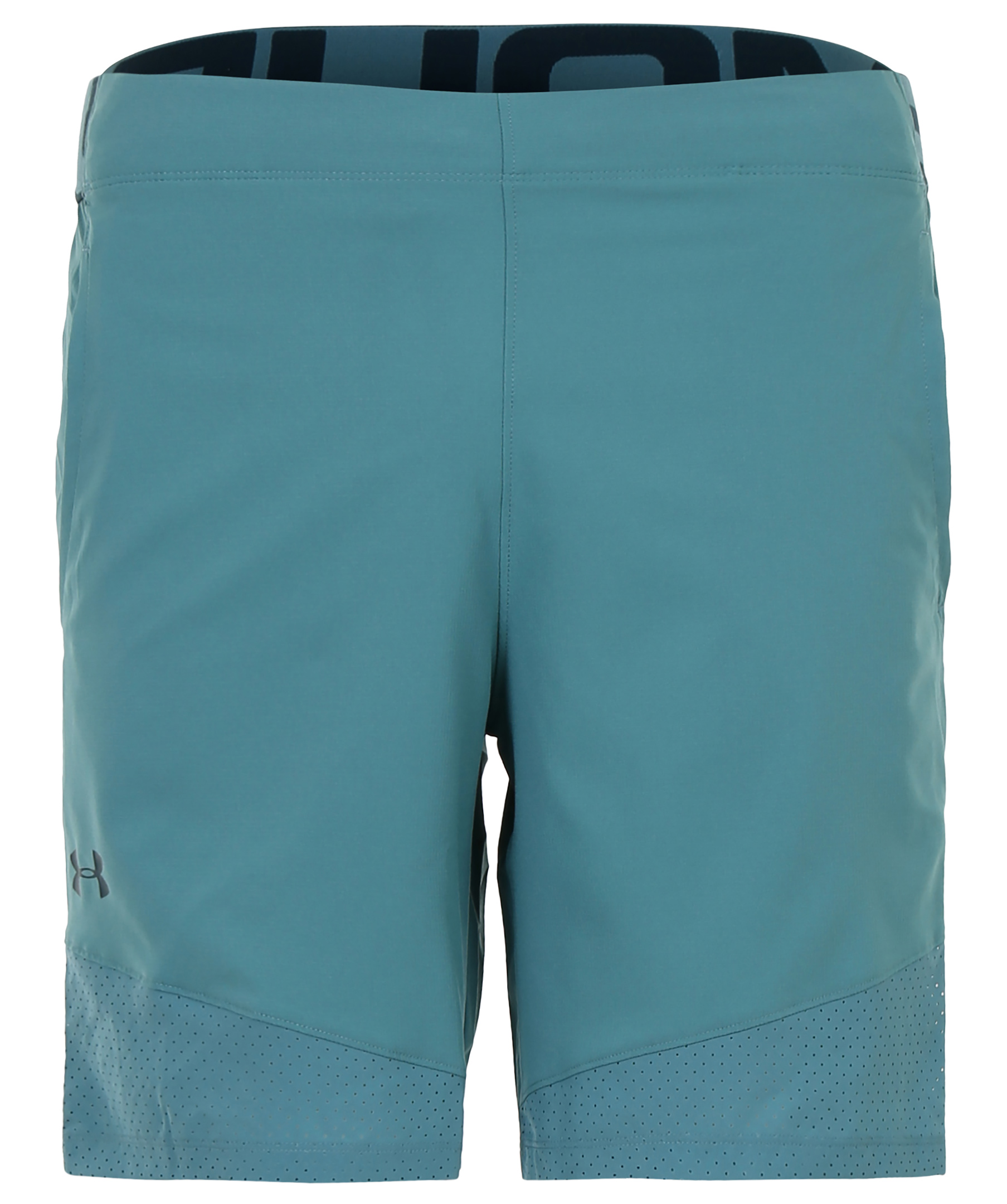 Turkosa träningsshorts från Under Armour. Elastiskt band i midjan samt två snedställda fickor fram. Tryck med logotyp på höger ben.