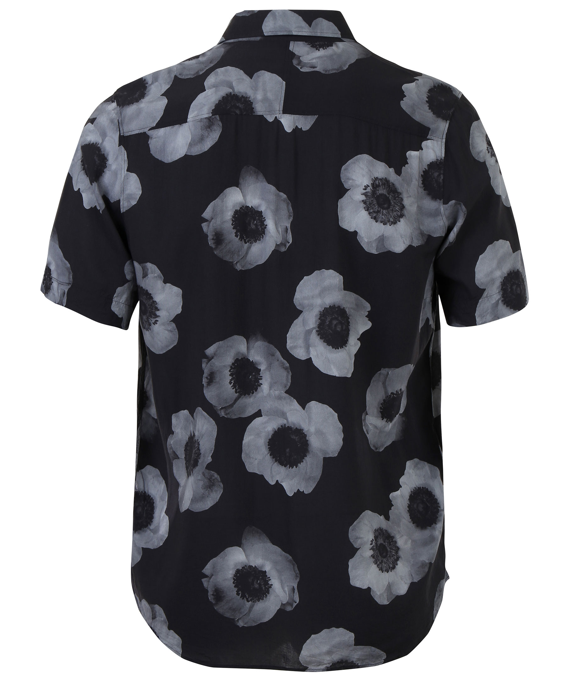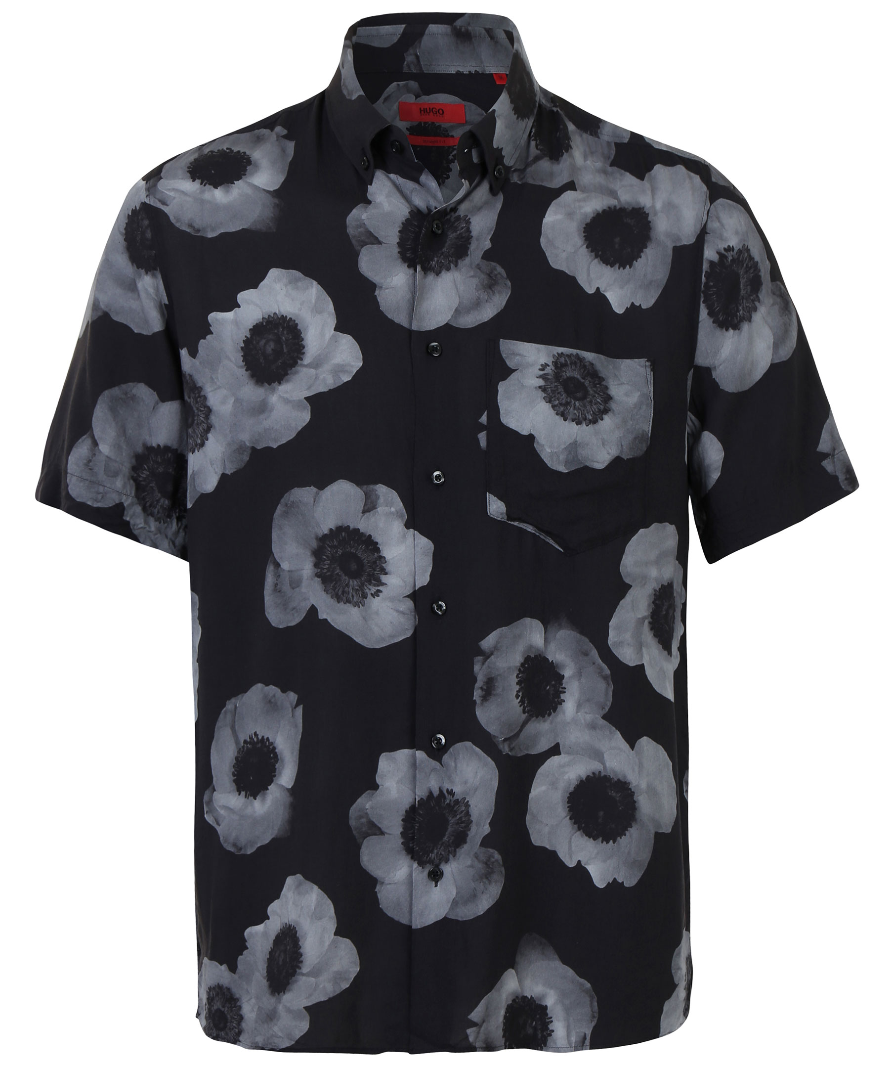 Svart, kortärmad skjorta från Hugo, mönstrad med blommor. Button down krage, straight fit, bröstficka.