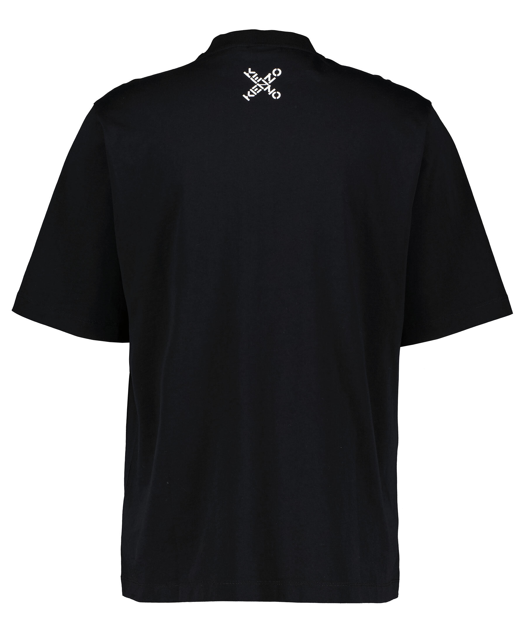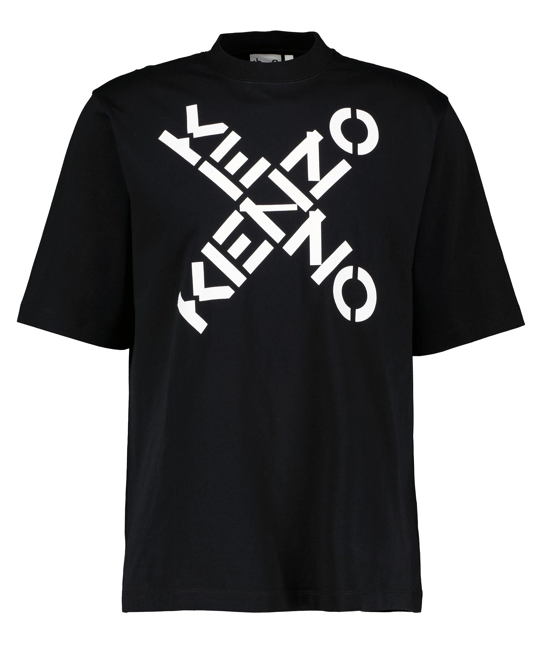 Svart t-shirt från Kenzo. Stor vit korsad logotyp på bröstet, rundad hals och tillverkad i 100% bomull.