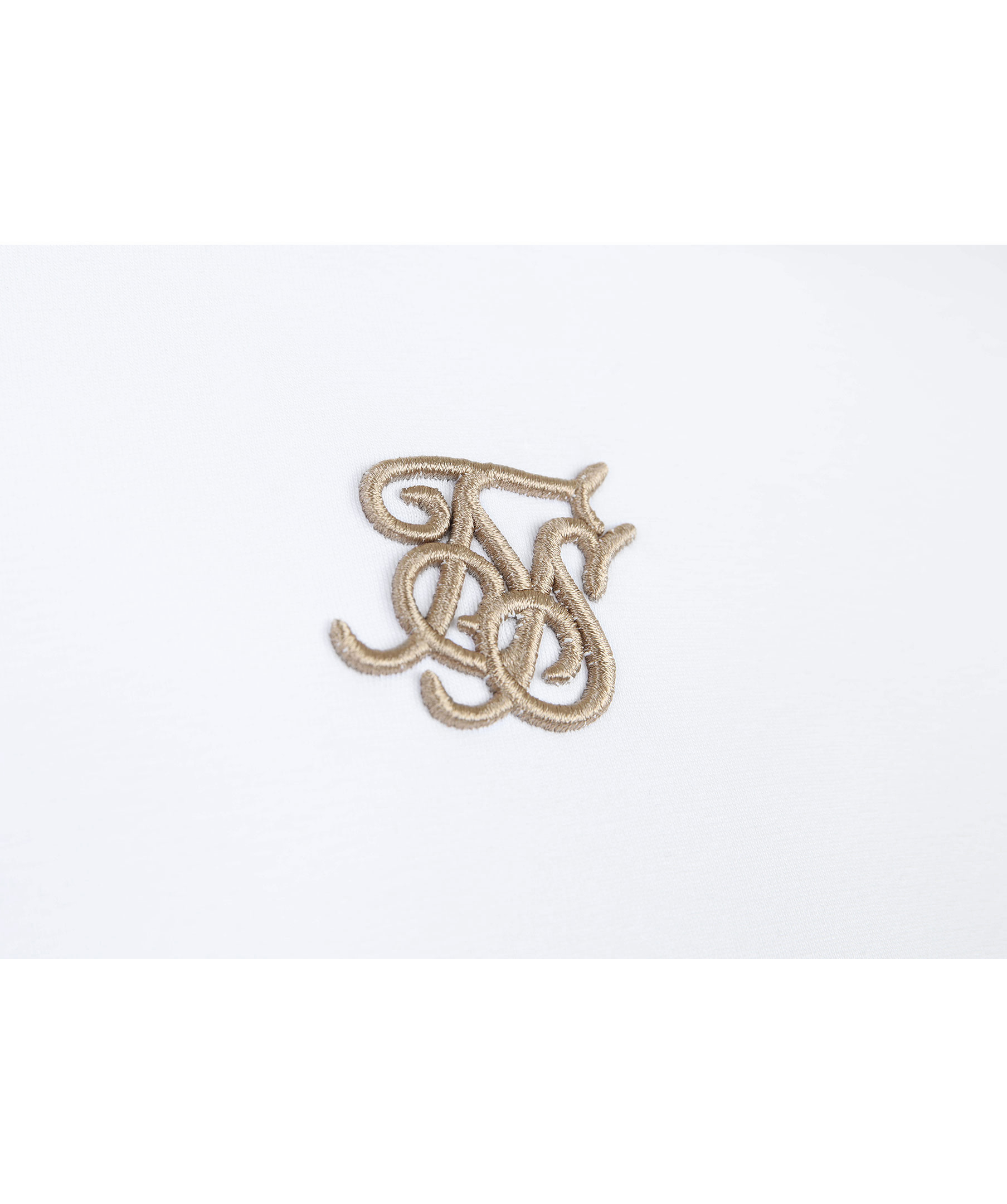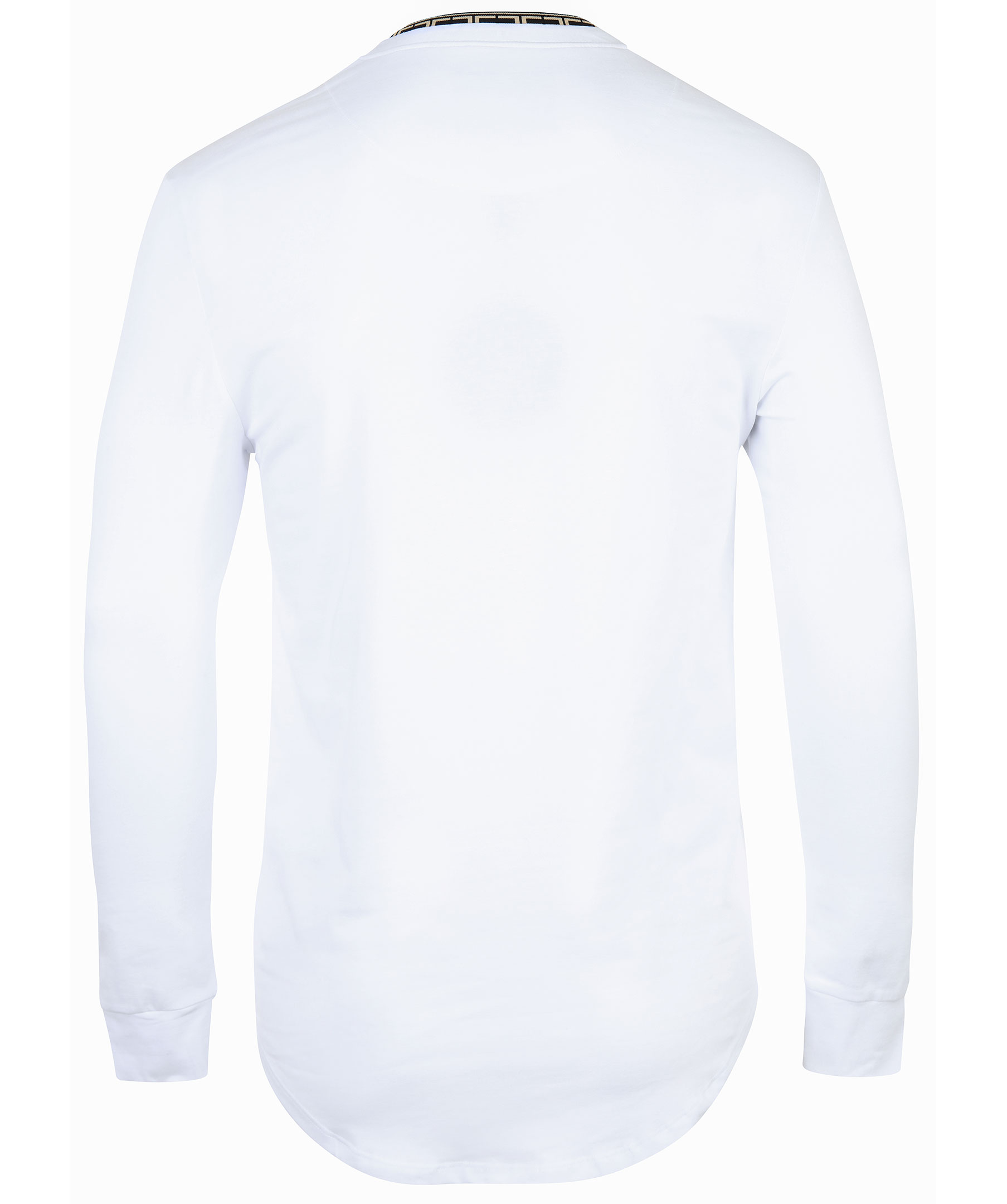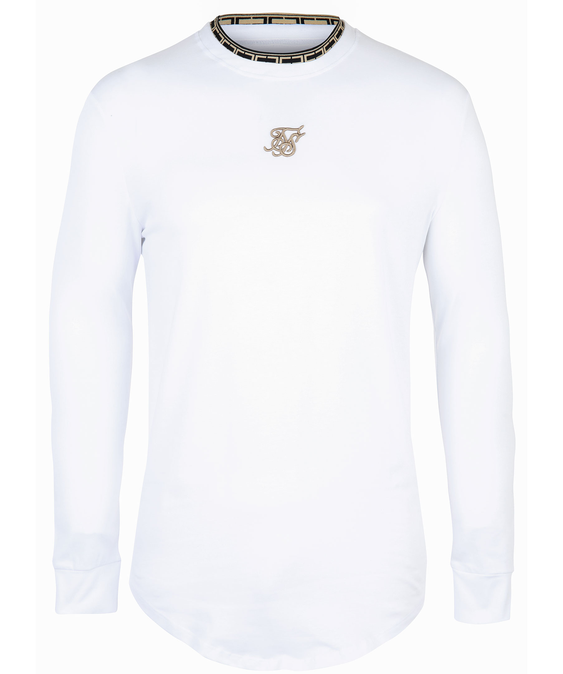 Vit långärmad t-shirt från SikSilk. Tillverkad i mjuk bomullsmix. Broderad logotyp på bröstet. Ribbstickade muddar vid halsring och ärmslut. Elastiskt band runt halsen med mönster.