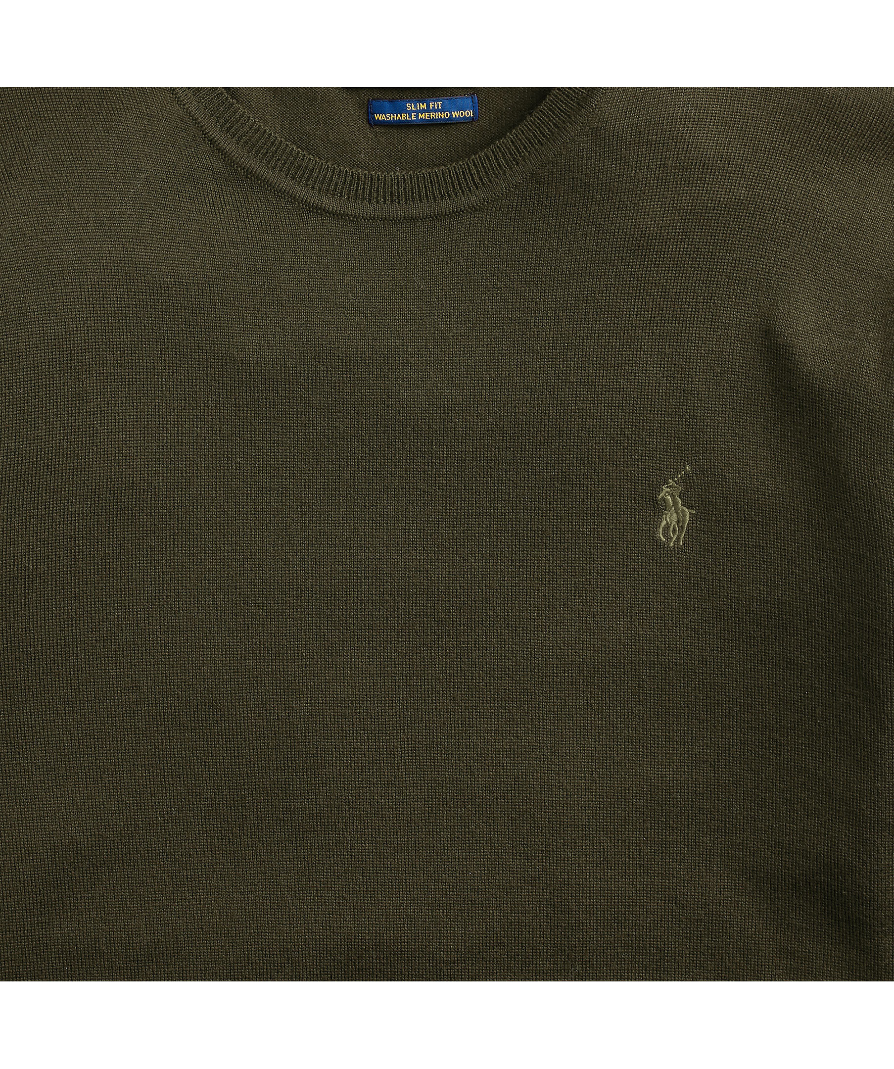 Grön pullover i smal passform från Polo Ralph Lauren. Tillverkad i merinoull. Rundad hals och broderad logotyp.