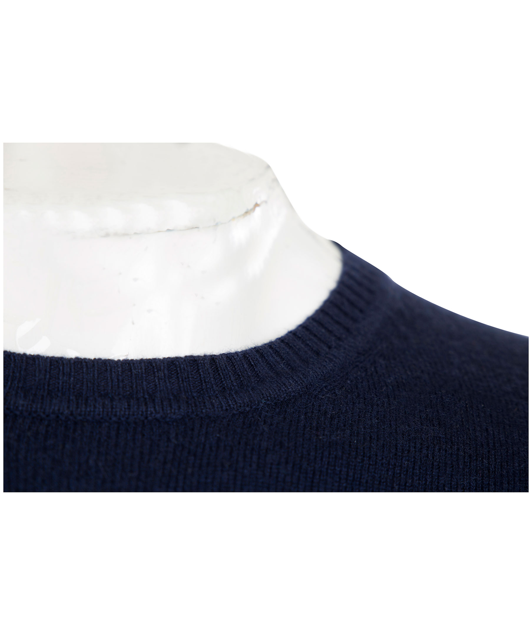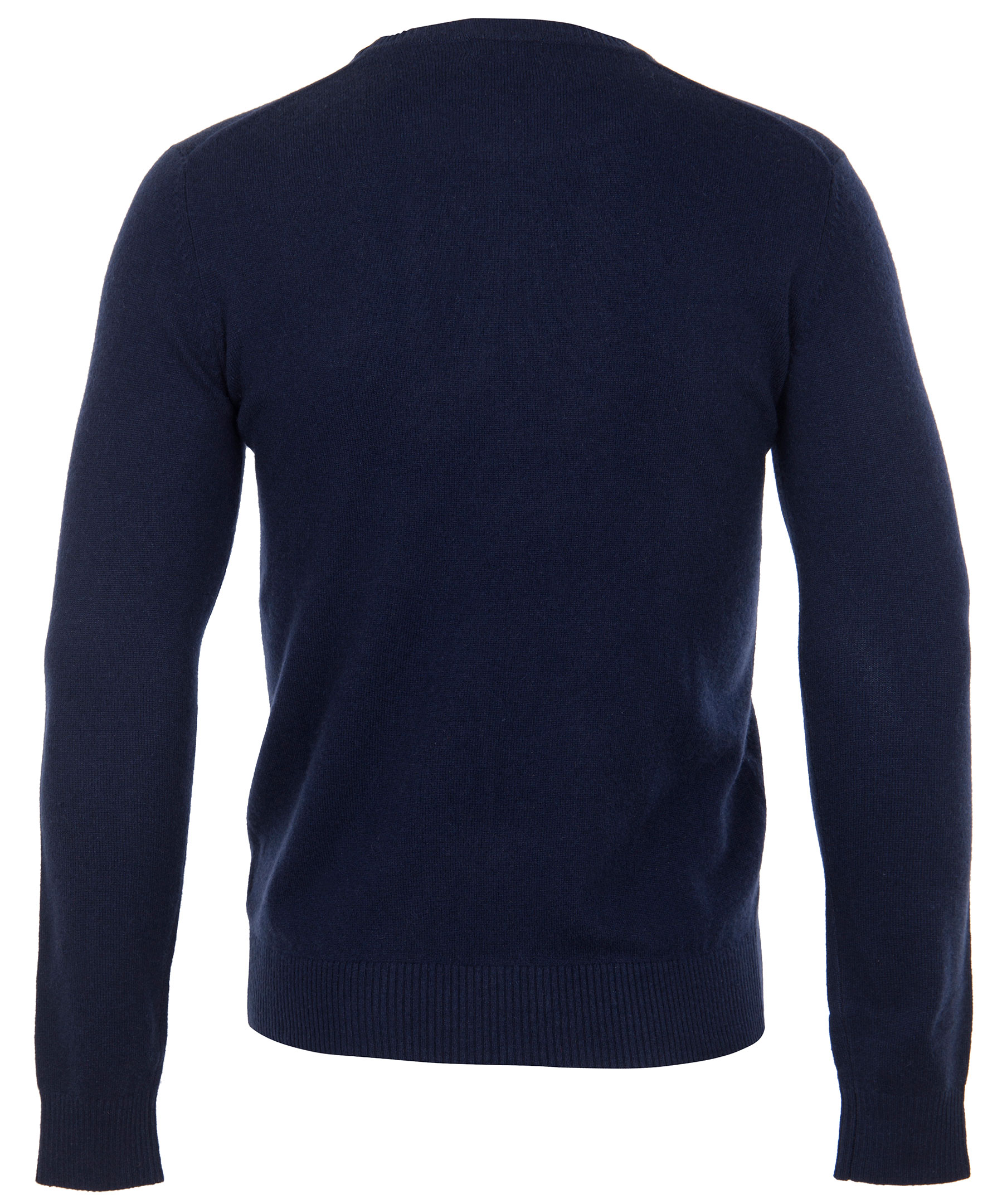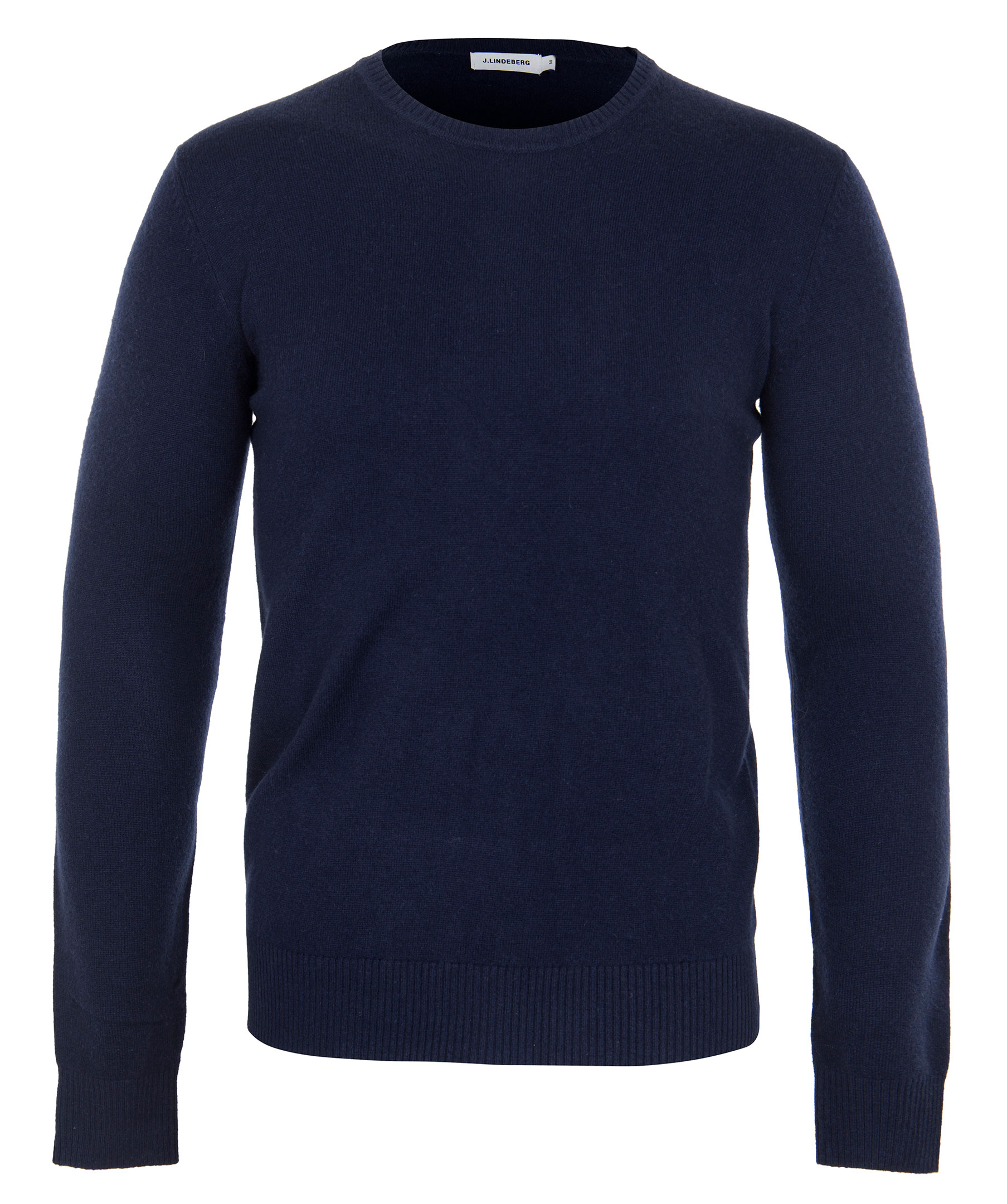 Marinblå stickad tröja från J.Lindeberg i 100% kashmir. Tröjan är rundhalsad med ribbstickade muddar och krage.