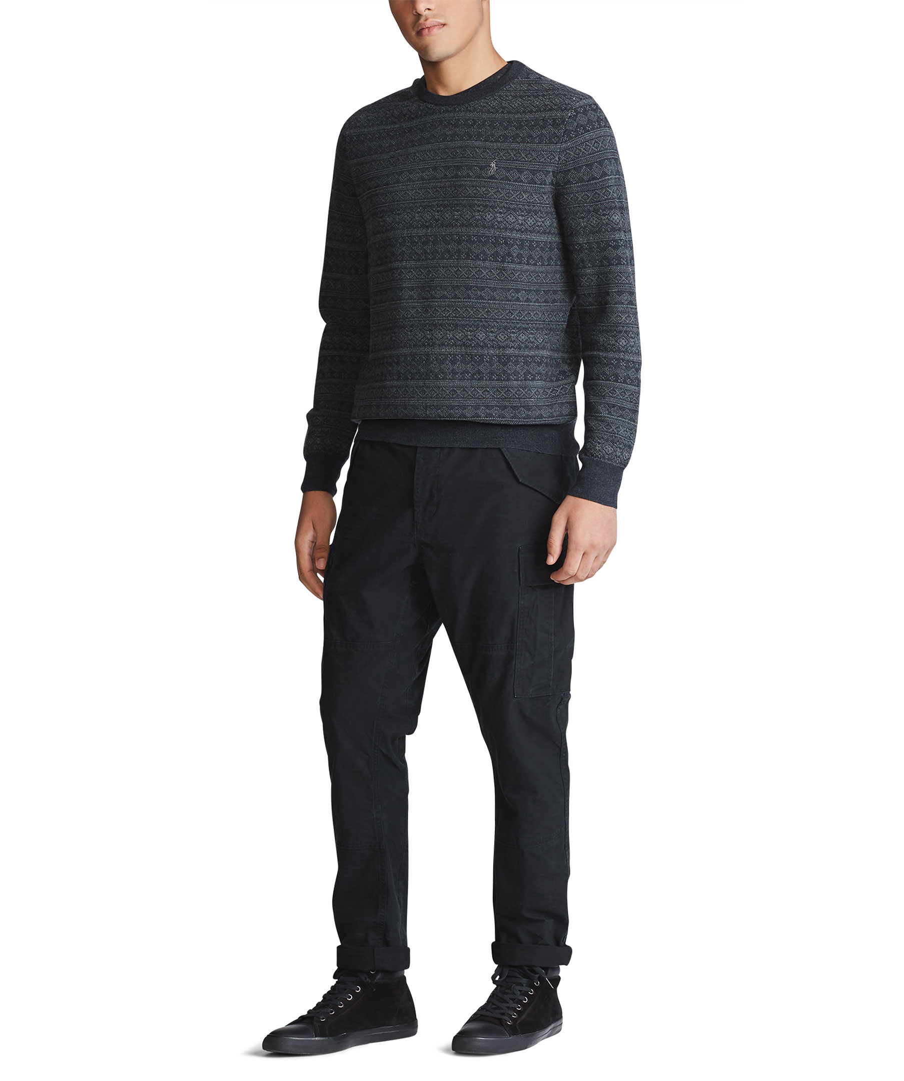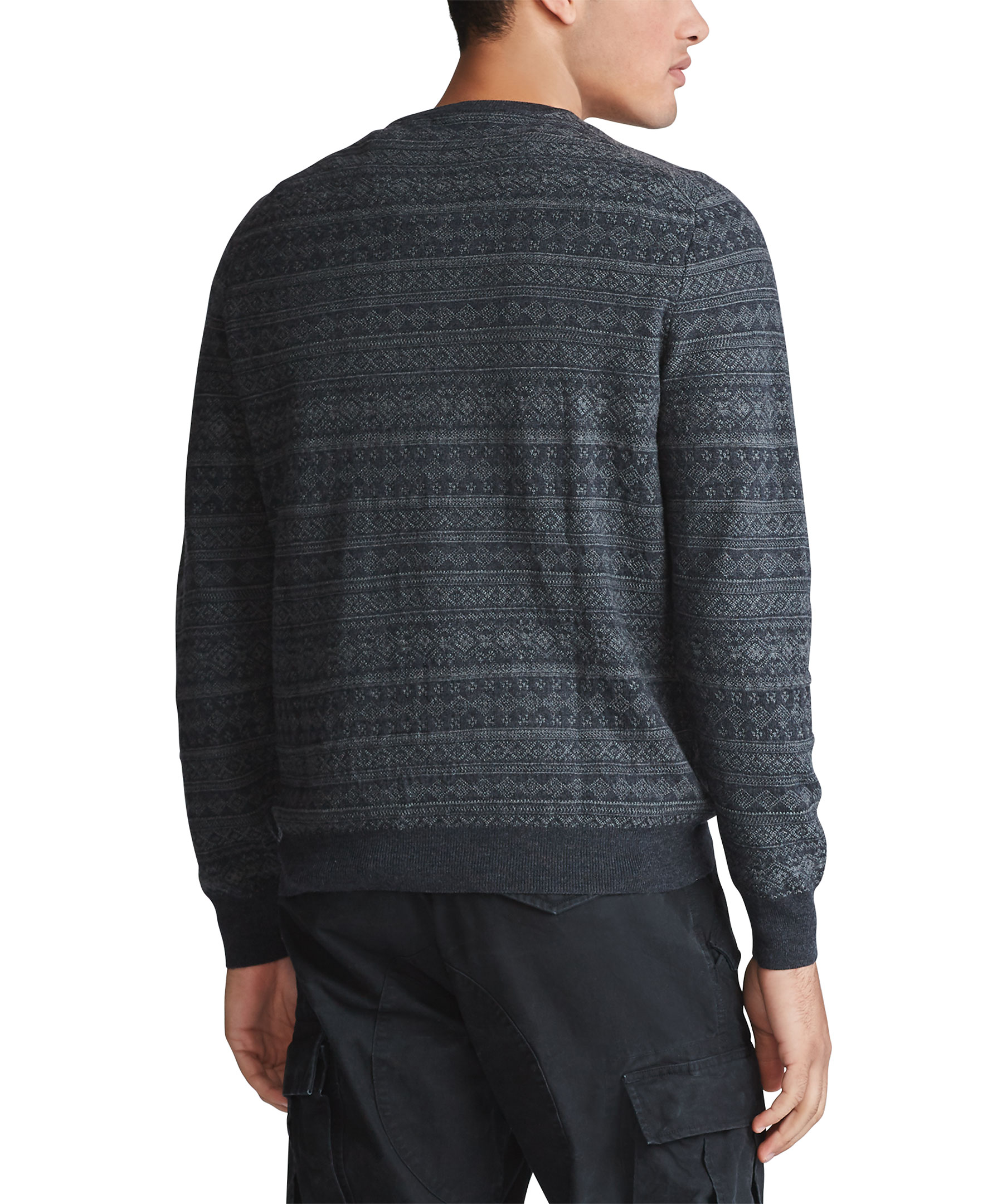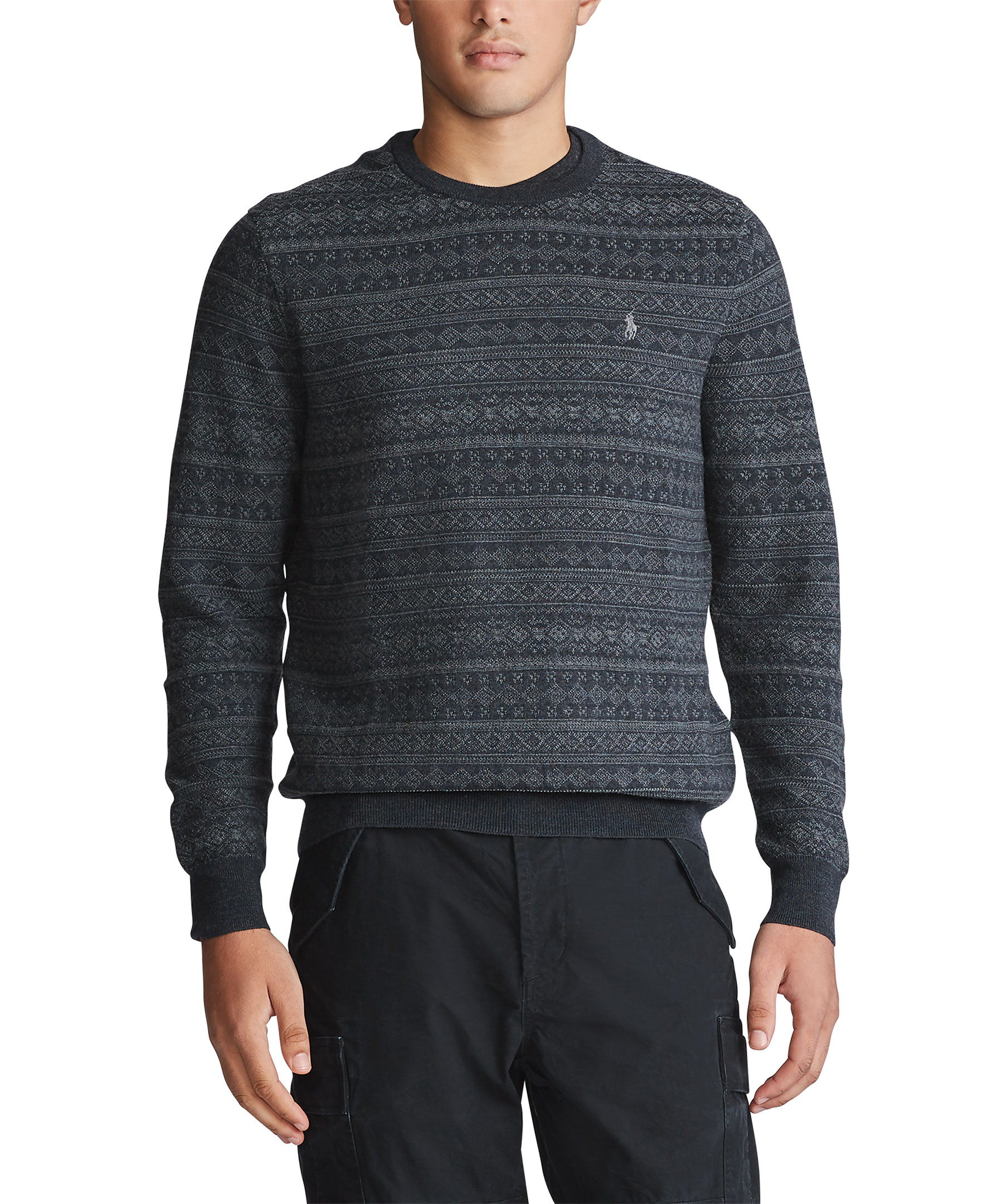 Mörkgrå pullover med diskret mönster från Polo Ralph Lauren. Tillverkad i 100% merinoull. Rundad hals och broderad logotyp på bröstet.