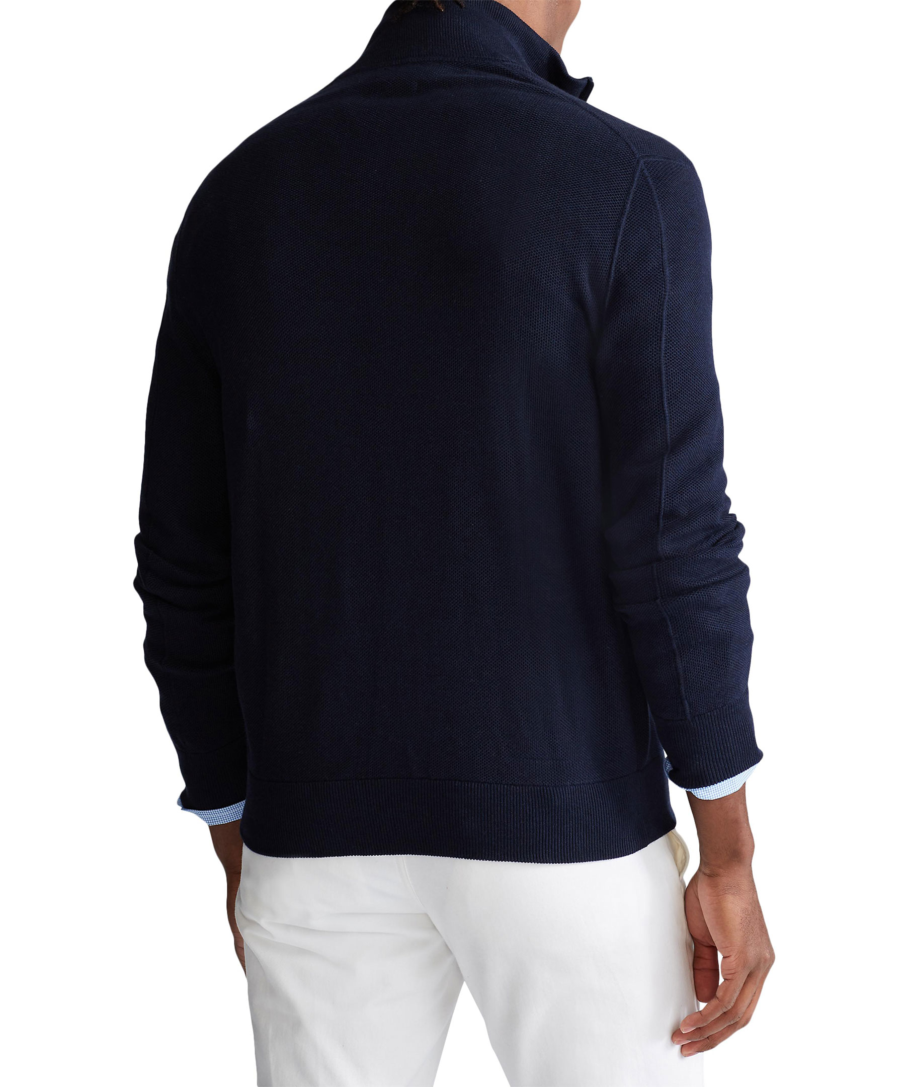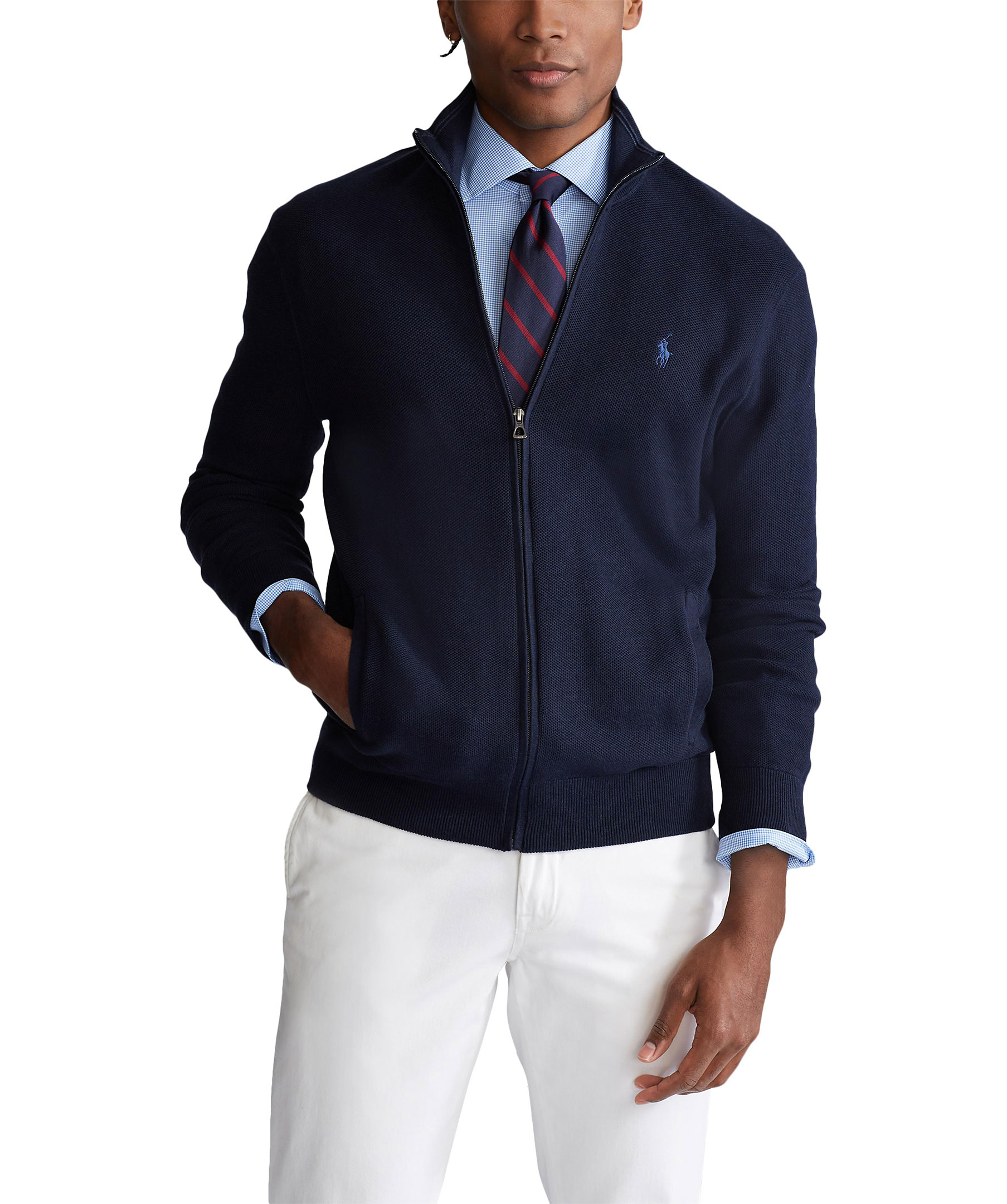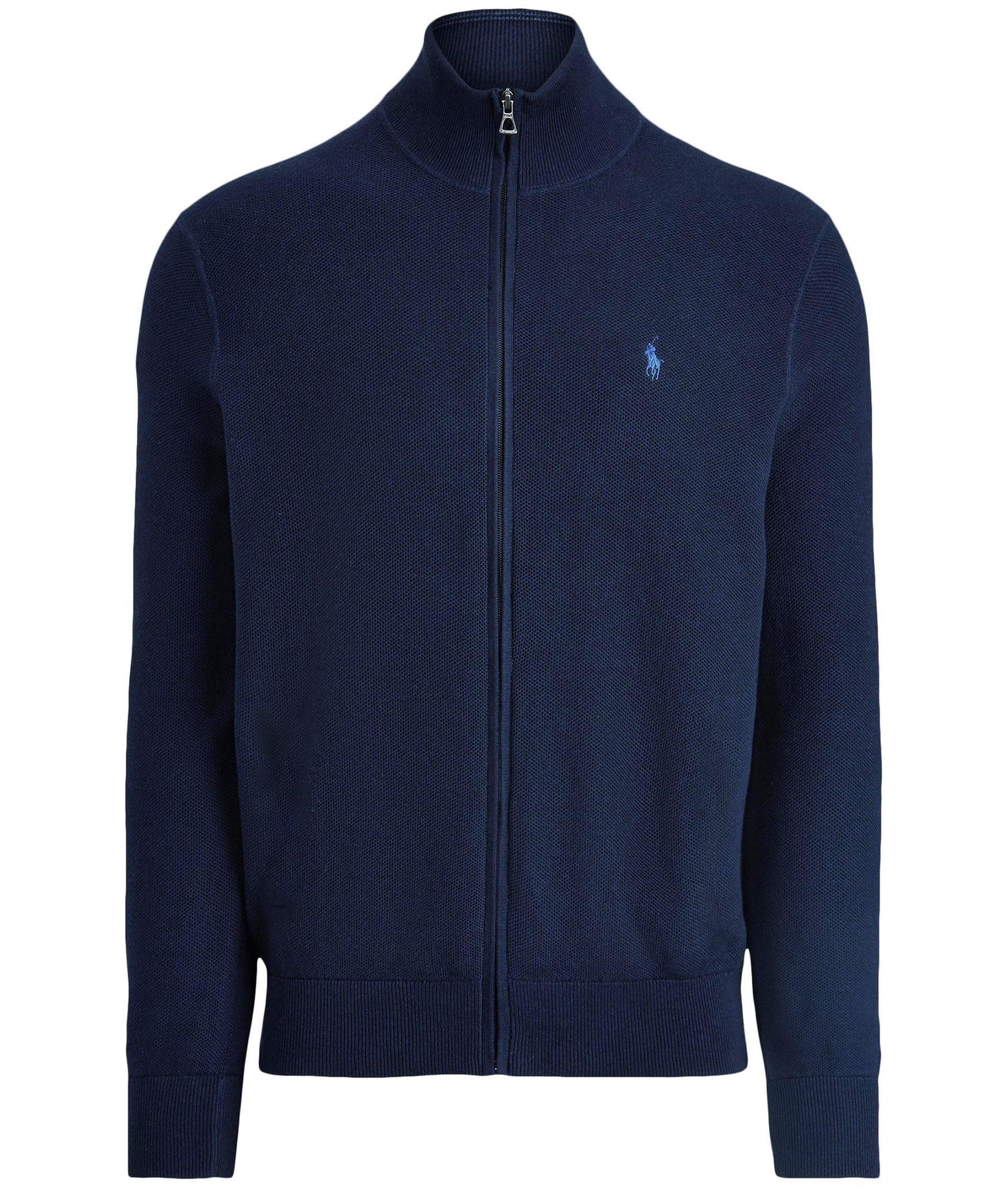 Marinblå, stickad tröja från Polo Ralph Lauren. Heldragen dragkedja, två fickor samt broderad logotyp på bröstet.