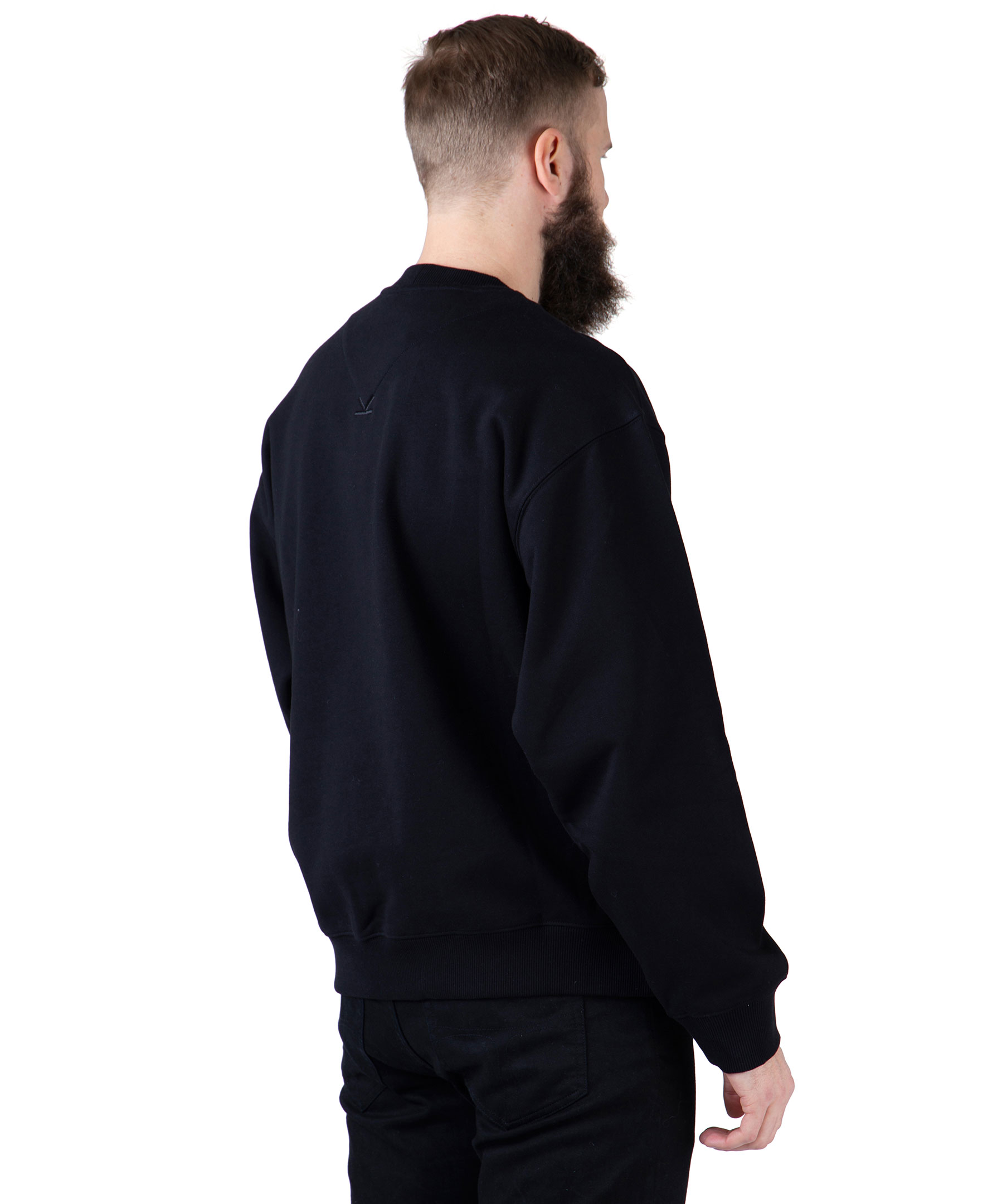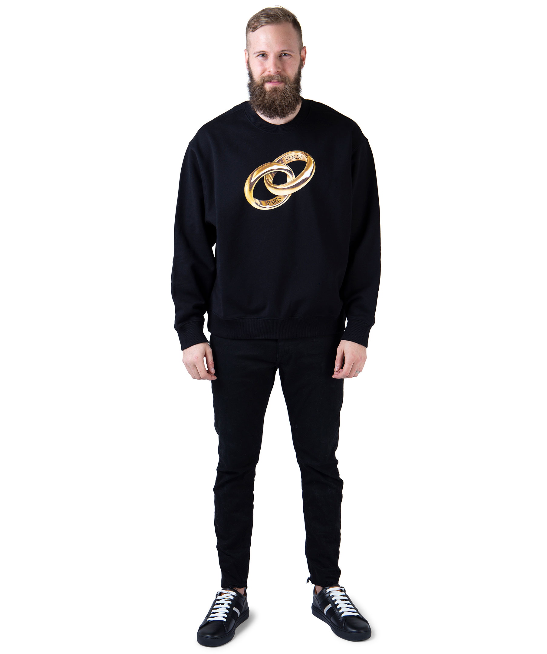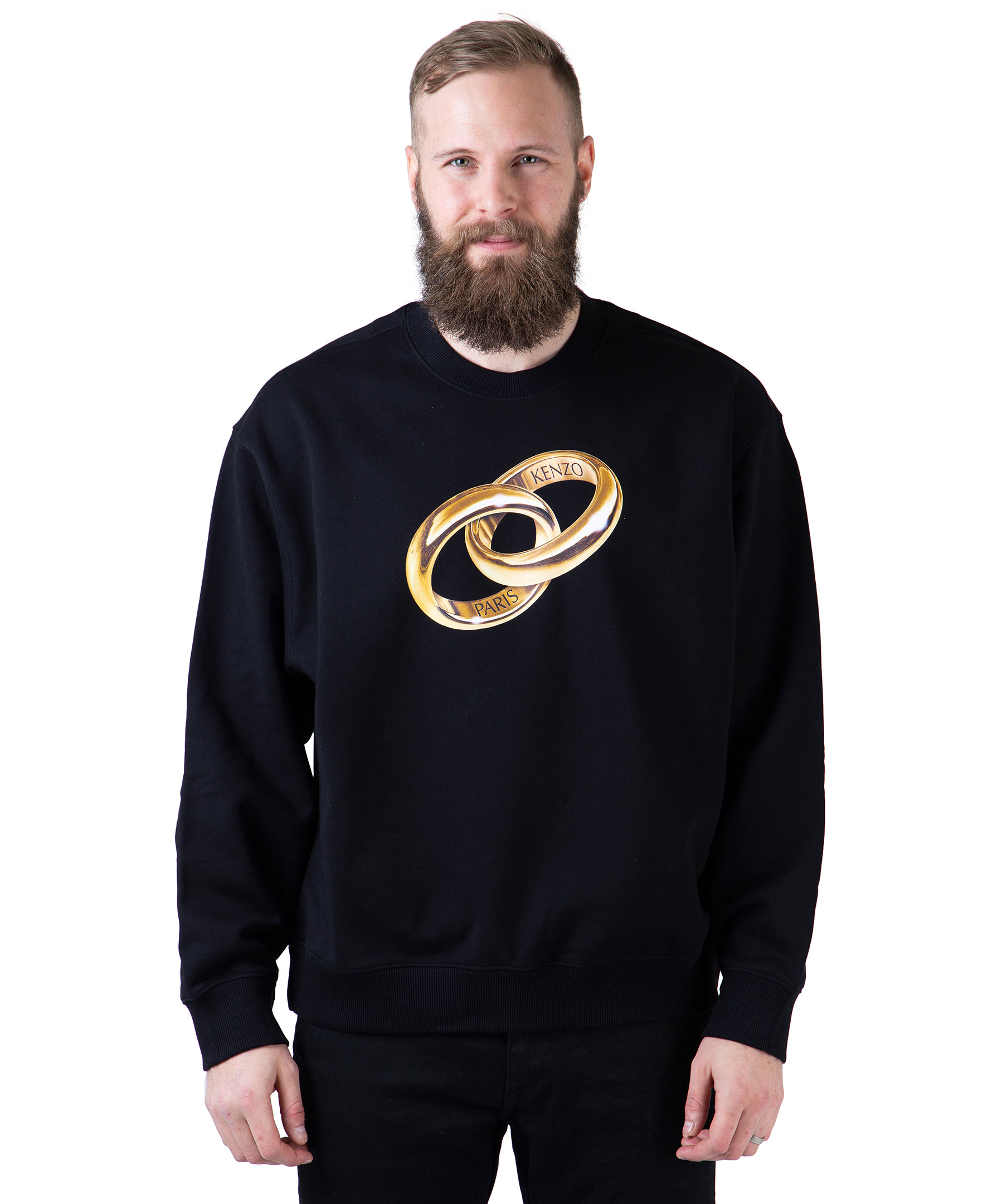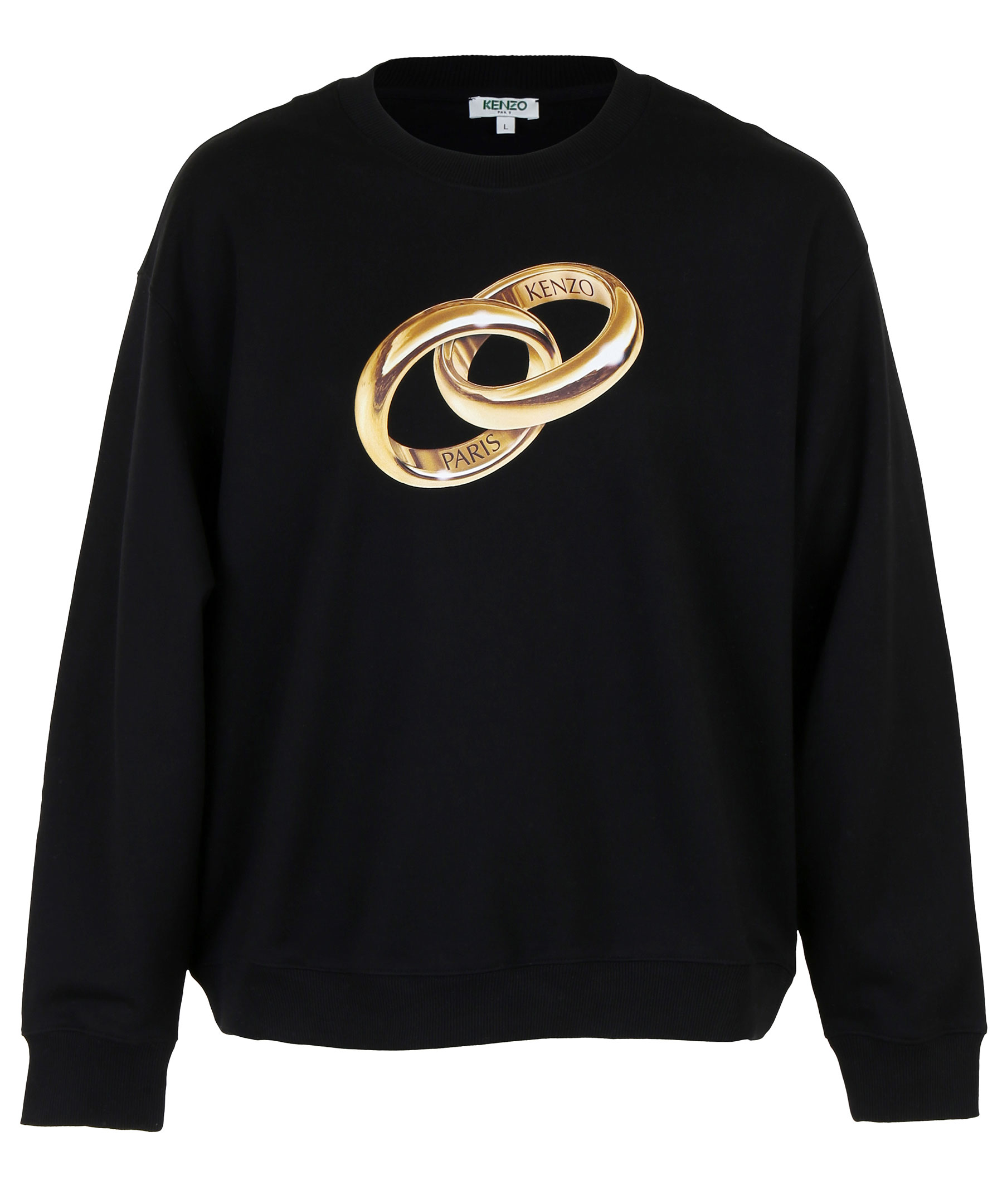 Svart collegetröja från Kenzo. Stort ringtryck på bröstet. Ribbstickade muddar vid hals, ärm och plaggslut. Tillverkad i bomull.