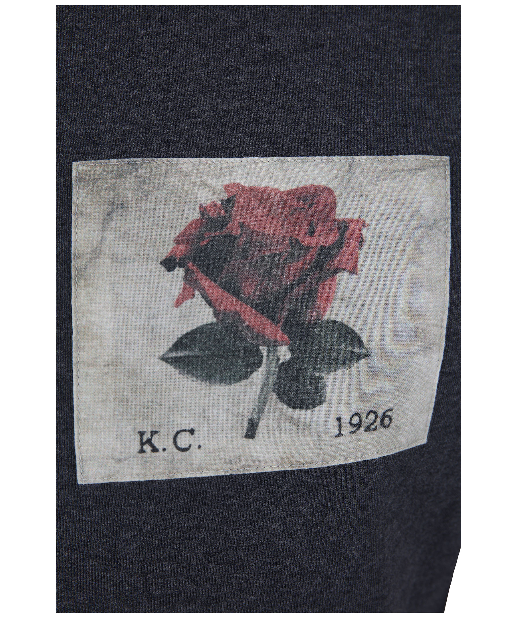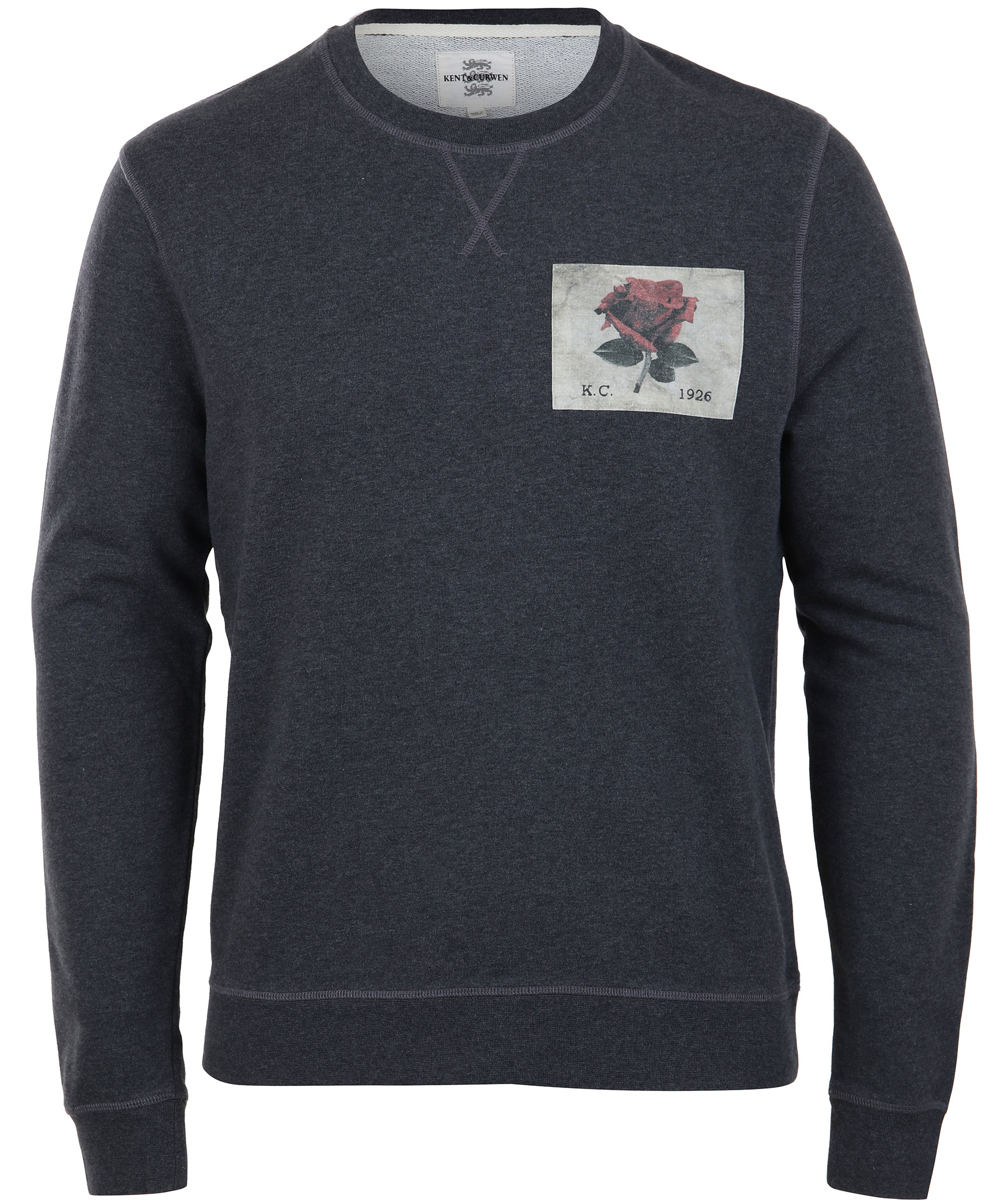Mörkgrå sweatshirt från Kent & Curwen. Patch med broderad ros på vänster bröst och rundad halsringning. Muddar i ärmslut, halsringning och plaggslut. Tillverkad i 100% bomull.