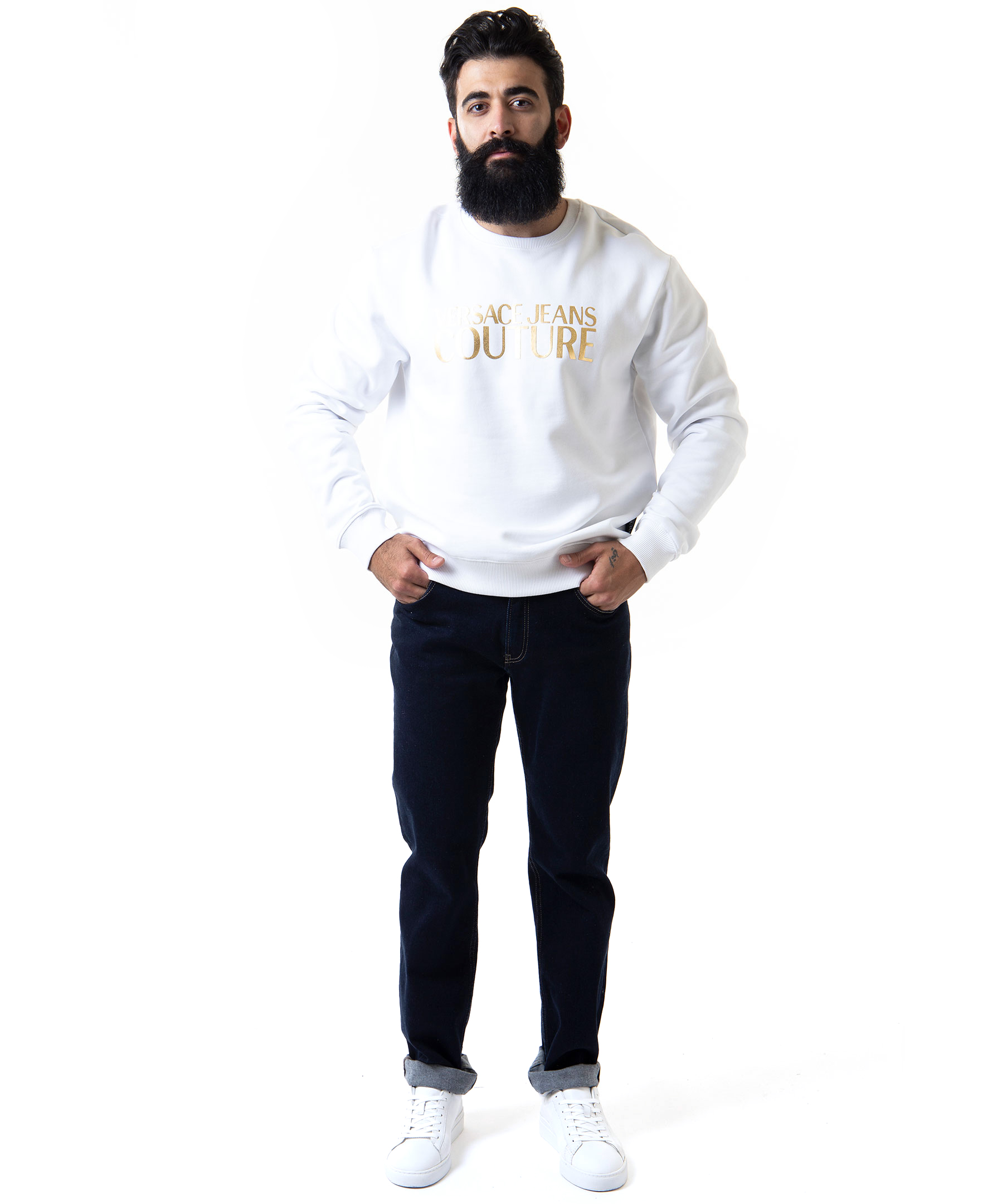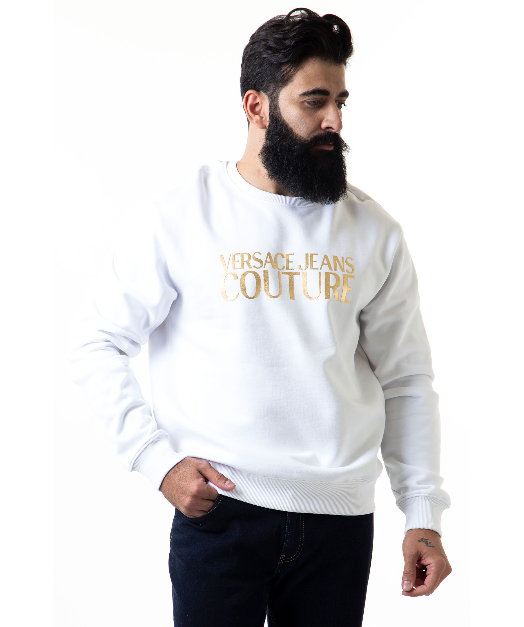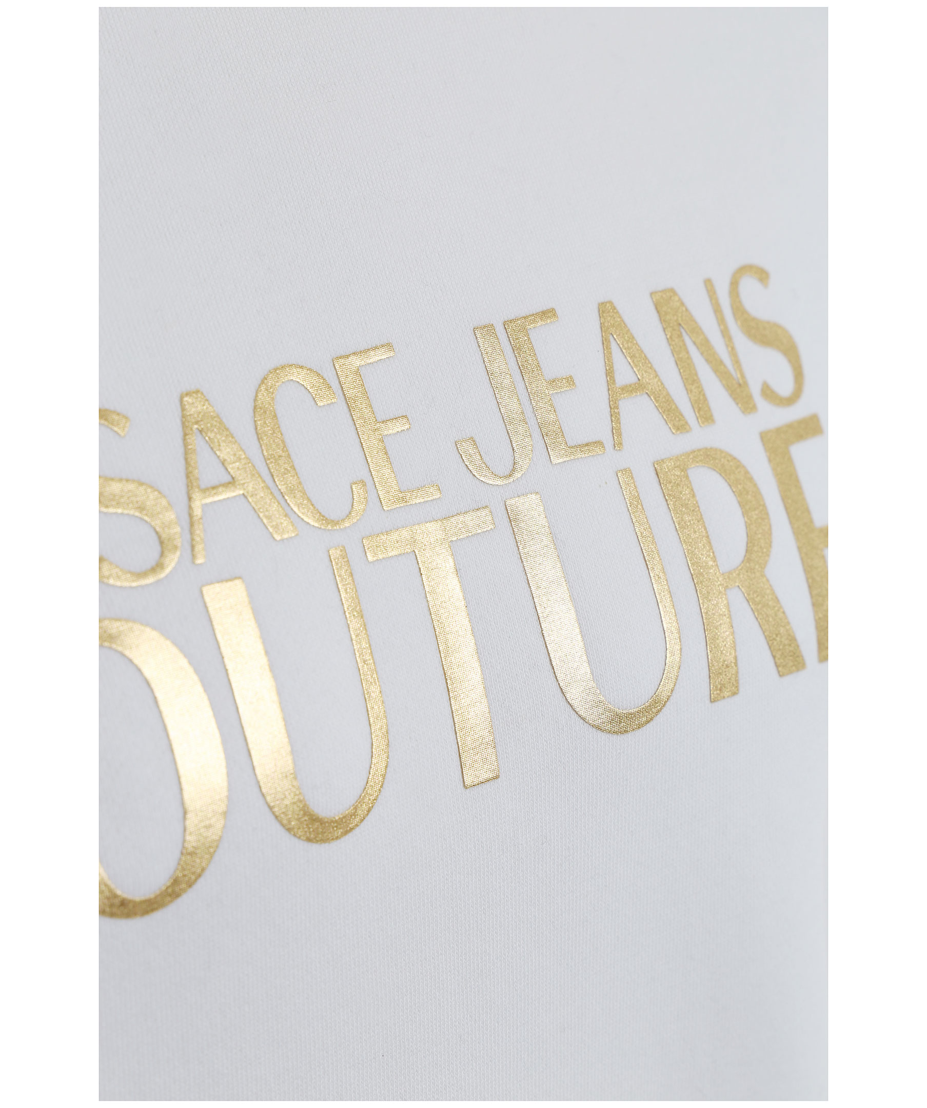Vit sweatshirt från Versace Jeans Couture i bomullsmix. Tröjan har ett guldfärgat tyck med logga på bröstet.