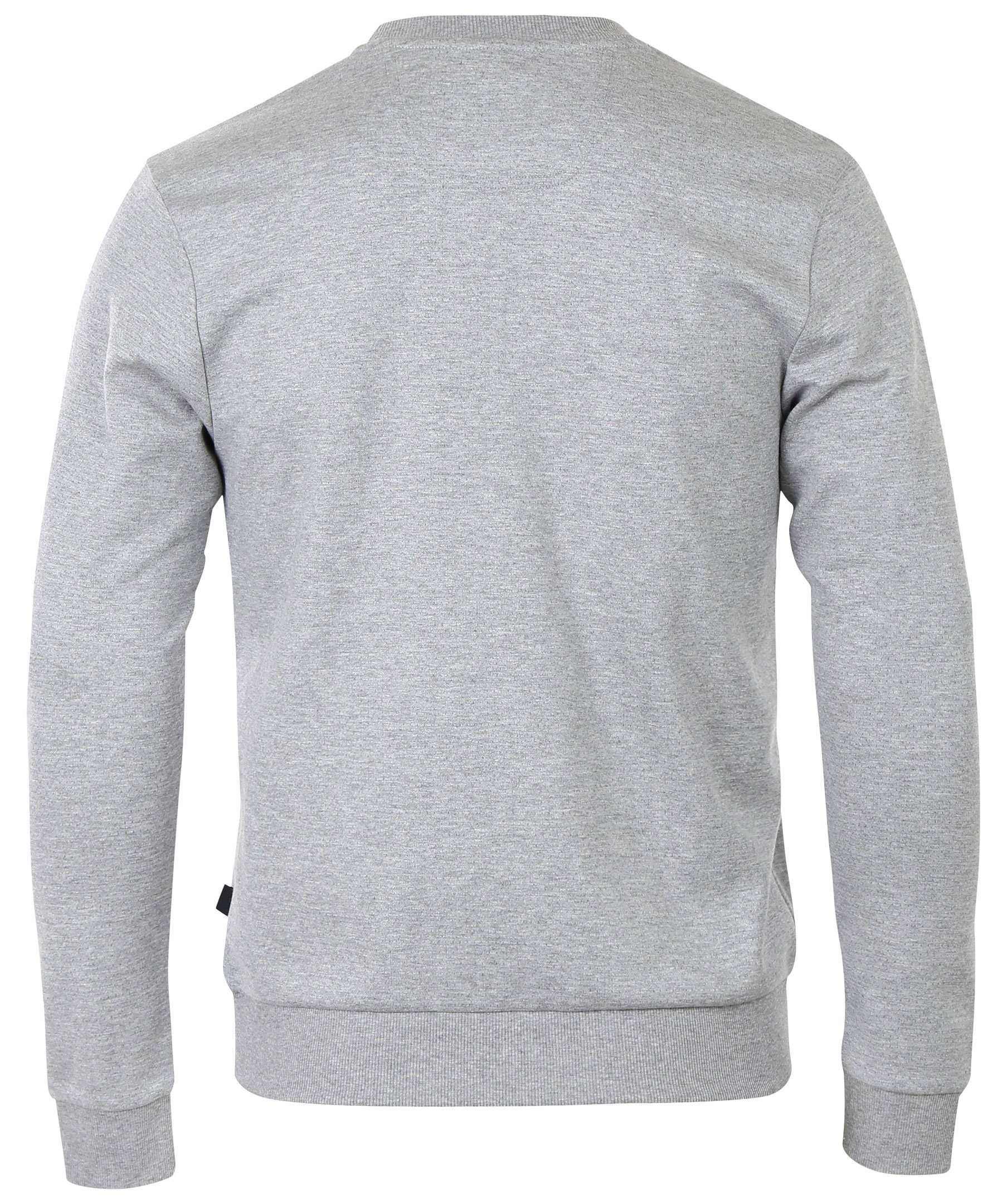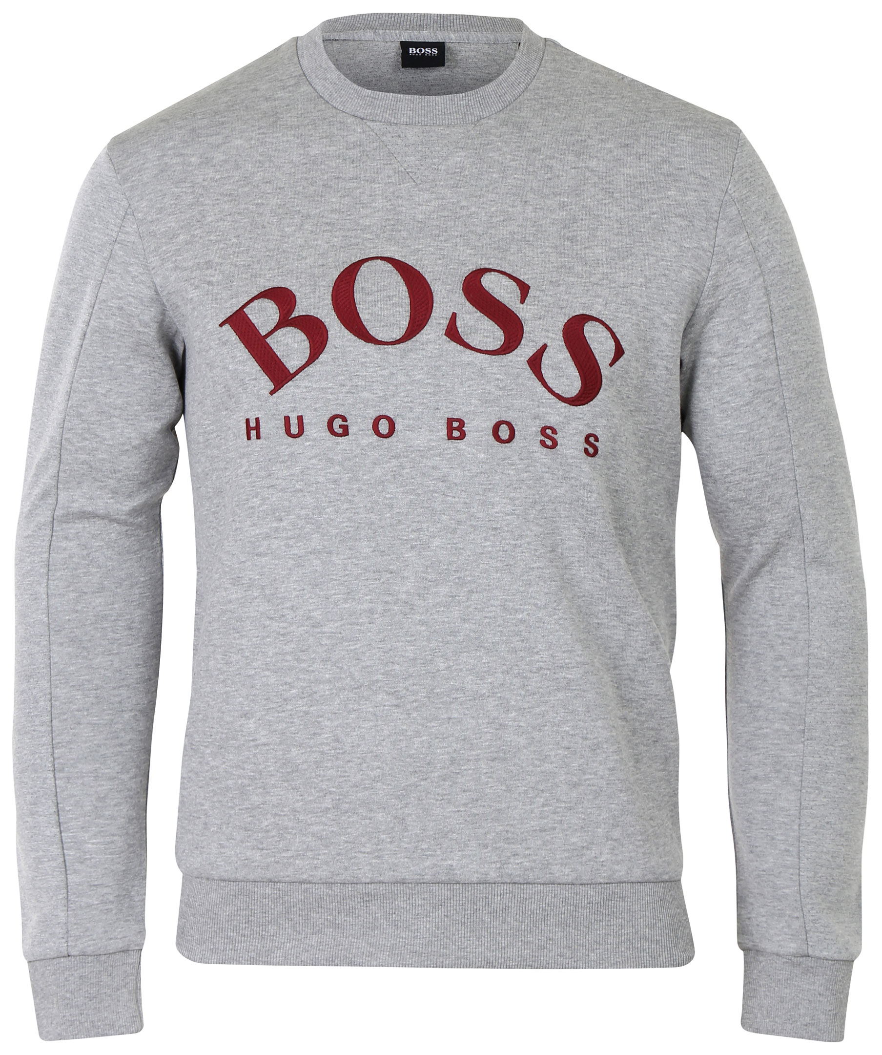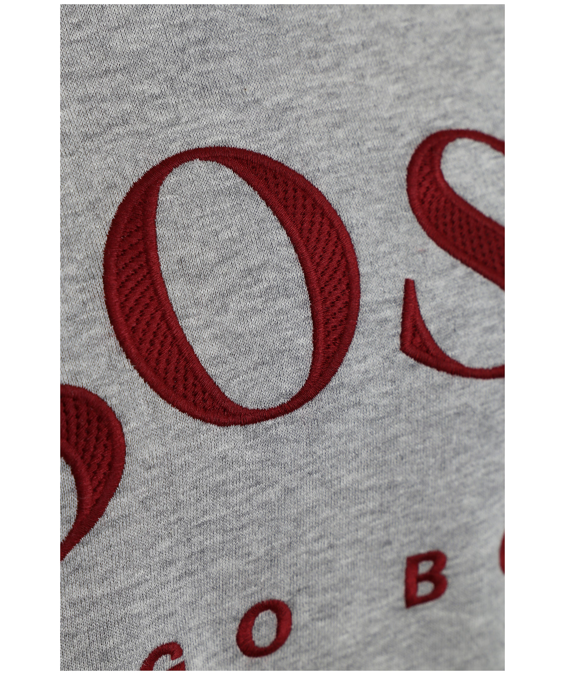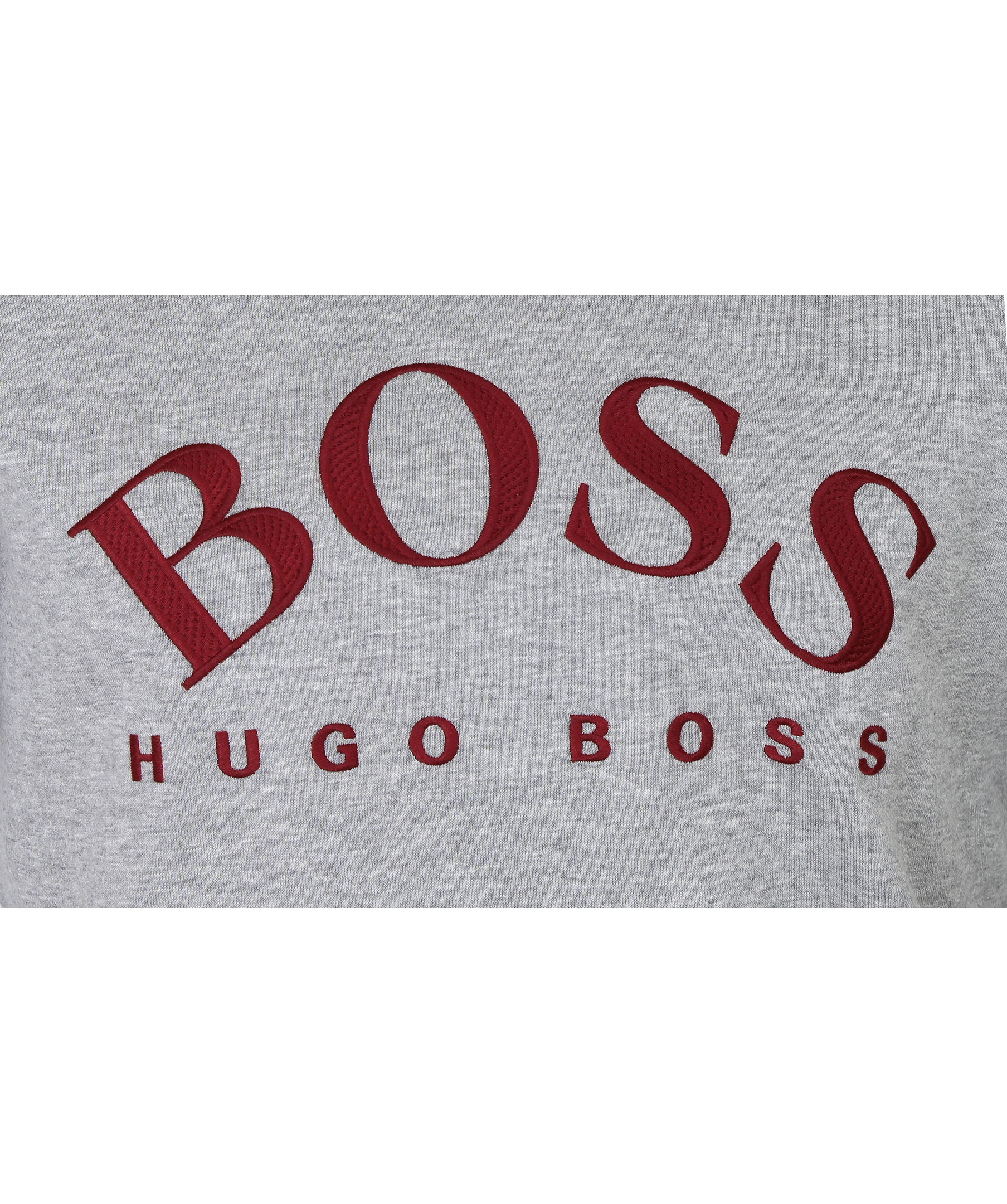 Grå sweatshirt i bomullsblandning från Hugo Boss. Stor brodyr med logotyp över bröstet. Ribbad mudd i rundad halsringning, ärmslut och plaggslut.