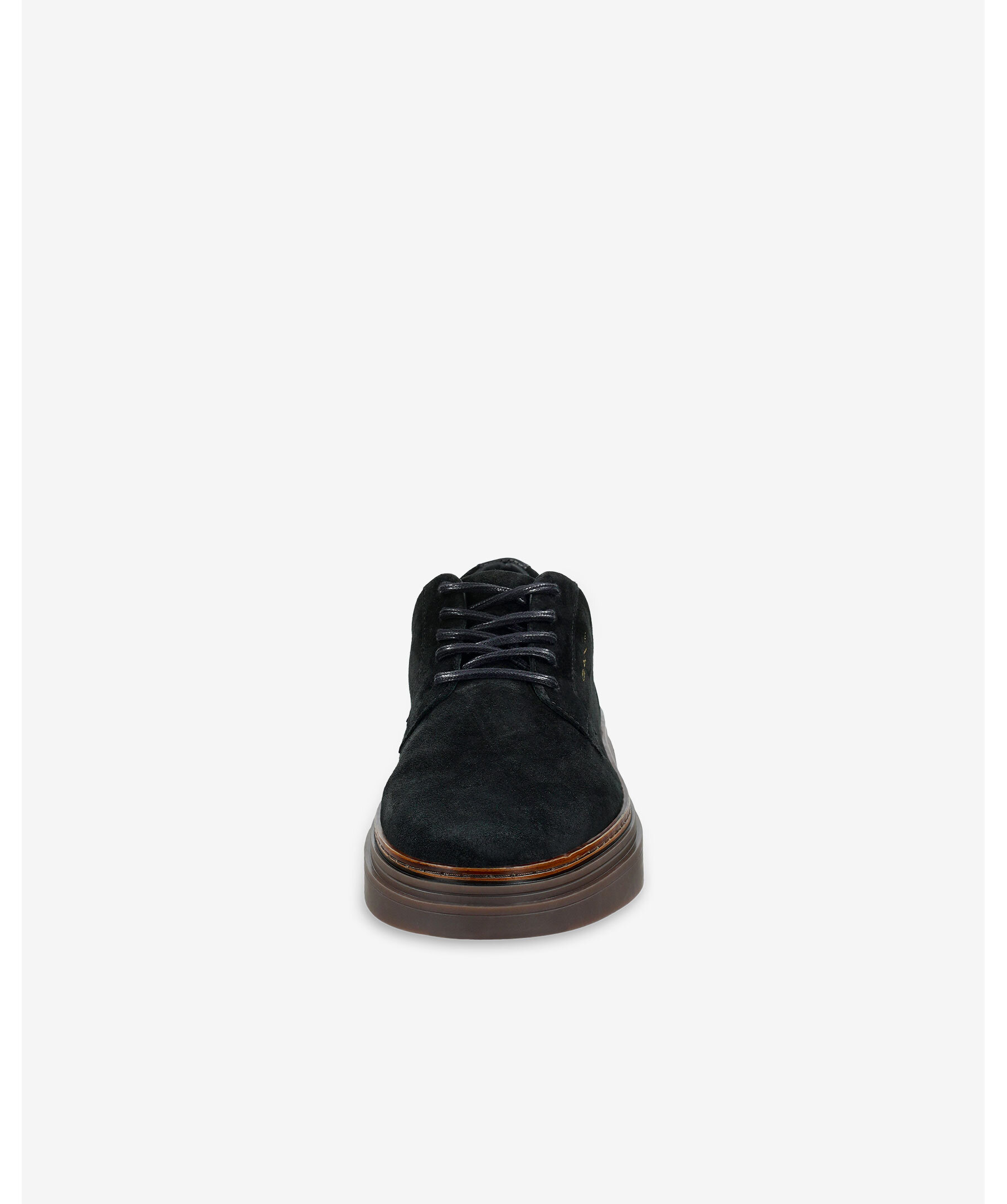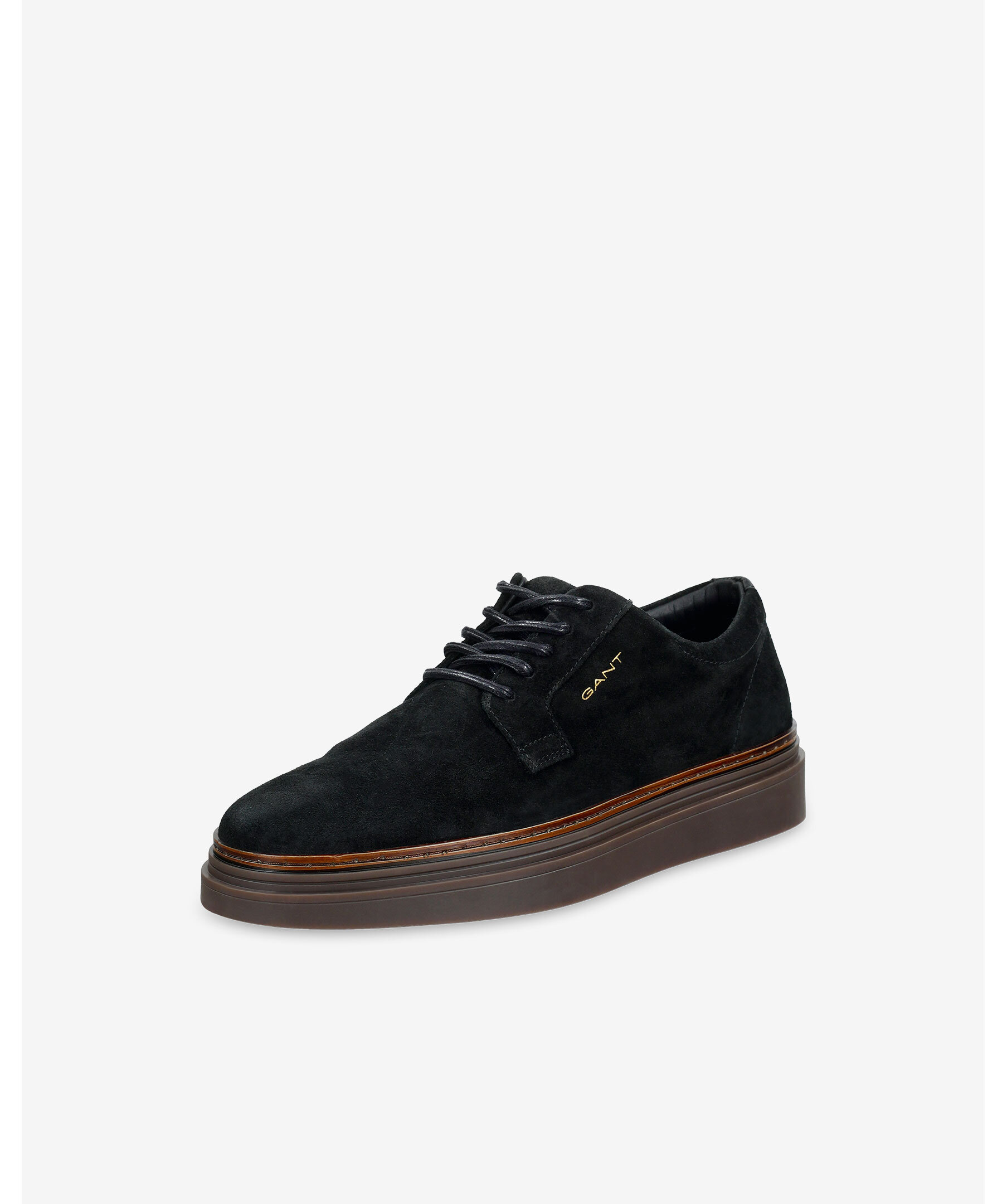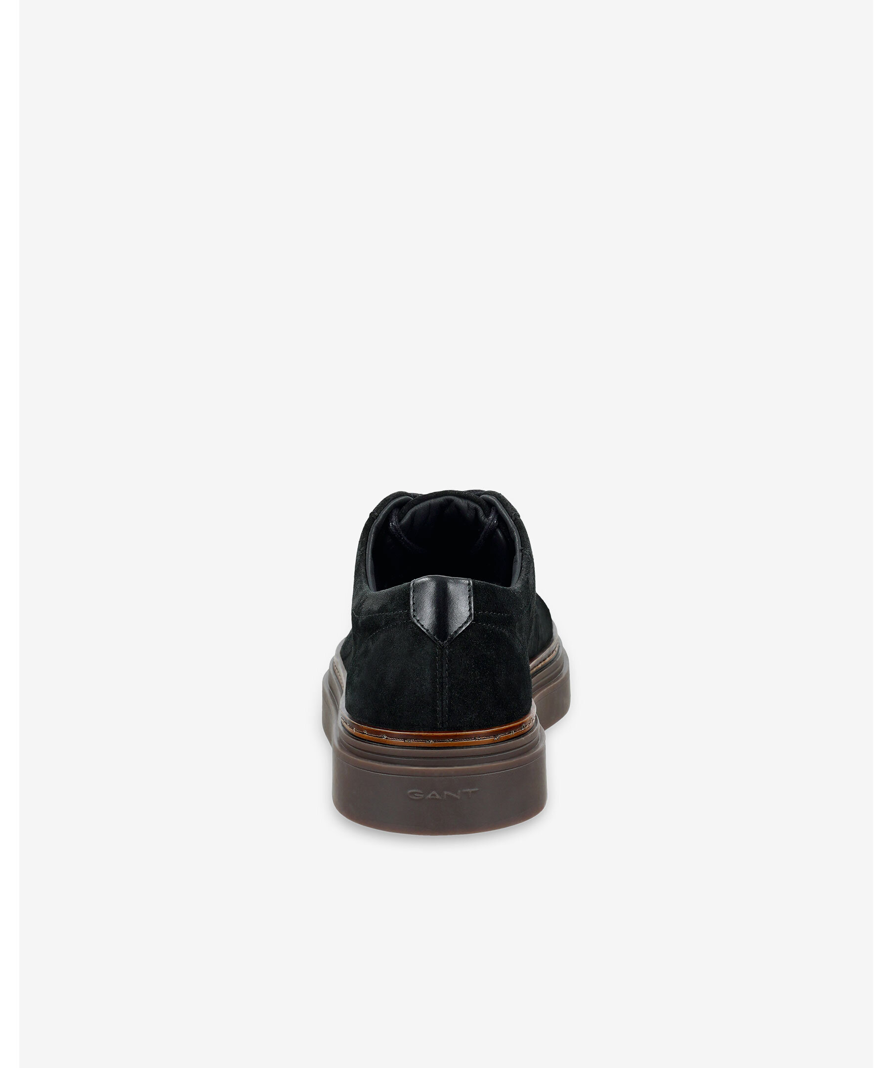 GANT Kinzoon Sneakers i mörkbrunt mockaskinn med rundad tå, fyra hål för snörning och en voluminös gummisula.