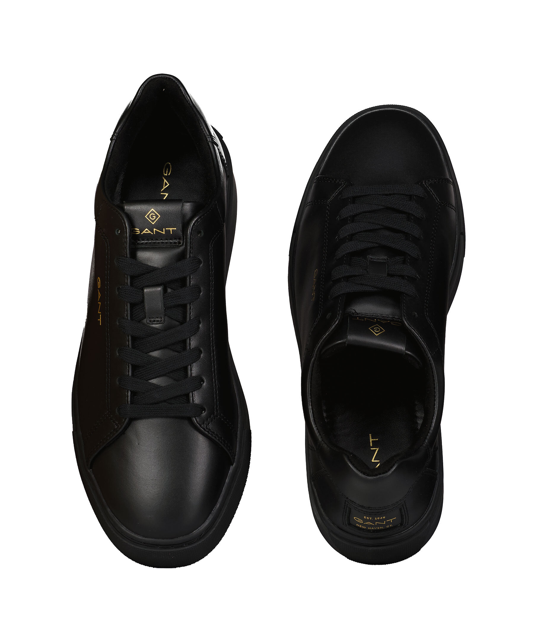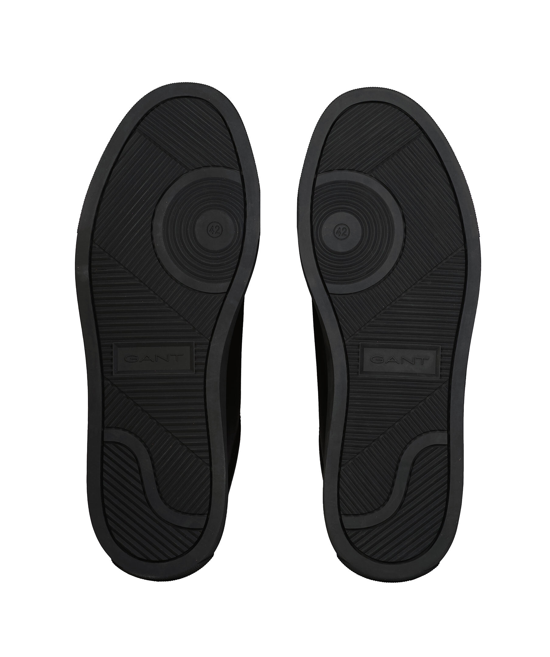 Svarta sneakers tillverkade i läder från Gant. Svart patch på plösen samt hälen med logotyp. Svarta platta skosnören. Logotyp på utsidan av skon.